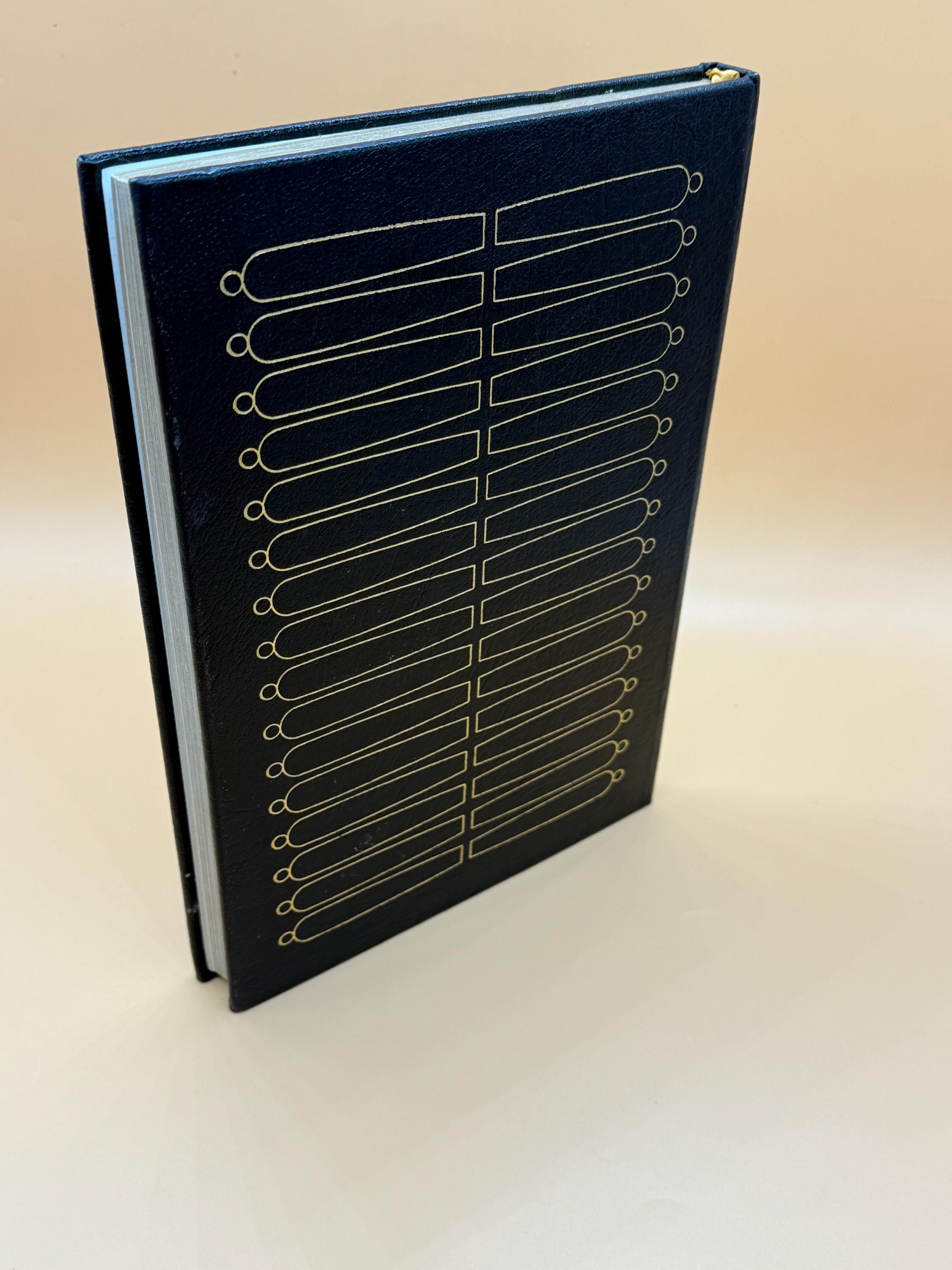 This is a near fine (almost like new) leather-bound hardcover. 1986 Easton Press. This copy is still crisp and clean inside and out. NOTE: previous owners name appears on original accompanying bookplate inside front cover. Otherwise, inside pages are crisp and clean. The binding is tight and straight. Bound in black leather, the hardcover boards feature gold design and lettering front and gold design back. The leather-bound hardcover boards are also near fine with barely a hint of shelf wear. All 3 pages edges tipped in gold gilt. Attached gold satin bookmark. Super octavo book size or 7" x 11" with 114 pages including index.