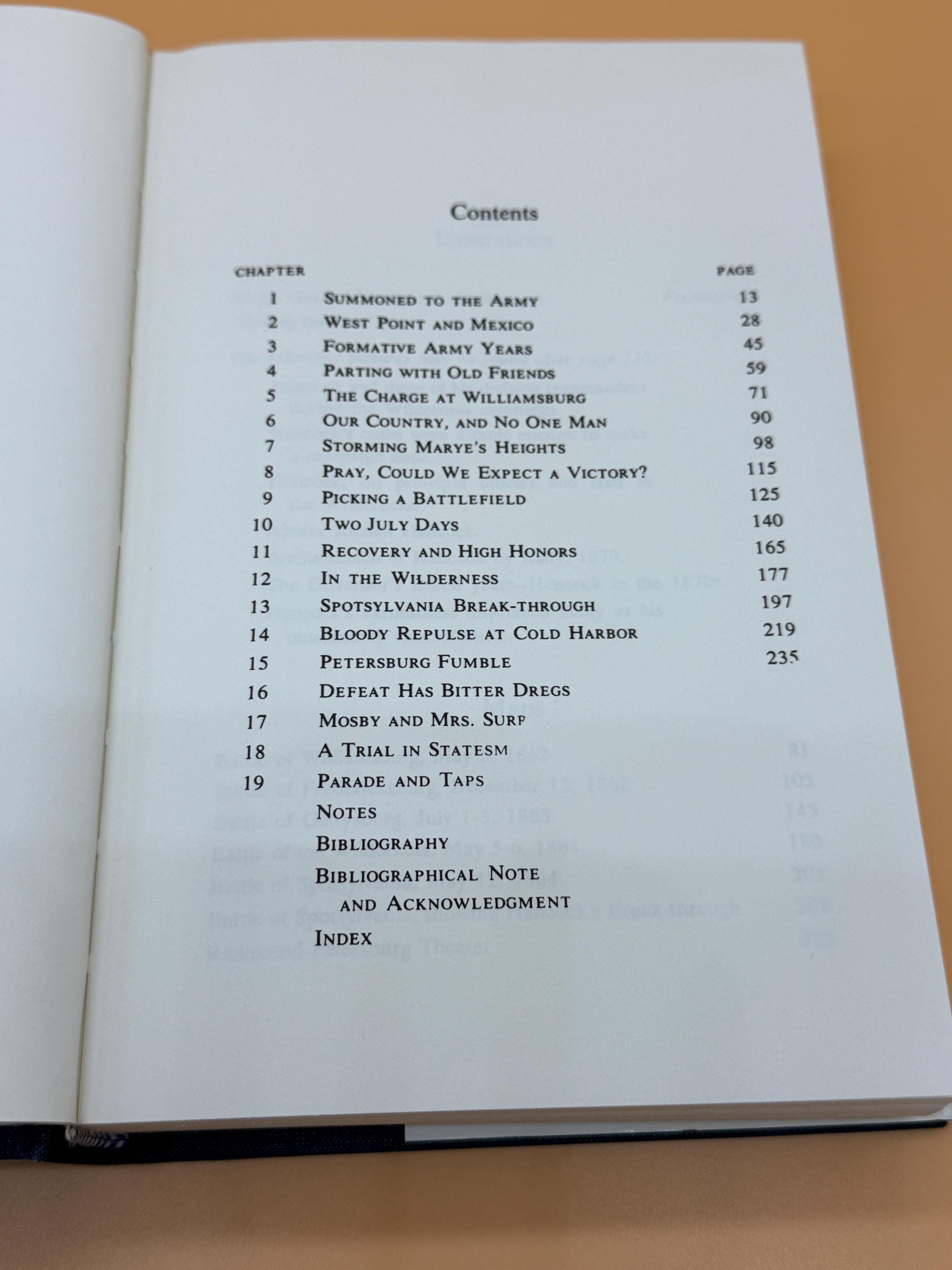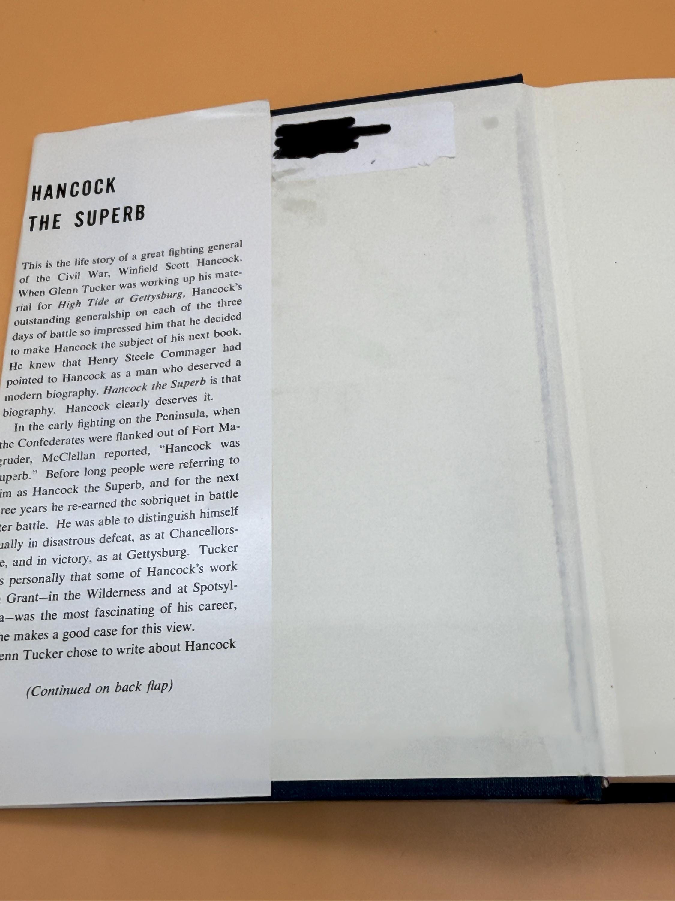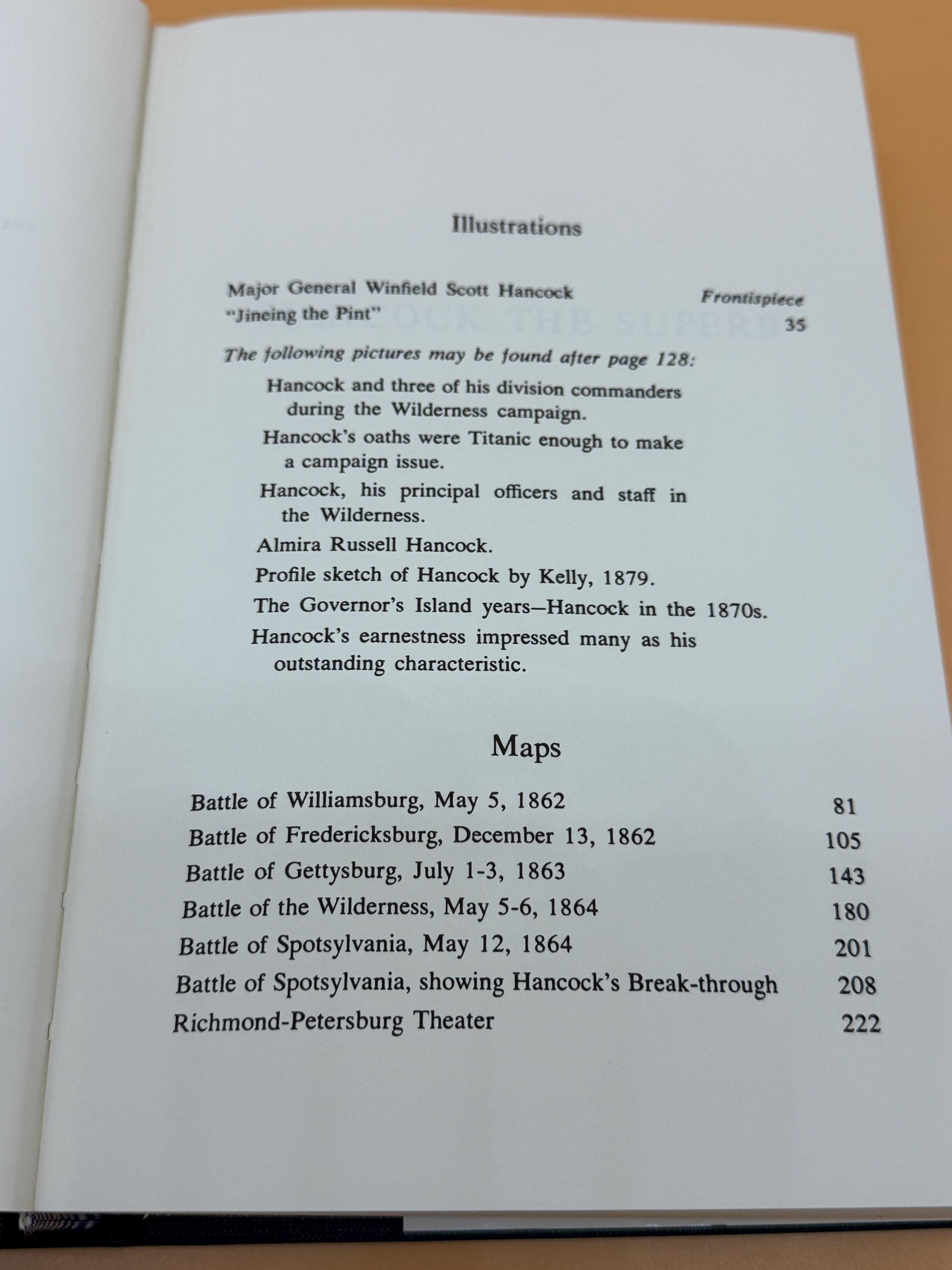 Hancock The Superb by Glenn Tucker was originally published by Bobbs Merrill in 1960. It is the life story of Civil War General Winfield Scott Hancock. In the early fighting on the Peninsula, McClellan reported "Hancock was superb". Before long, people began referring to him as that and he earned it over the next 3 years. The book was well researched and detailed. It highlights some of Hancock's work with Grant at Spotsylvania and in The Wilderness which the author feels is some of the most fascinating of Hancock's career and makes a good case for his "superb" ranking. Maps, vintage photos and illustrations highlight the text.