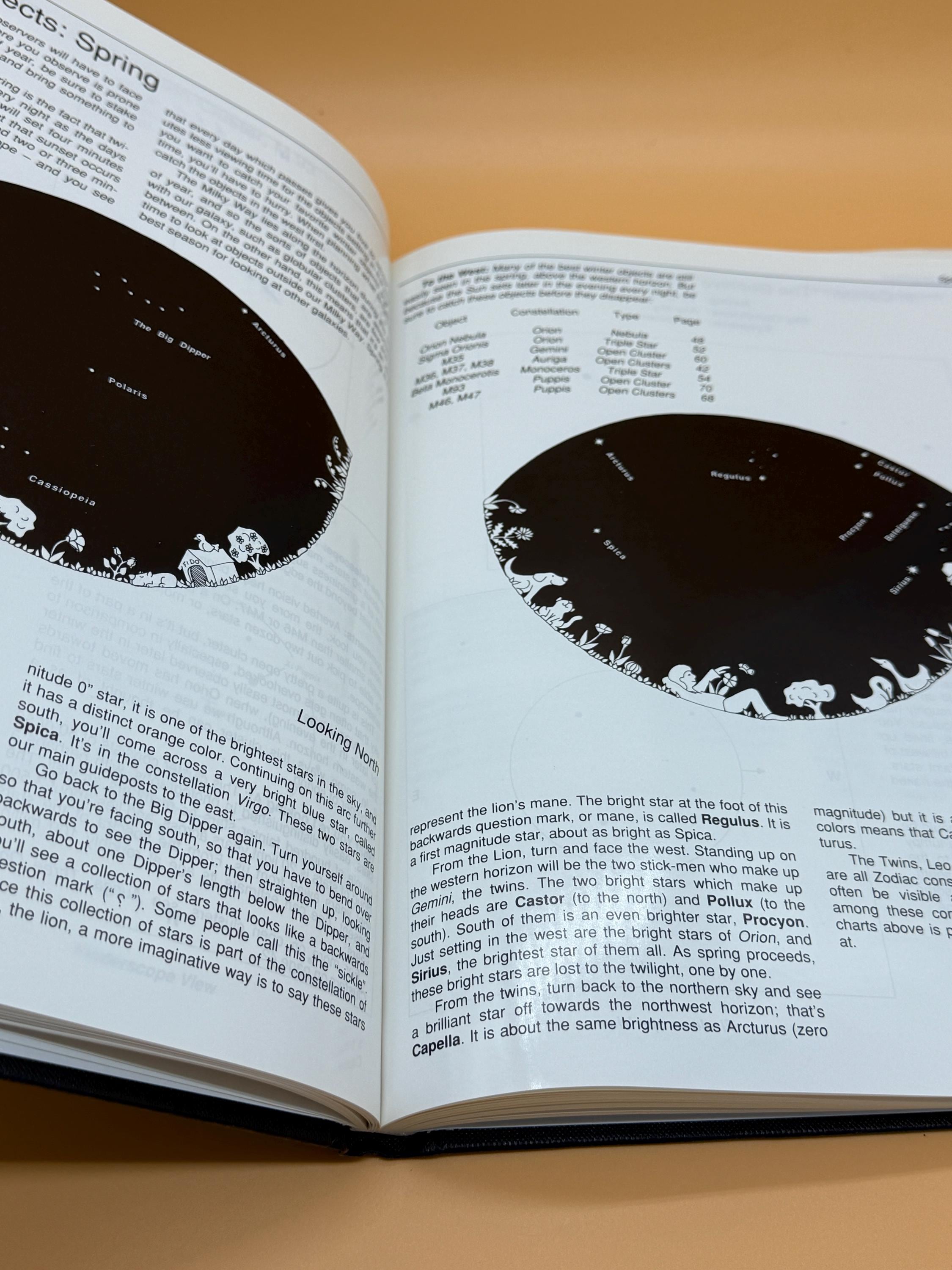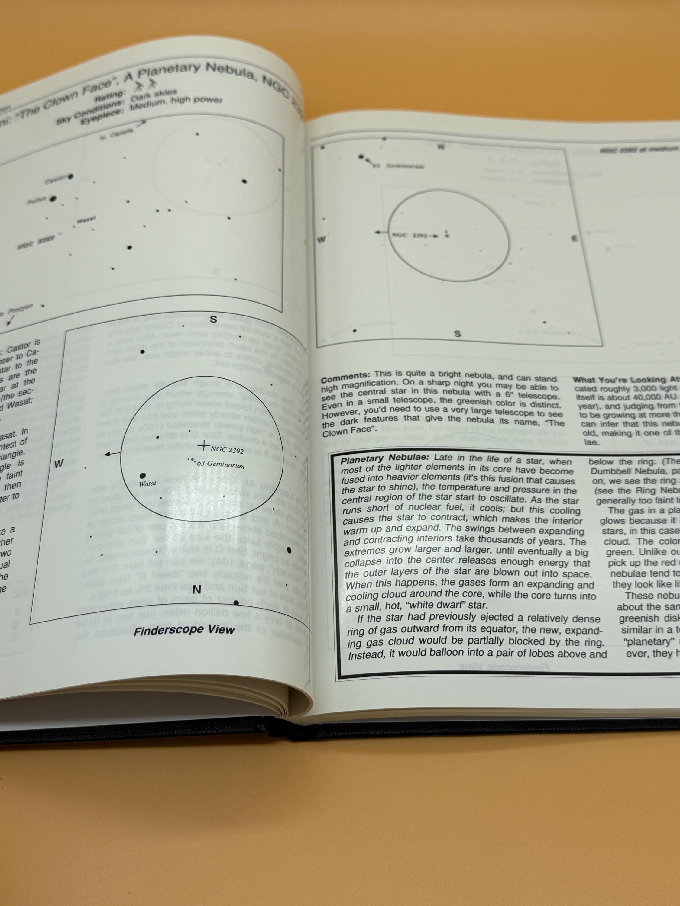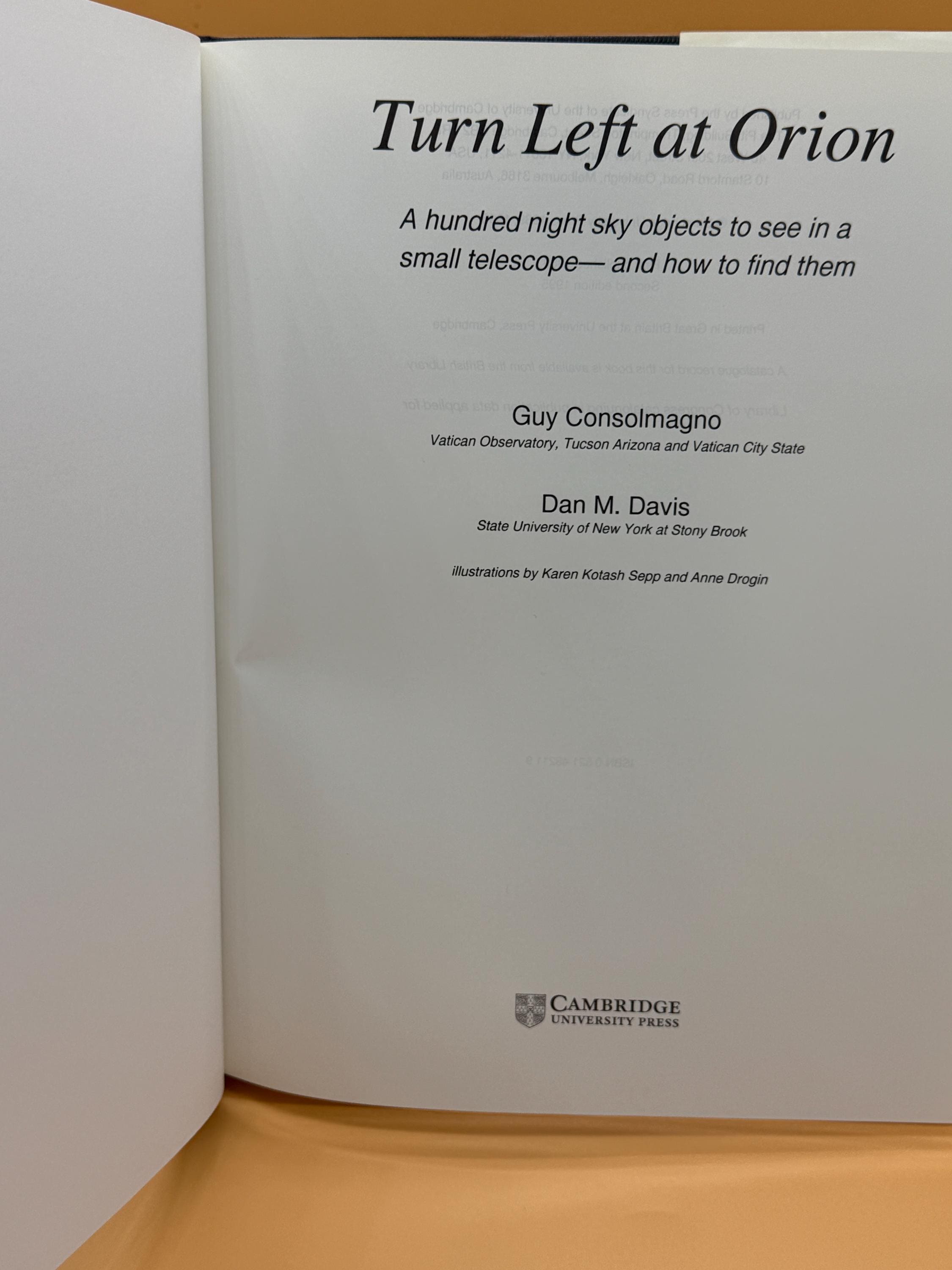 Turn Left at Orion is subtitled A Hundred Night Sky Objects To See in A Small Telescope And How to Find Them. It is a guidebook for amateur astronomers. The Moon, planets, and nearly 100 deep sky objects, visible in the northern hemisphere are shown as they appear in a small telescope. The book gives information on how to find all these objects. There are maps to get location, and large format drawings depict what you can expect to see. The second edition is revised taking the tables of data to the year 2006.