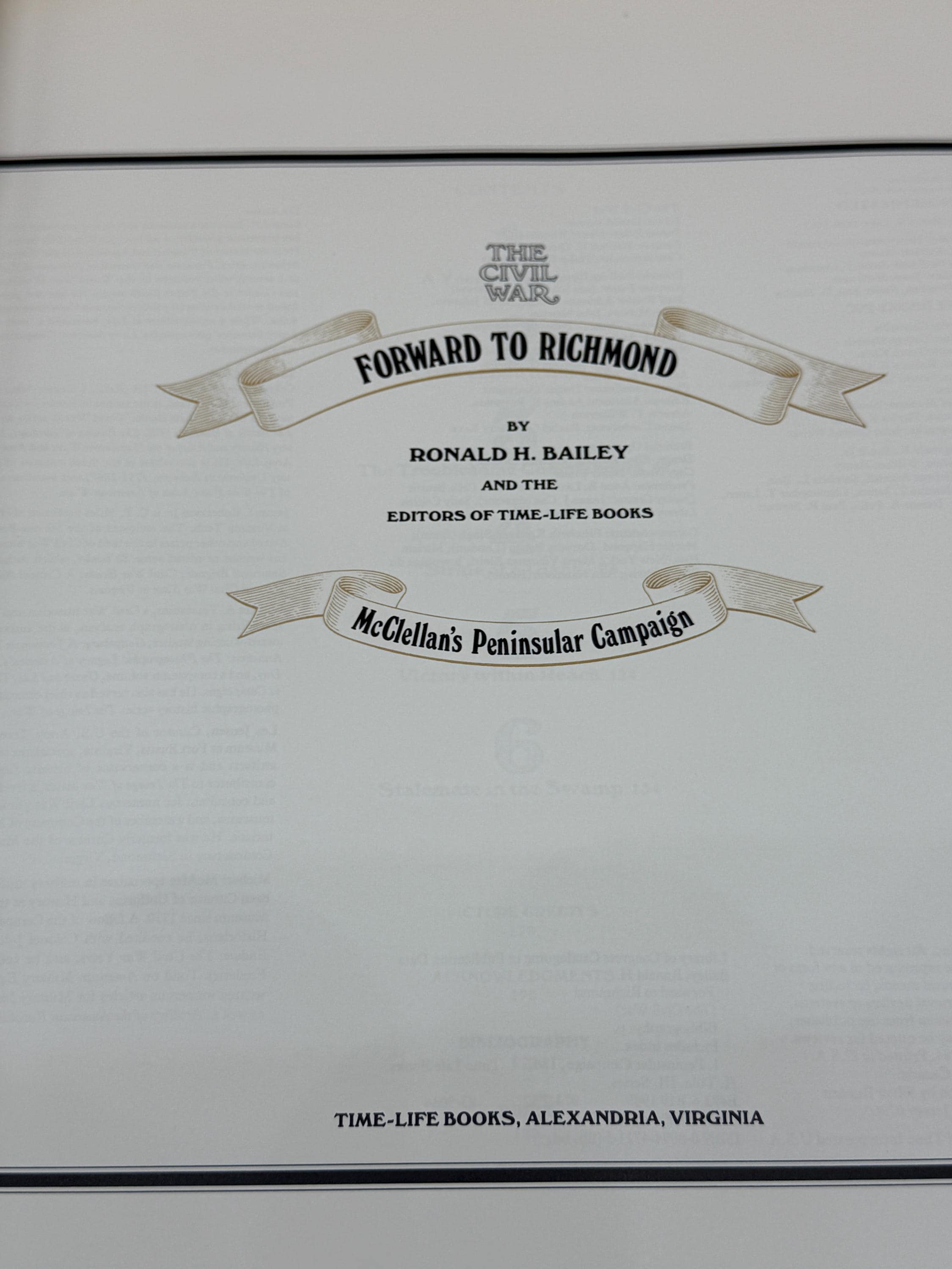 This copy is Forward To Richmond McClelland's Peninsular Campaign. Chapters include; A Young Napoleon, Clash at Ball's Bluff, The Troublesome Commanders, Stride of a Giant, Victory Within Reach, and Stalemate in the Swamp.