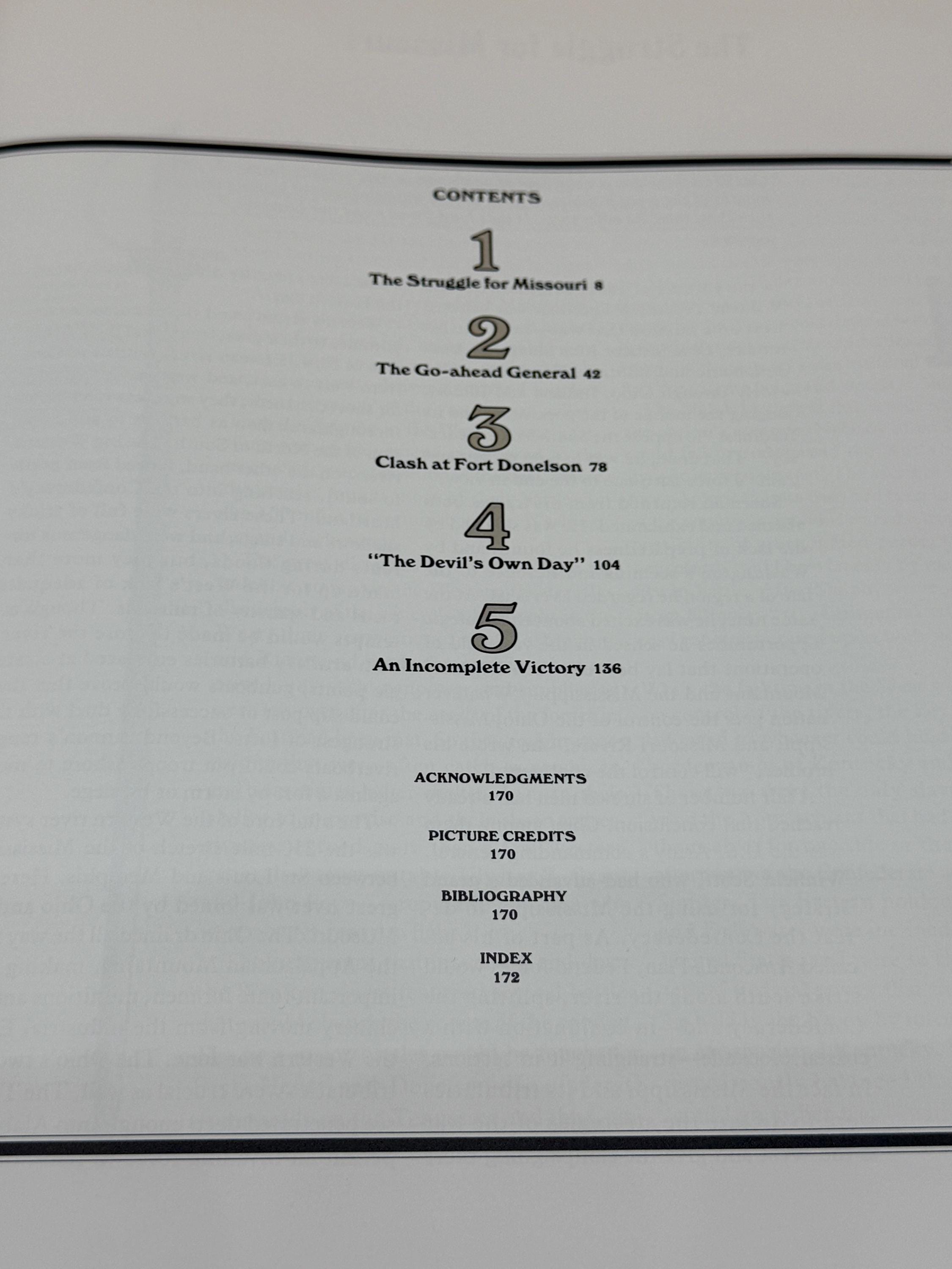 This is The Road to Shiloh Early Battles in The West. Chapters include; The Struggle for Missouri, The Go-Ahead General, Clash at Fort Donelson, The Devil's Own Day, and An Incomplete Victory.