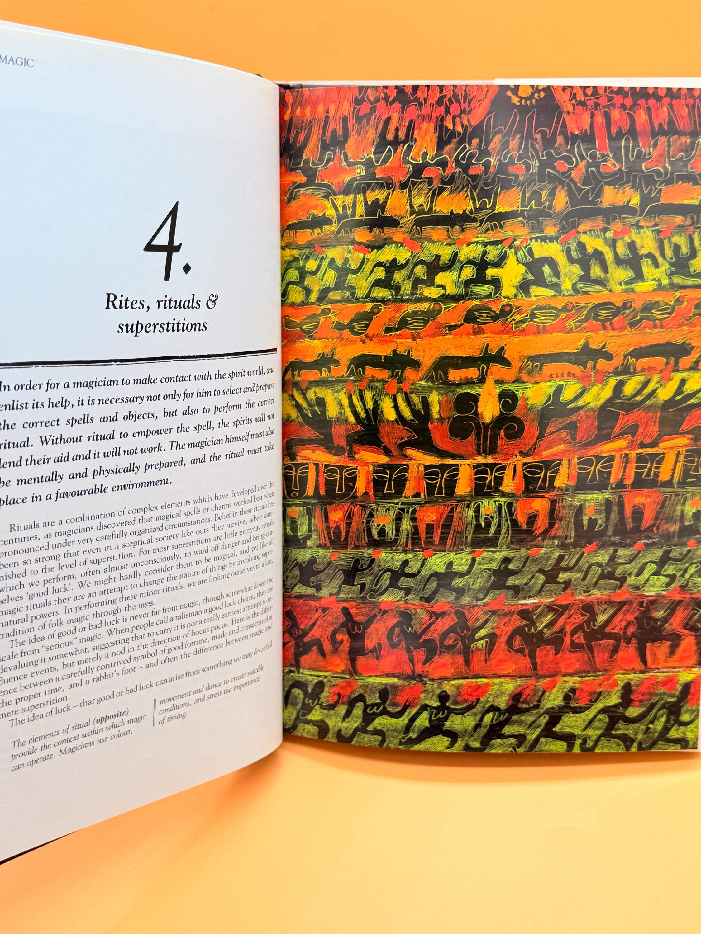 The Power of Magic by Derek and Julia Parker is subtitled Ancient Secrets and Modern Mysteries. The book is for understanding the practices of magicians from Stone Age Shamans to contemporary witches and warlocks, along with rituals, spells, aphrodisiacs, healing and more. The book is lavishly illustrated with color drawings and paintings.