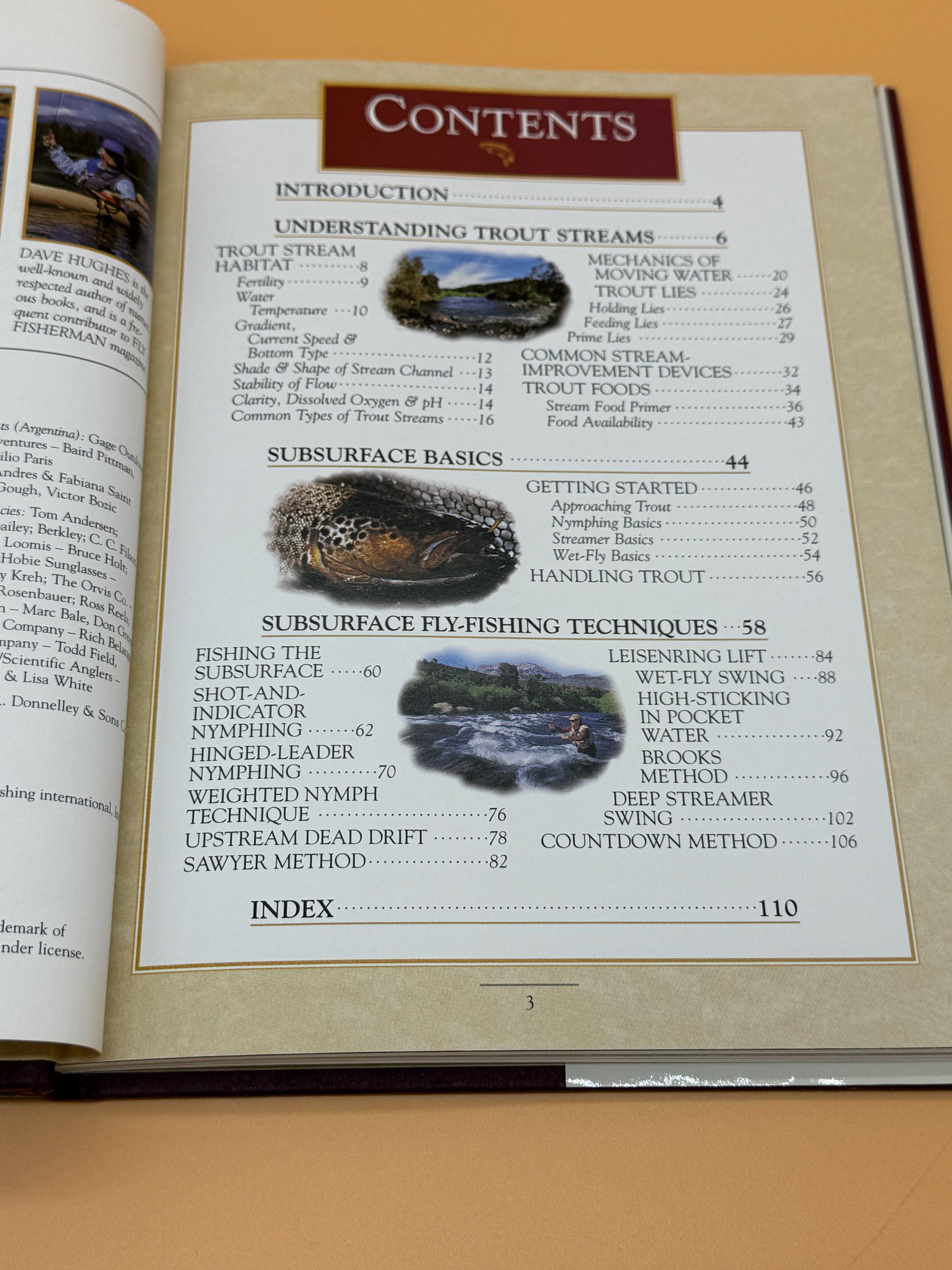 Fishing Nymphs, Wet Flies and Streamers is subtitled Subsurface Techniques for Trout in Streams. The book teaches time-tested and effective techniques for catching trout below the surface. Included is how to recognize good trout areas, what trout eat below the surface, and how to approach and present the fly to the fish