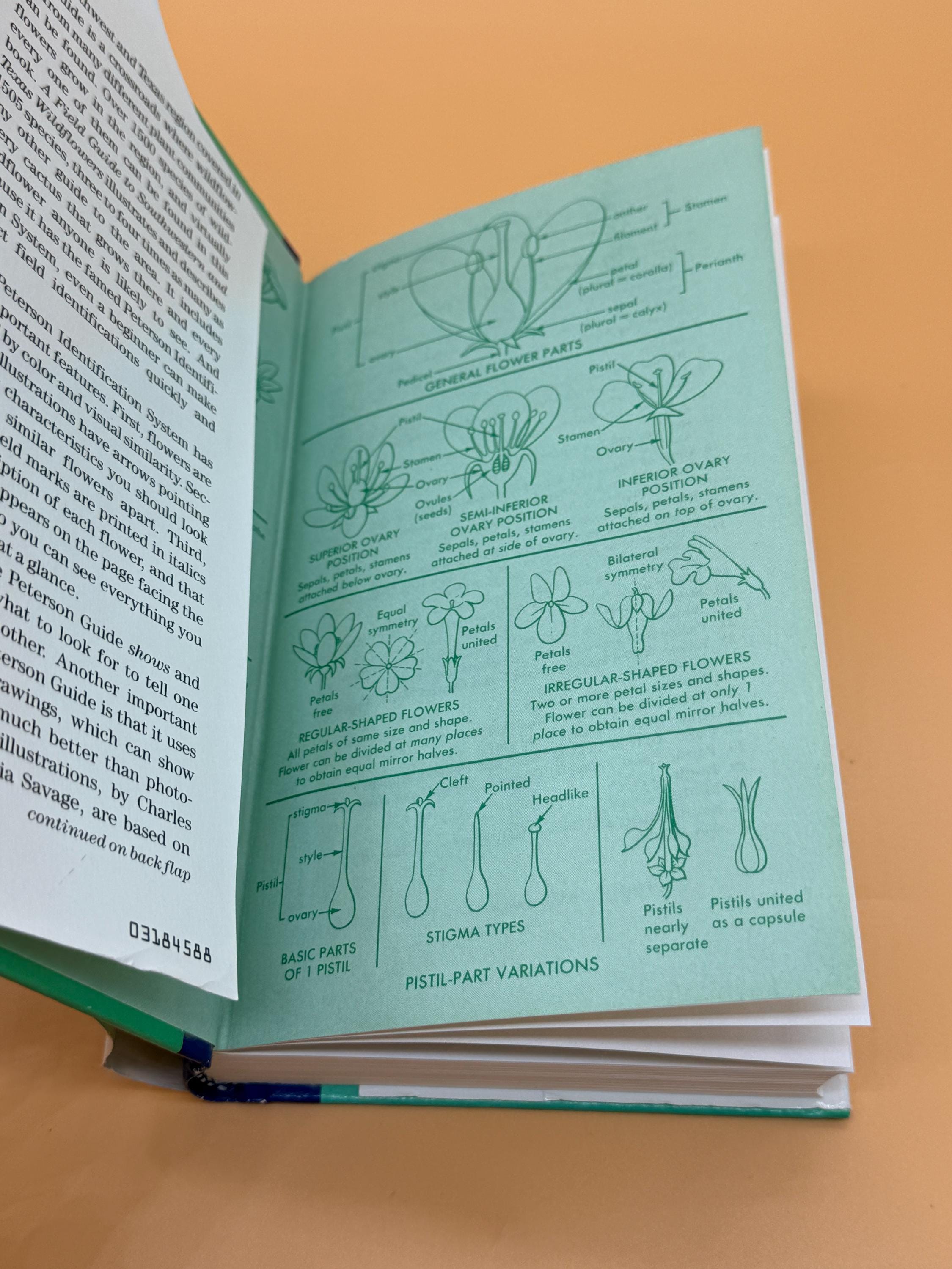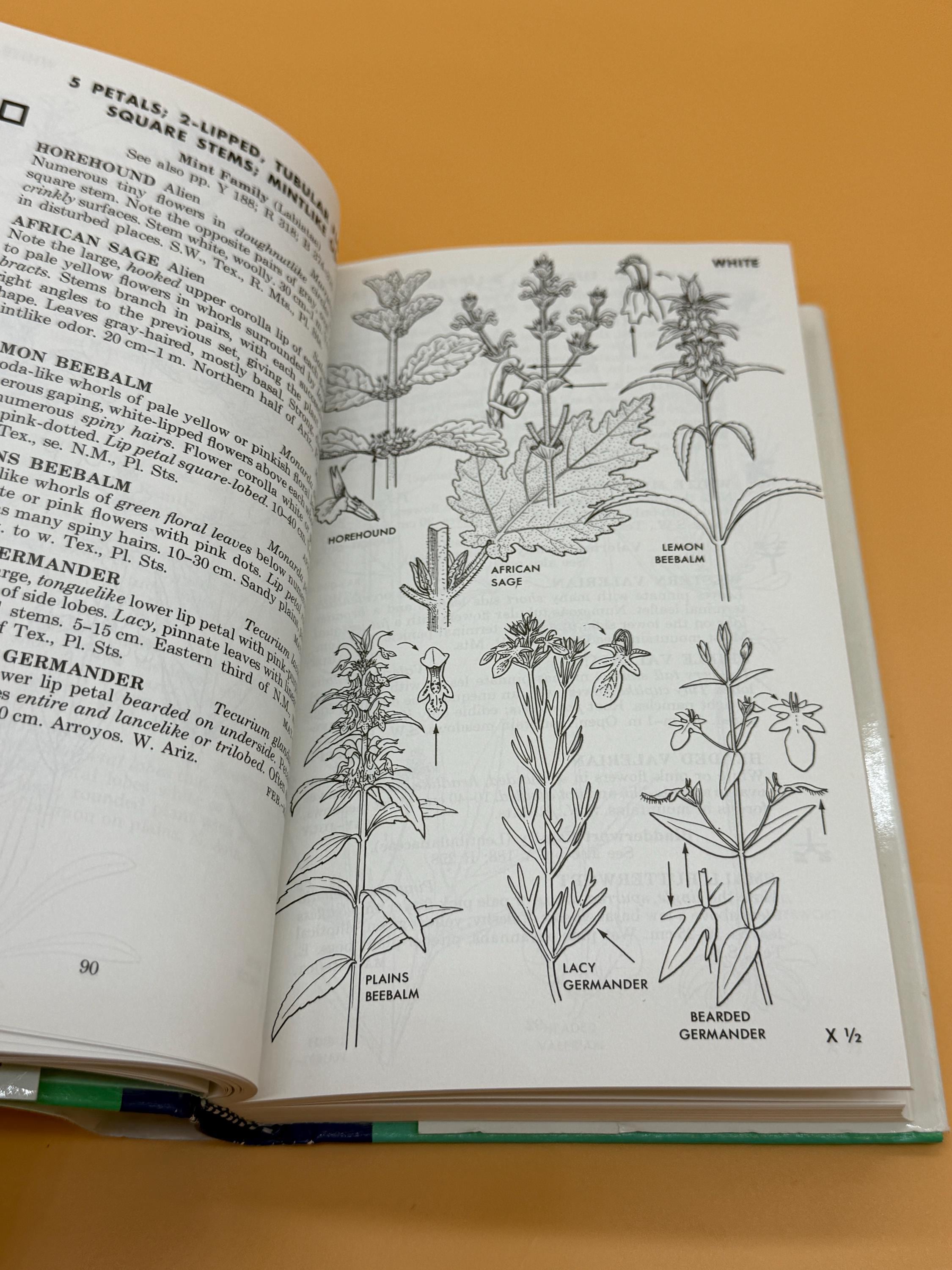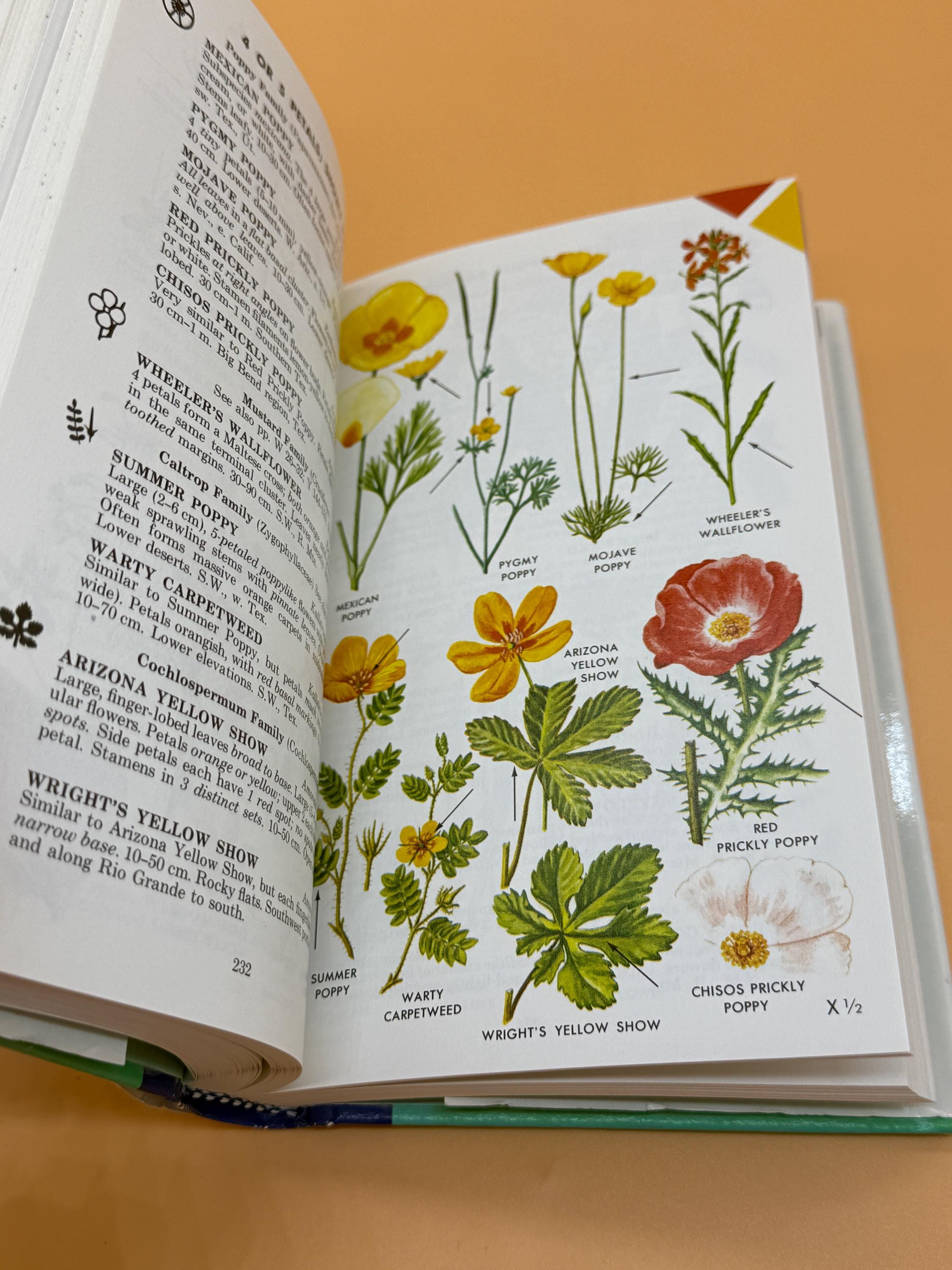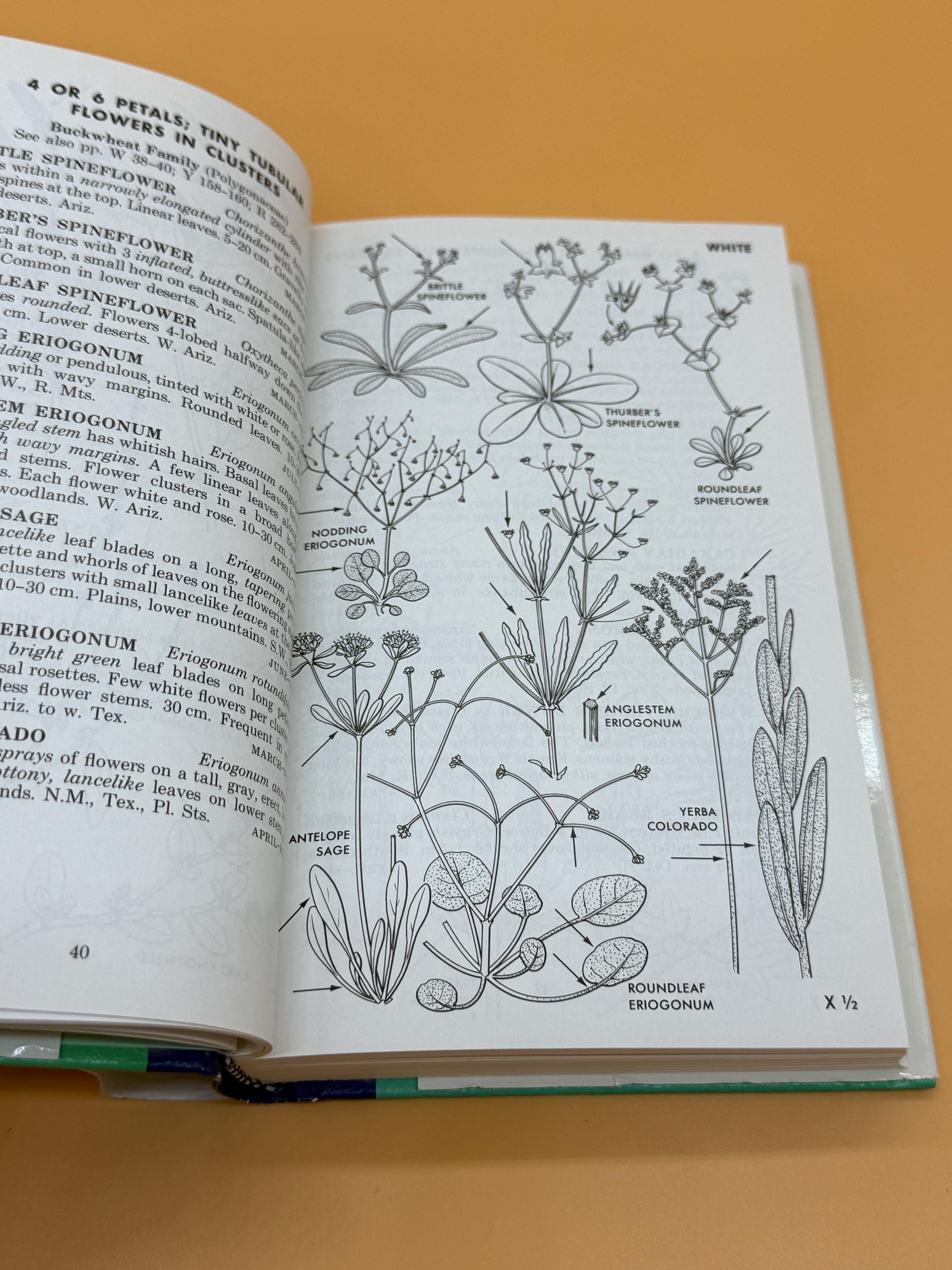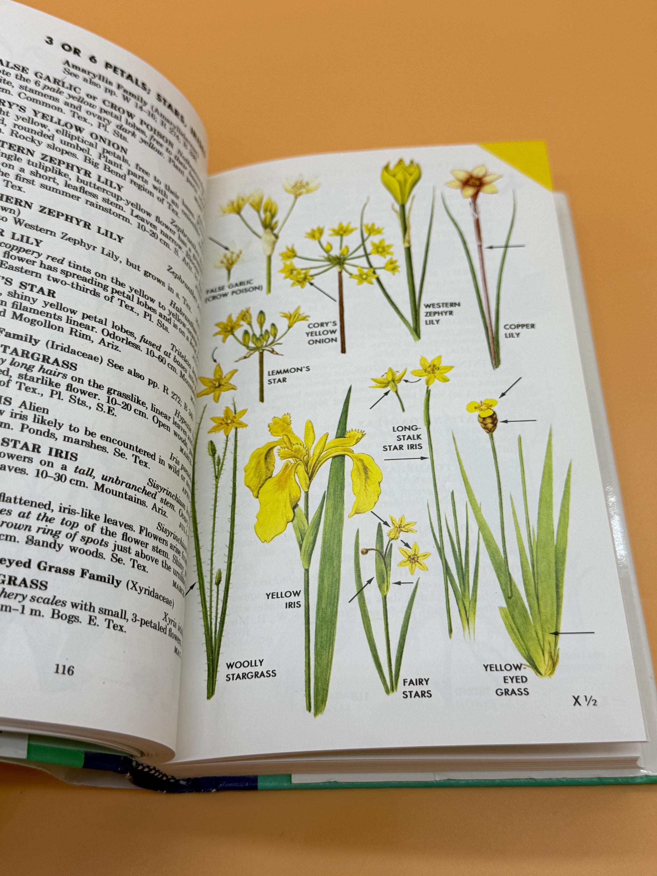 This Peterson Field Guide is Southwestern and Texas Wildflowers. As with all Peterson Field Guides, this is well detailed and illustrated throughout. Flowers are arranged by color and visual similarity. Illustrations have arrows pointing to key characteristic to look for to distinguish between flowers. There are descriptions of each flower on the page facing the illustrations for easy reference.
