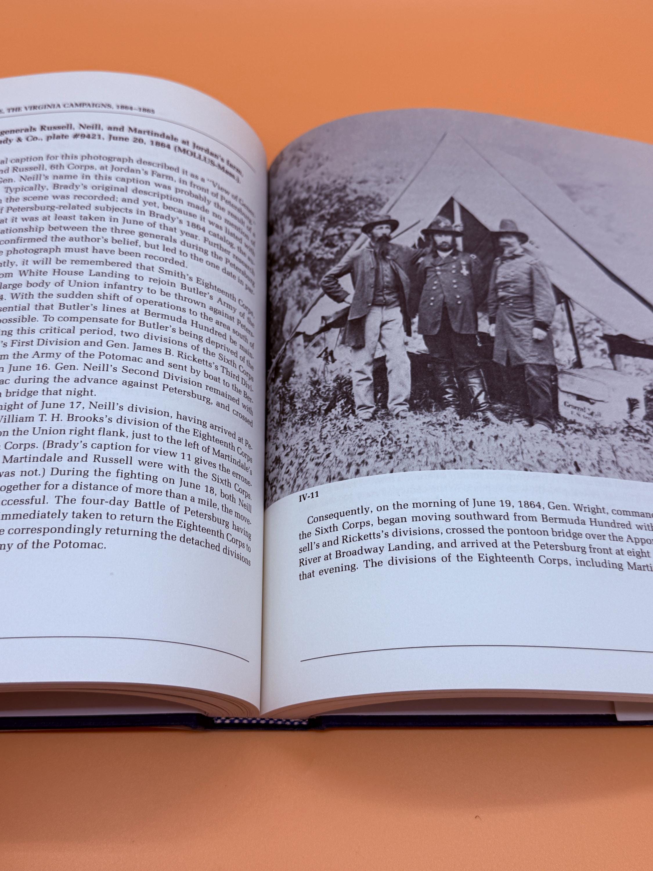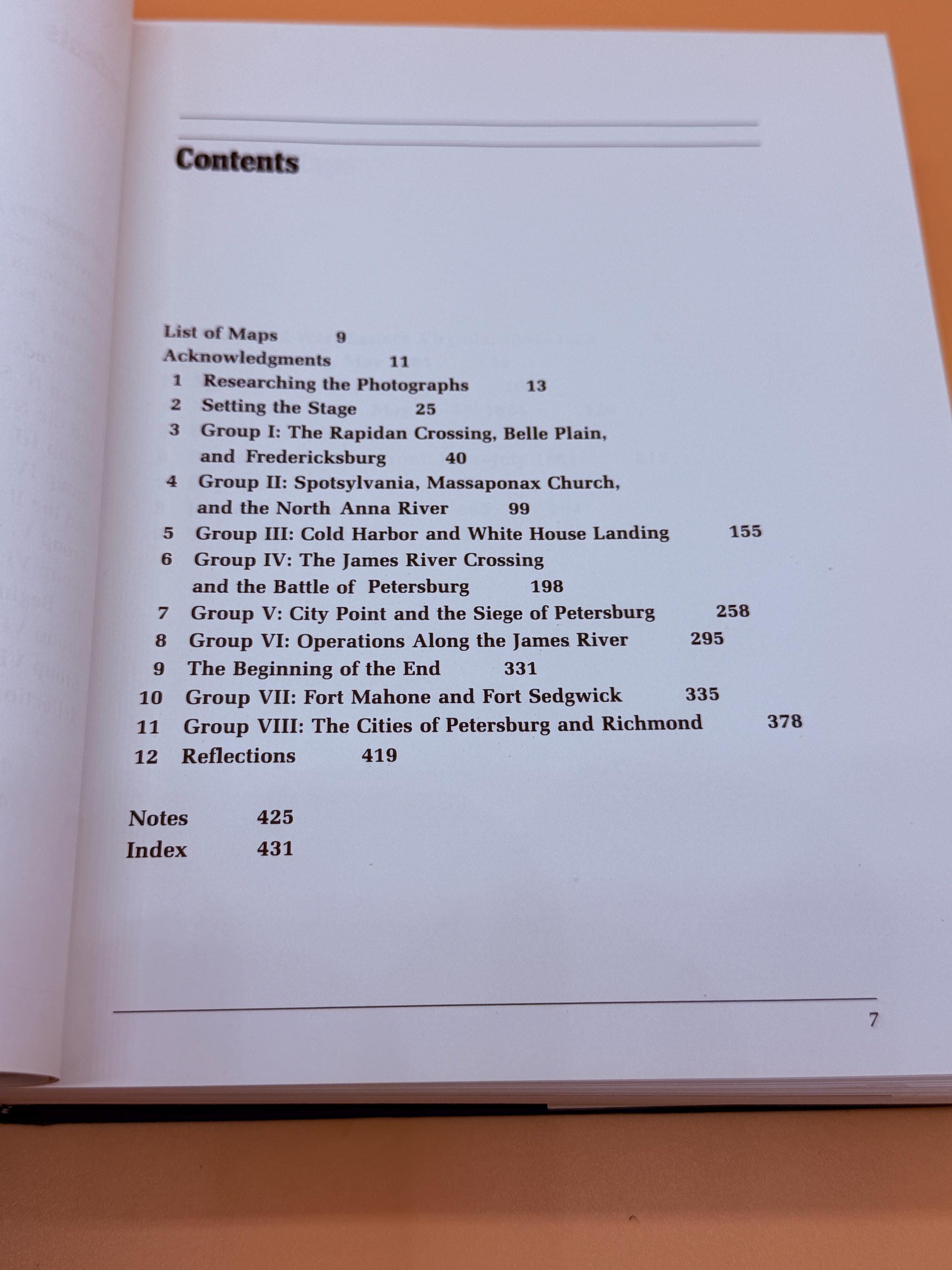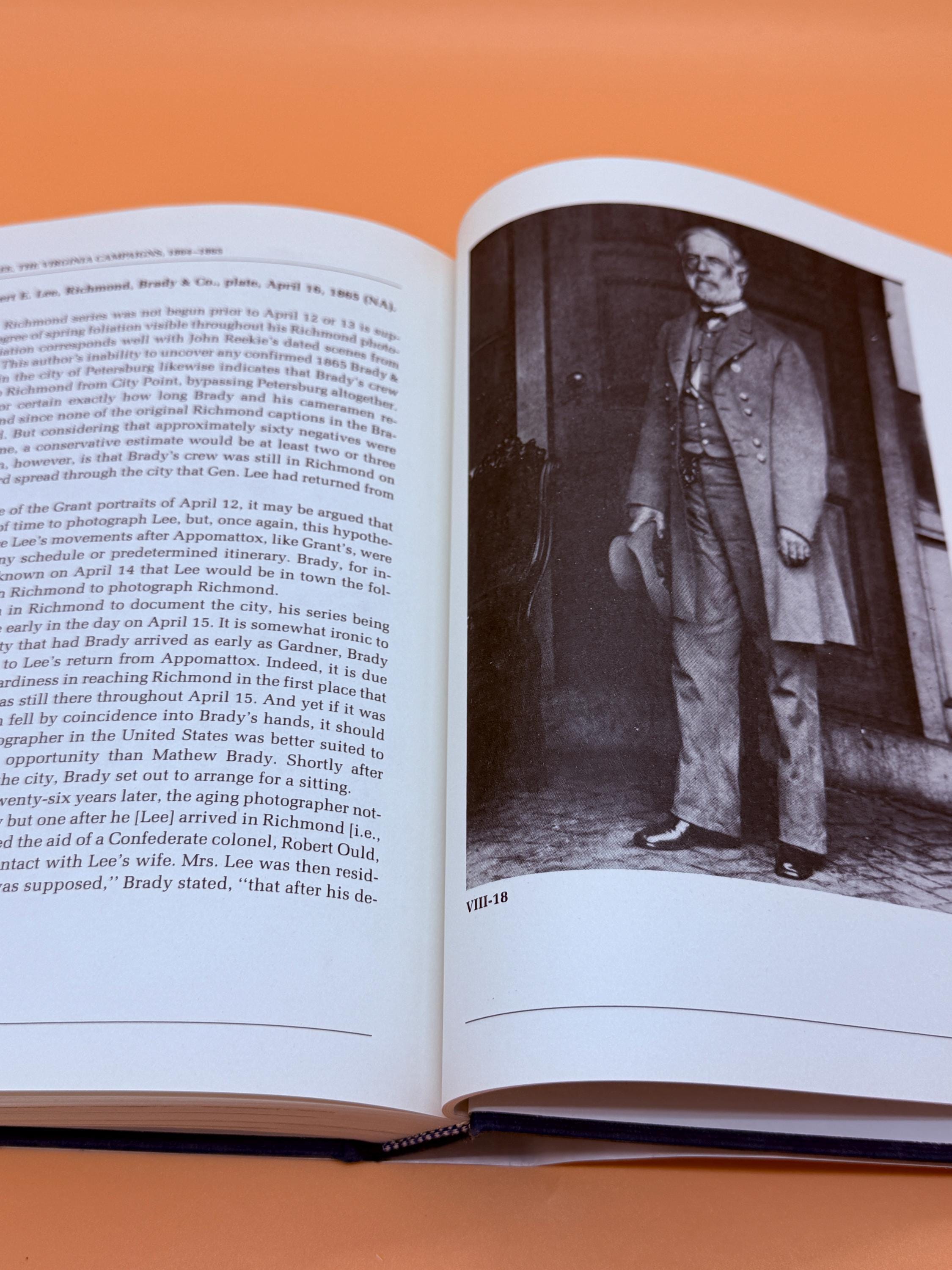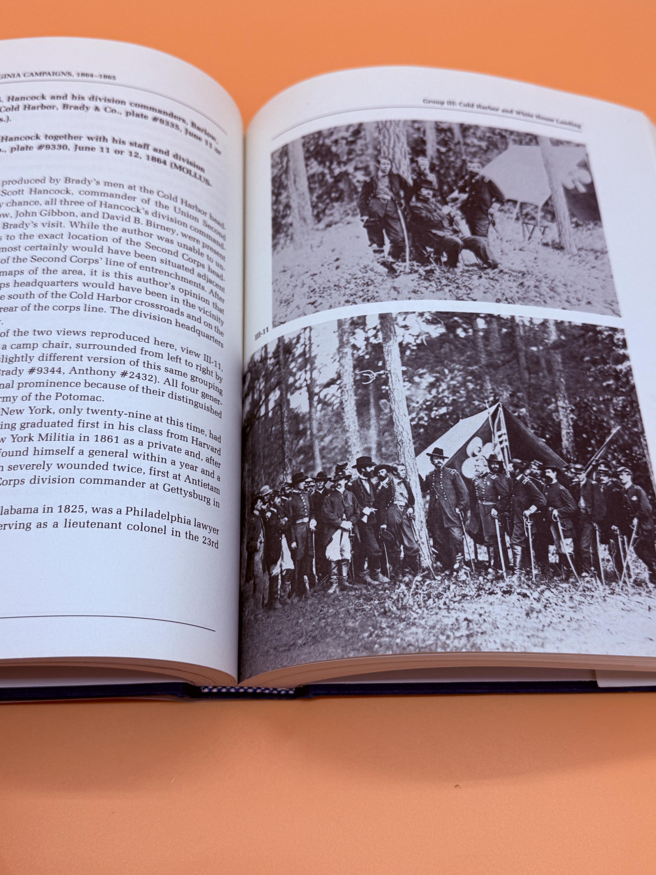 Grant and Lee The Virginia Campaigns 1864-1865 by William A. Frassanito chronicles the final year of the war, Using meticulous research the author presents a thorough examination and analysis of the photos taken that year. The history is chronicled through 225 views. The photos were taken by O'Sullivan, Gardner, and the cameramen of Matthew Brady. They show entrenchments, river crossings, headquarters, battle sites and more. The author has taken these photos and analyzed historical evidence, original camera positions, (often providing modern photos of the sites) and he also corrects some of the labeling errors from a century ago. The authors first two volumes, Antietam and Gettysburg, chronicled Civil War photography. This book is a visual documentation of the Civil War and its final year.