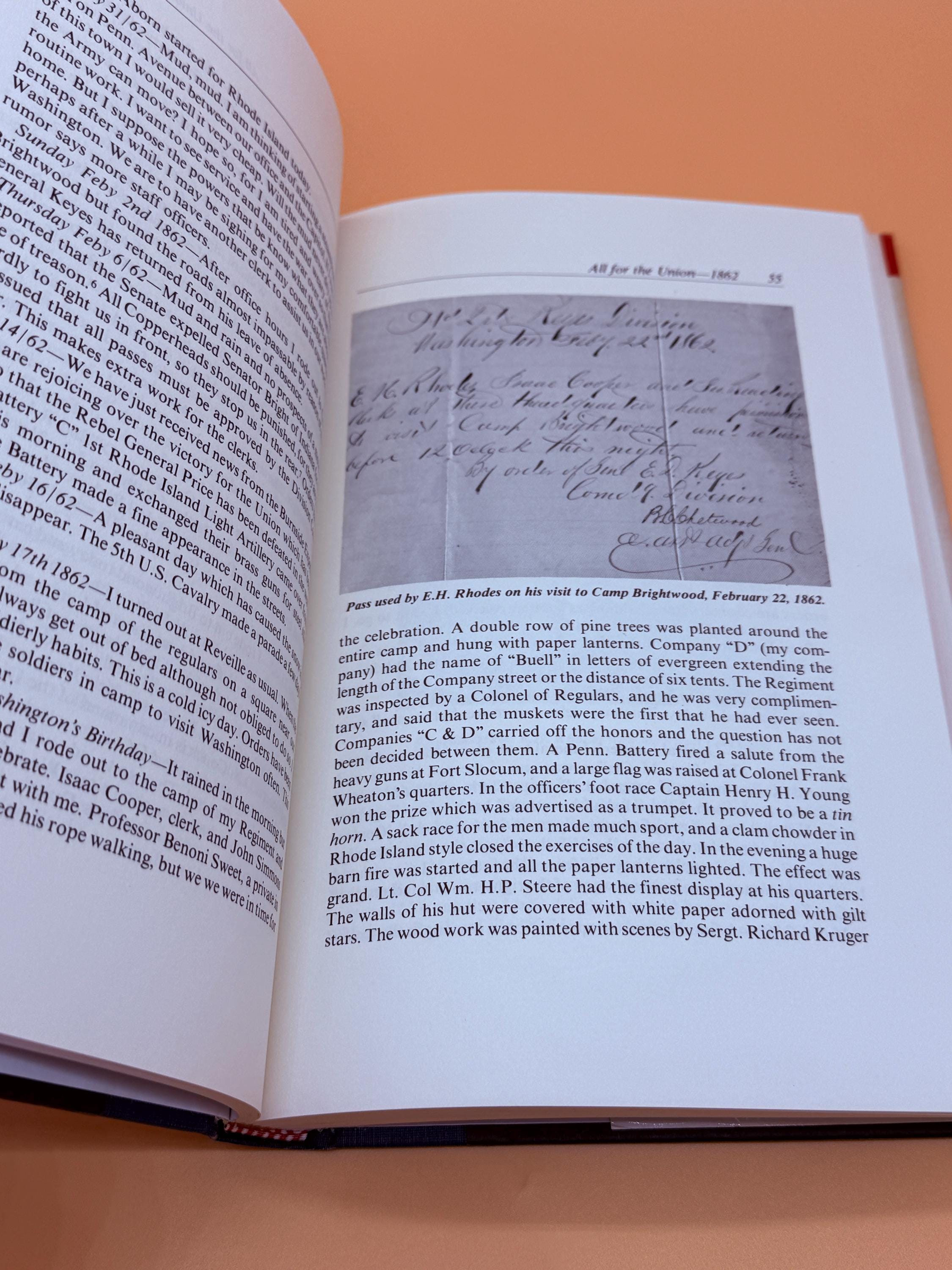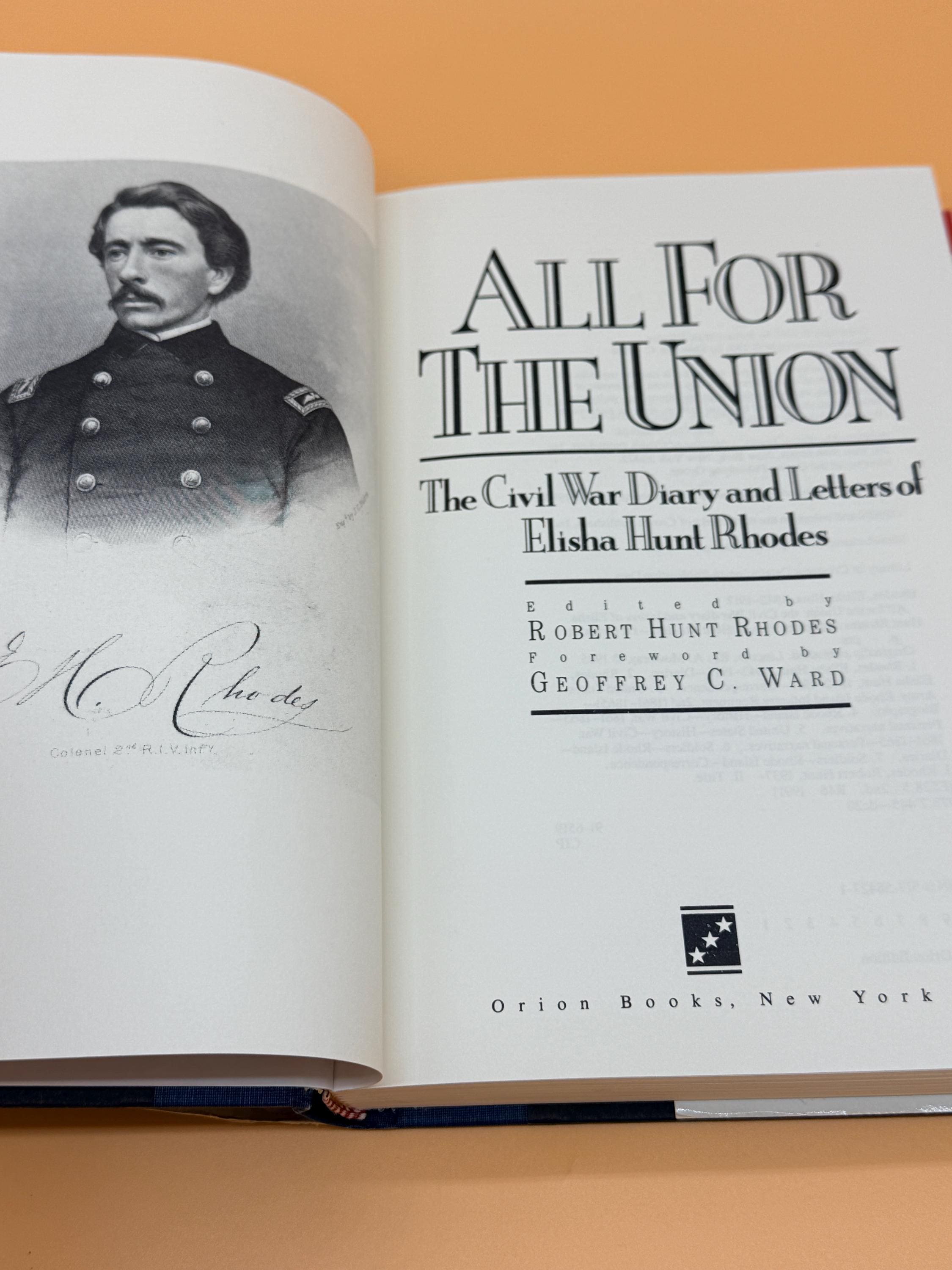 All For The Union The Civil War Diary and Letters of Elisha Hunt Rhodes has been edited by Robert Hunt Rhodes. The diaries and letters were featured in the PBS series, The Civil War when Ken Burns came across the diary. Enlisting in the 2nd Rhode Island Infantry at the age of 18, Rhodes fought in the regiments 20 battles beginning at First Bull Run and ending at Appomattox. He rose to the rank of Lt. Colonel and commanded the regiment at age 22. History comes alive in the pages of his diary and his remarkable and thoughtful words are clear and honest.