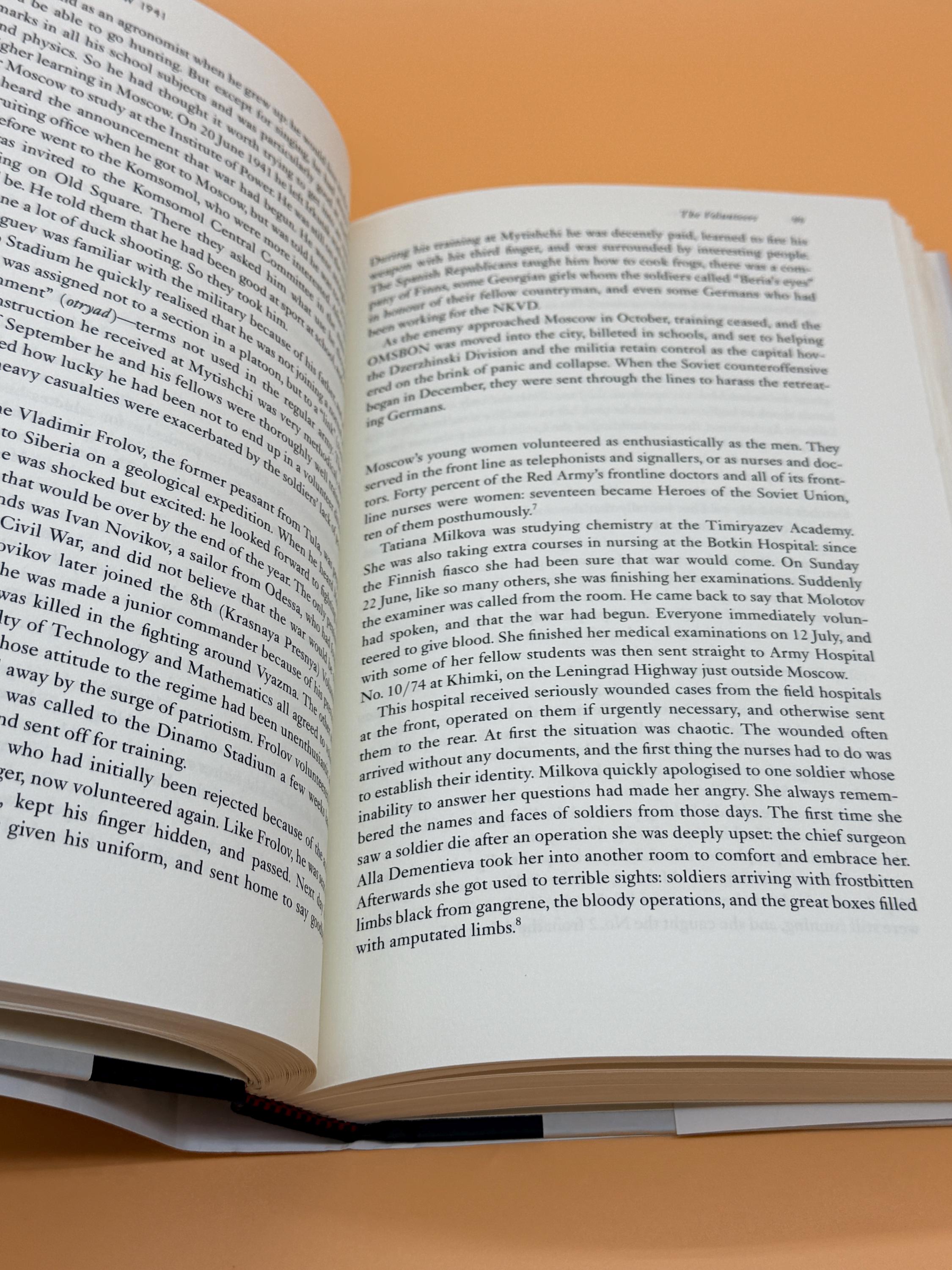 The book begins when Russia was largely untouched by the war that was raging to the west. He tells how intelligence and breaching of the border by Wehrmacht in June took the country by surprise. The story continues when the Germans pushed into Moscow and the Red Army and the capital's citizens took to defending their city.