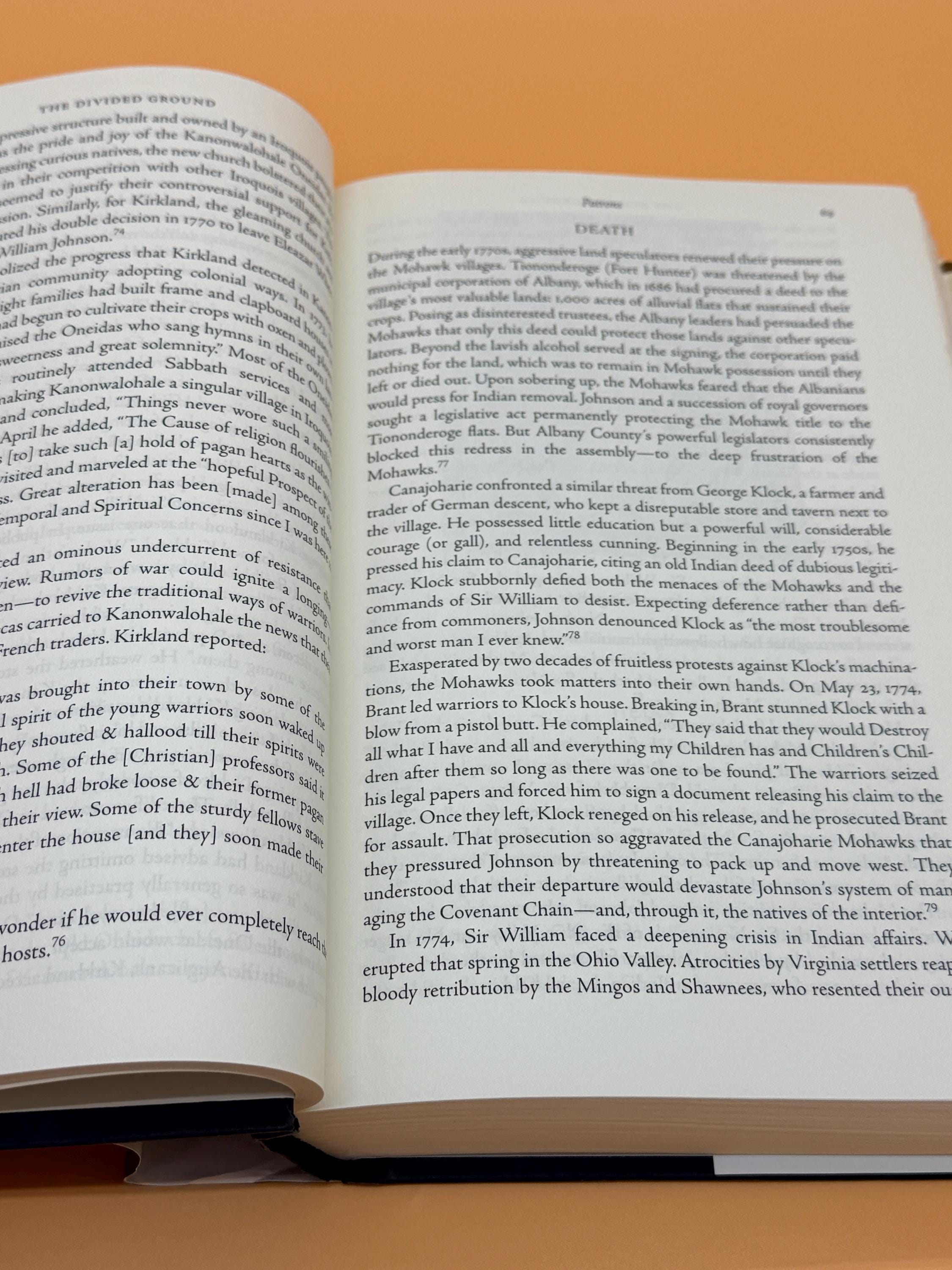 The Divided Ground by Alan Taylor is subtitled Indians, Settlers, and the Northern Borderland of the American Revolution. In 1761, at a boarding school in New England, a young Mohawk Indian named Joseph Brant met Samuel Kirkland, the son of a colonial clergyman. Thus began a long friendship and intense relationship that would redefine North America. At first they were close friends, later bitter foes. Kirkland served American expansion as a missionary and agent, promoting Indian conversion and dispossession. Brant's future found him defending an Indian borderland nestled between the British in Canada and the Americans. This is the dramatic story of dual borders. By restricting Indians in reservations, the Americans sought to control their northern boundary with the British Empire which lingered in Canada. The borderland soon became a divided ground.