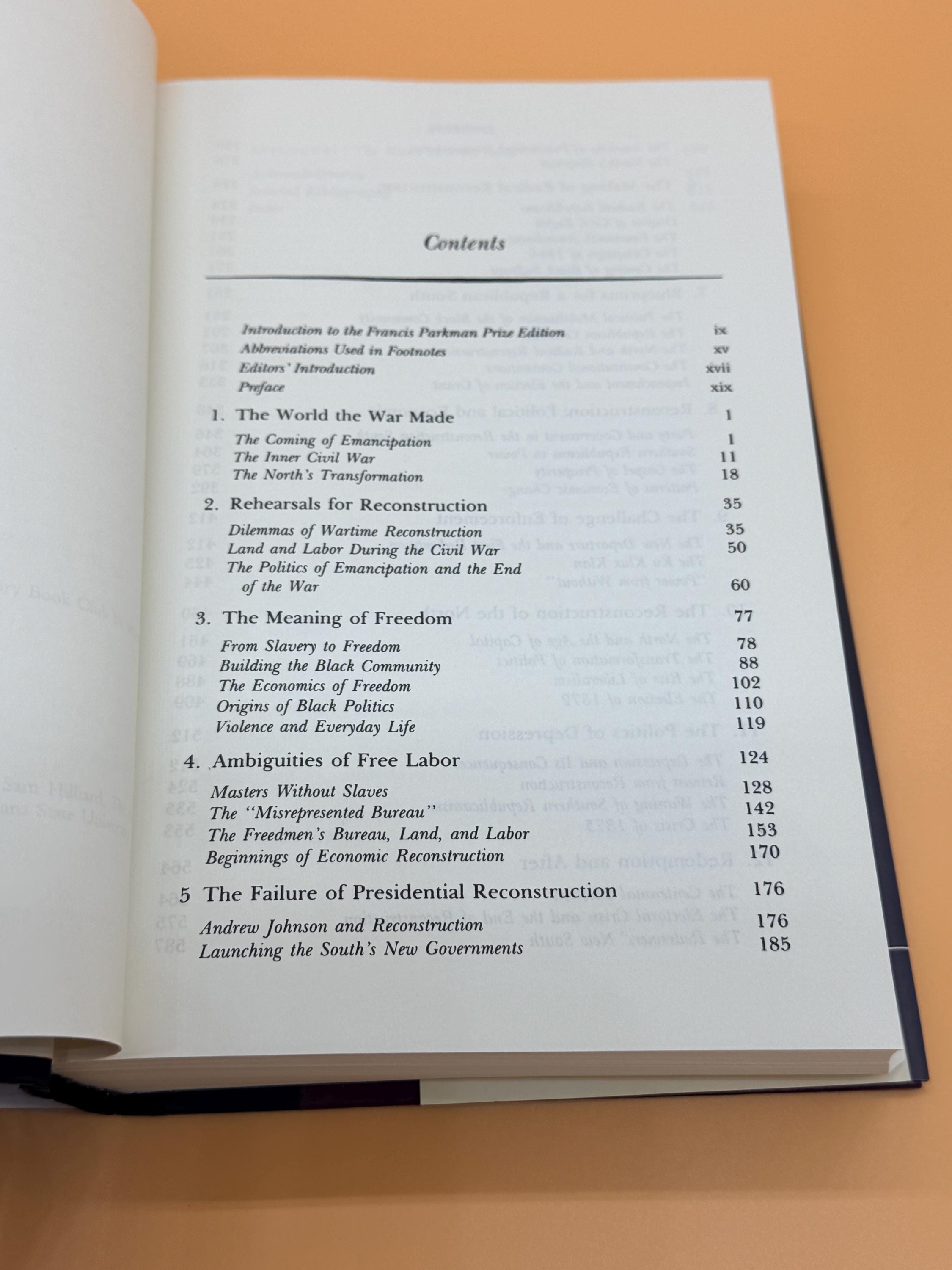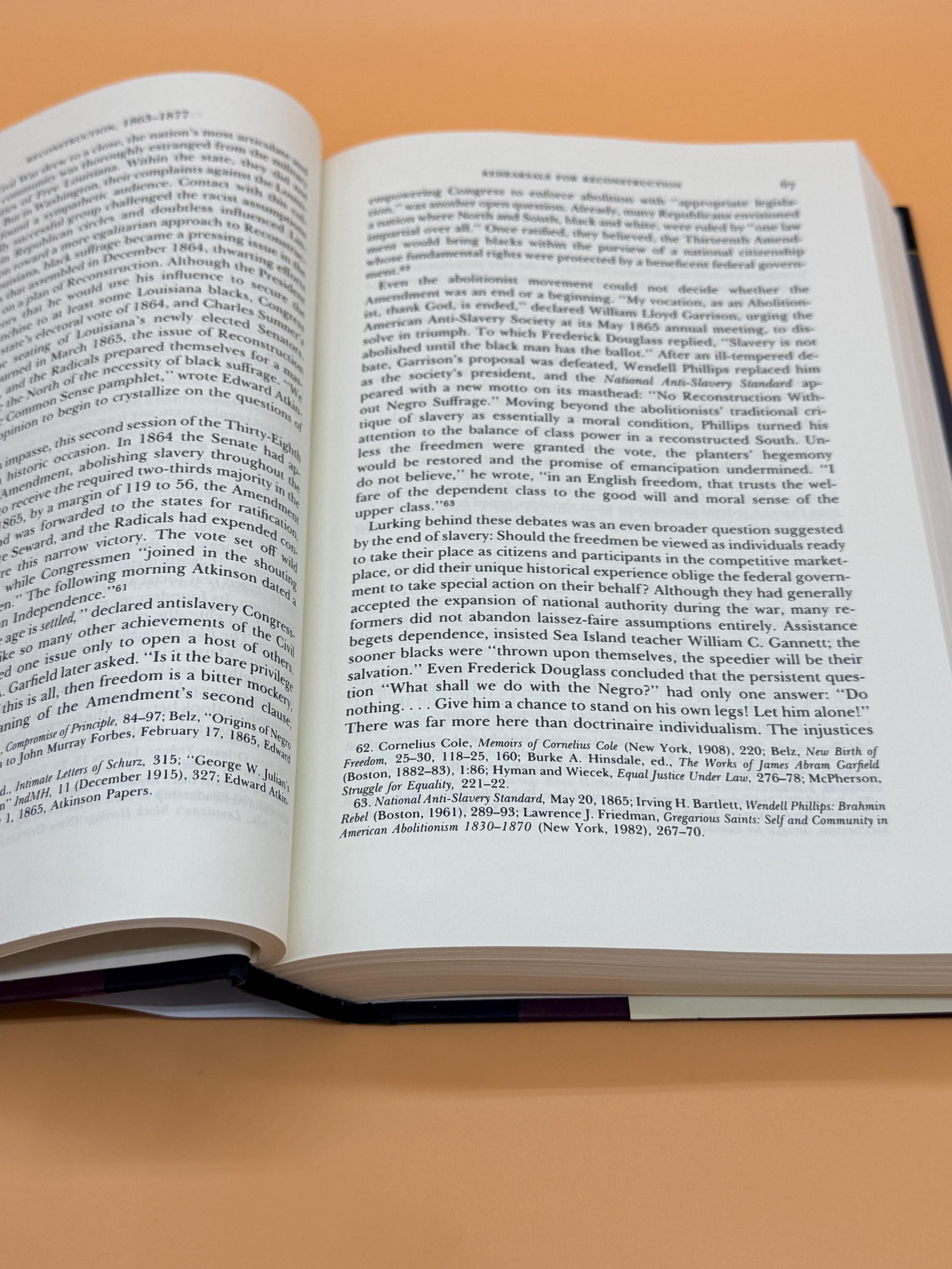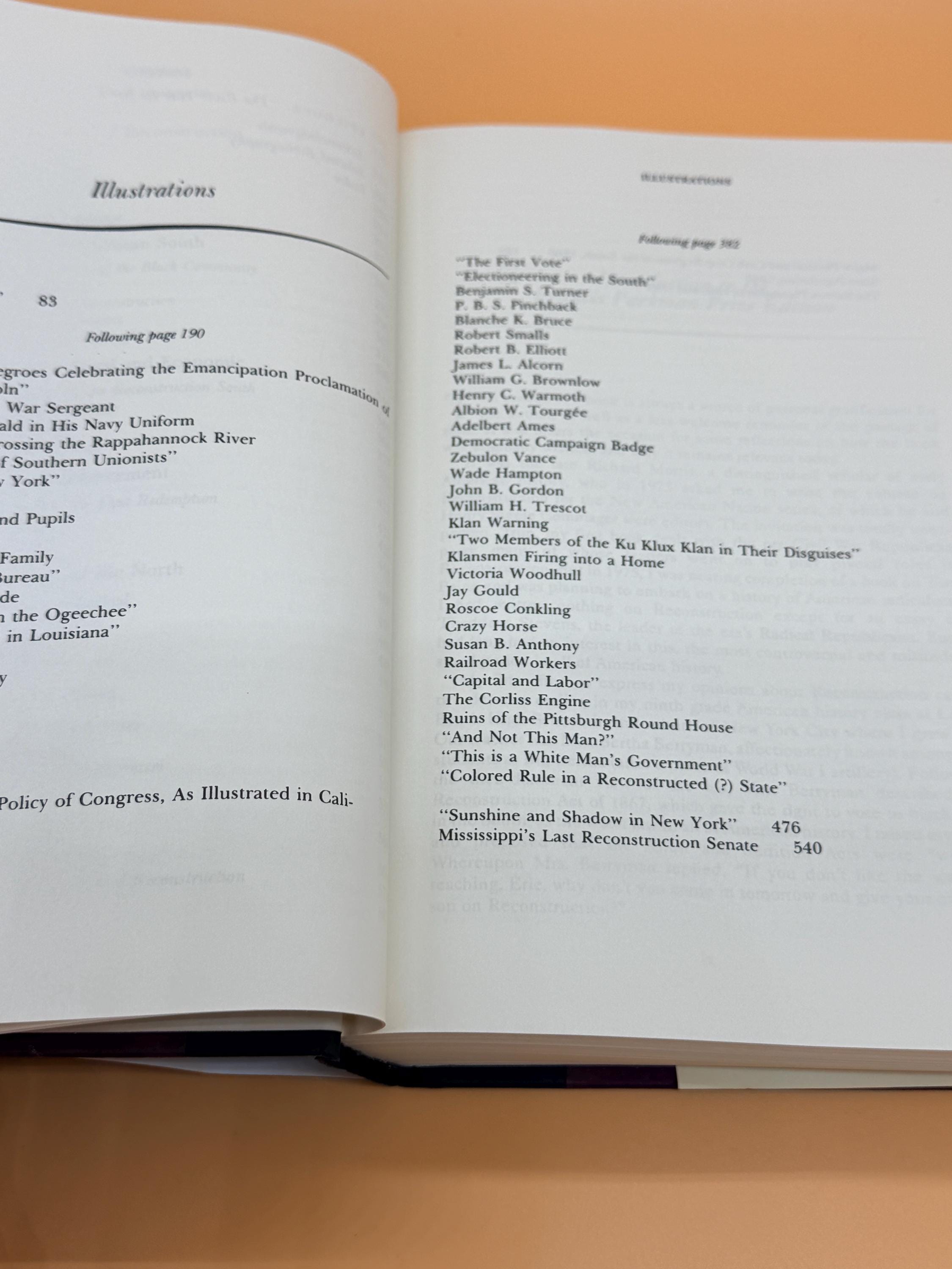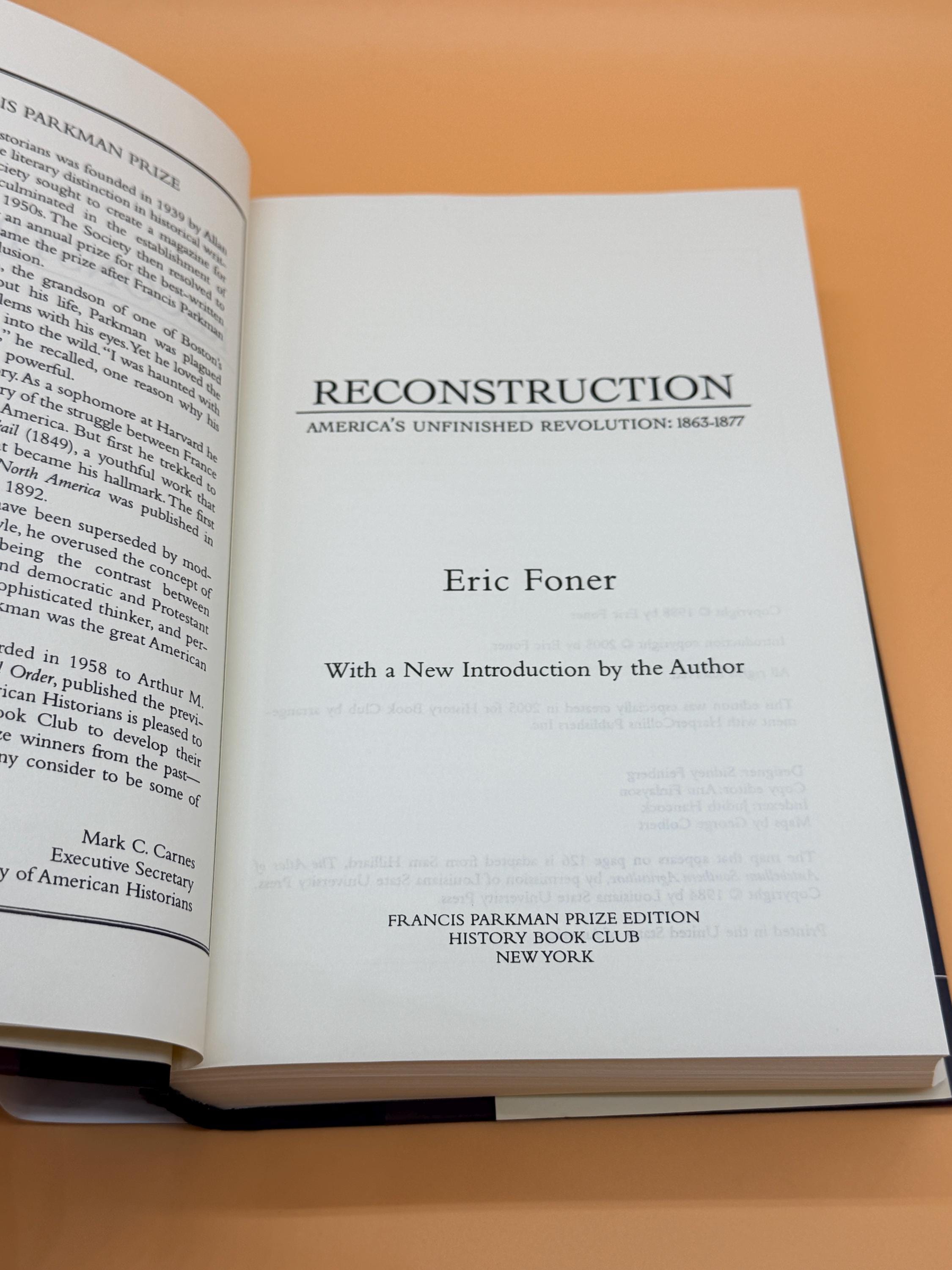 Reconstruction America's Unfinished Revolution 1863-1877 by Eric Foner was drawn from extensive research into manuscripts, official archives, personal papers and previously untapped resources. This edition contains a new Intro by the author. The book expands and redefines our understanding of the violent and controversial years after the Civil War. That legacy still shapes American society. The book received the Francis Parkman Prize from The Society of American Historians in 1989.