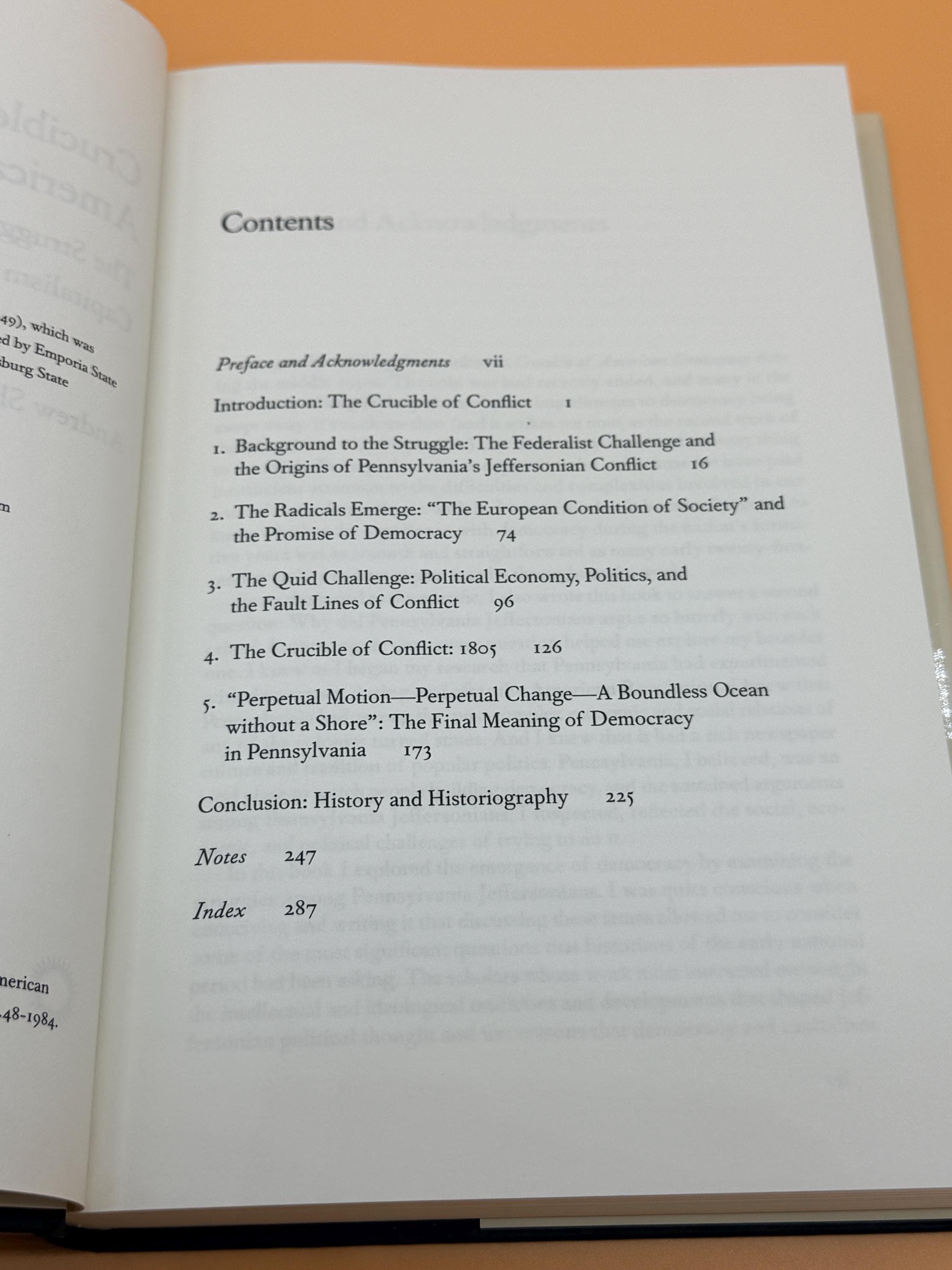 Crucible of American Democracy by Andres Shankman is subtitled The Struggle to Fuse Egalitarianism and Capitalism in Jeffersonian Pennsylvania. Arguments over what democracy meant in practice and how it should be implemented raged throughout the early American republic. This book shows how intensely these ideas were contested and represented in the national debate where Jeffersonians dominated. Jeffersonians were the first to attempt to translate idealized speculations about democracy into a workable system of politics and governance. The authors exploration of the experience reveals how democracy rose in America and came to accommodate capitalism. It is a work of political history and demonstrates the aspirations, fear, dreams, and capacity of those who tried to translate a blueprint for democracy.
