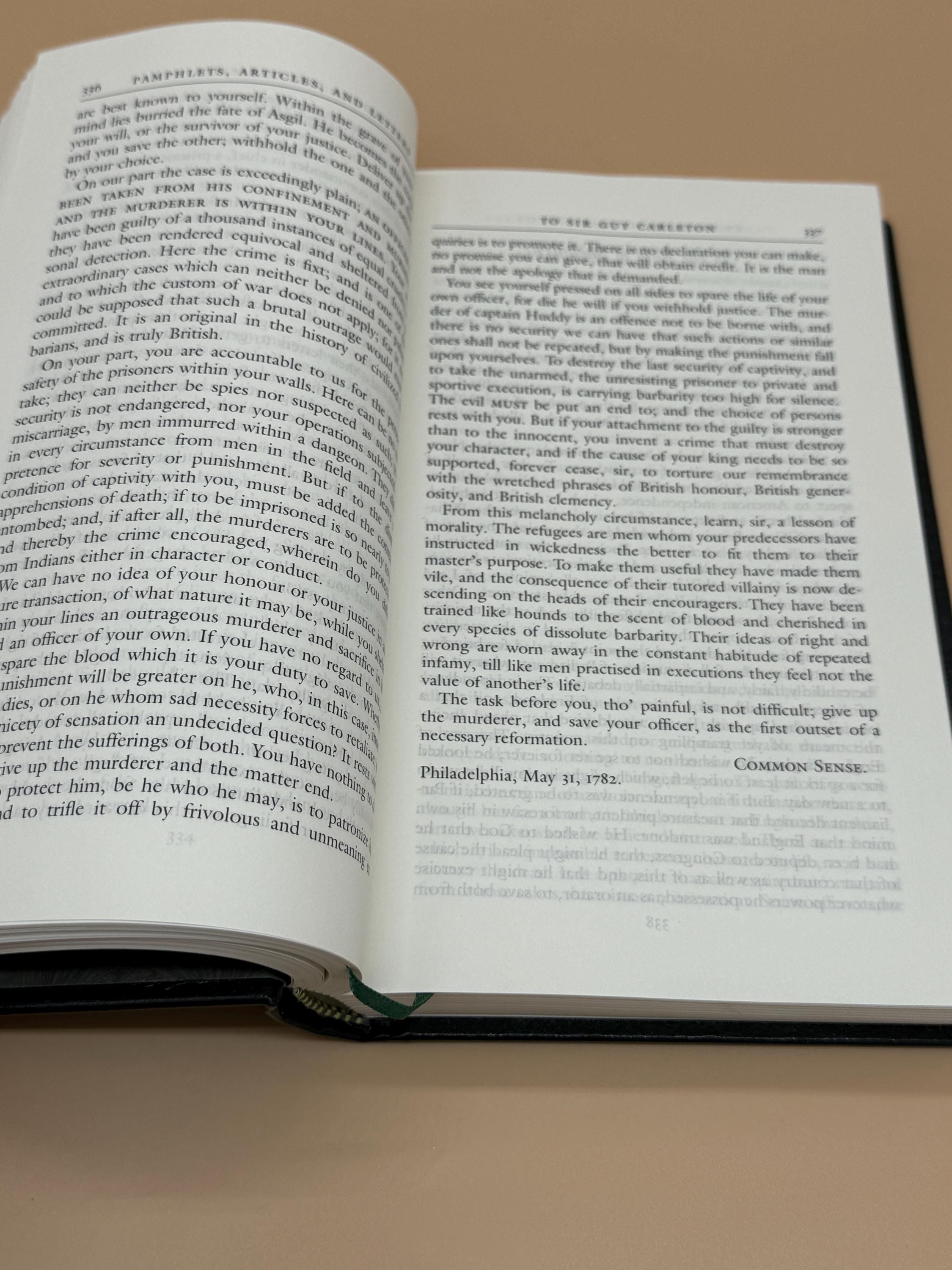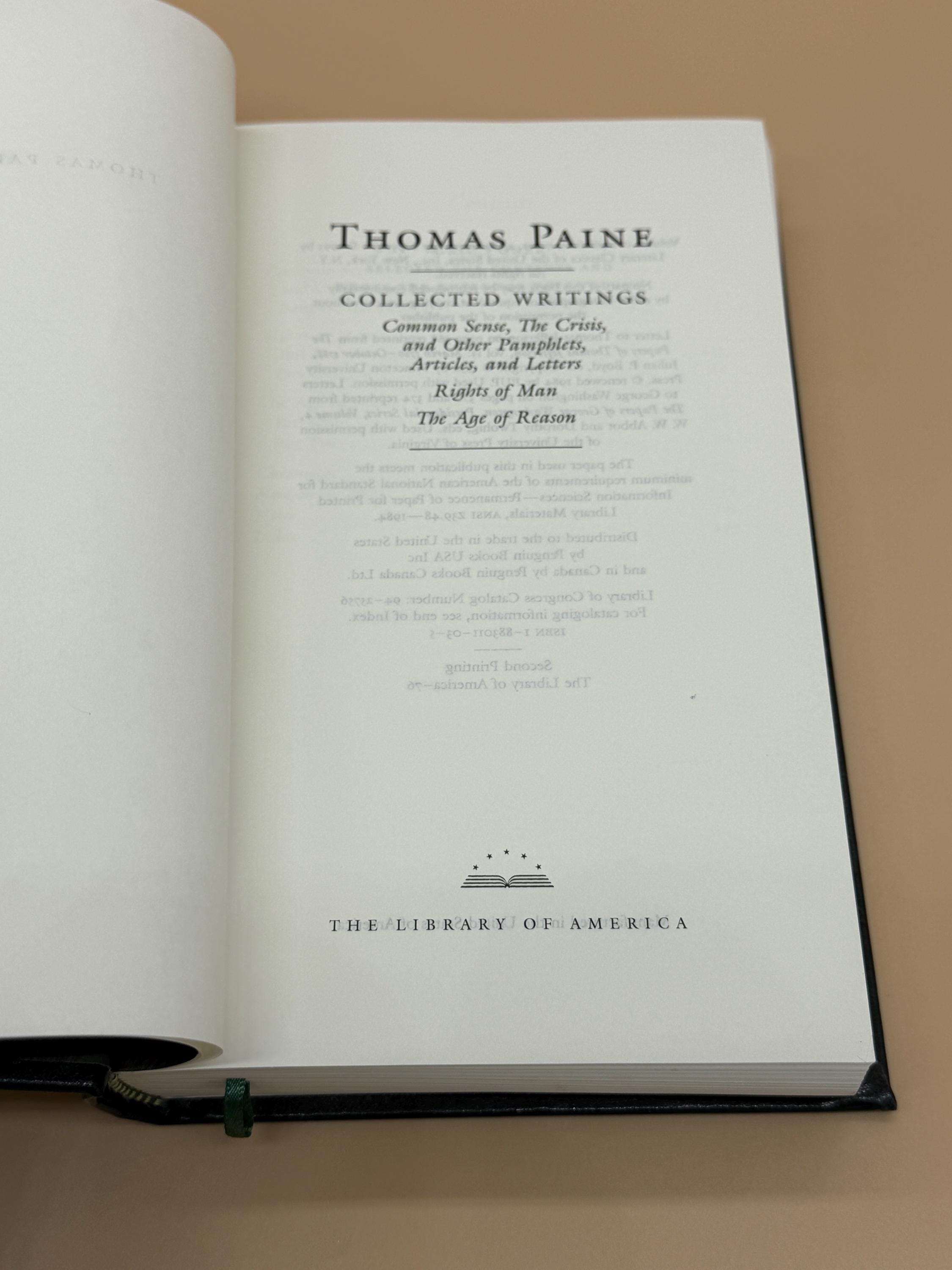 This is one of the Library of America history series. Thomas Paine Collected Writings. This edition includes; Common Sense, The Crisis and Other Pamphlets, Articles and Letters, Rights of Man and The Age of Reason.