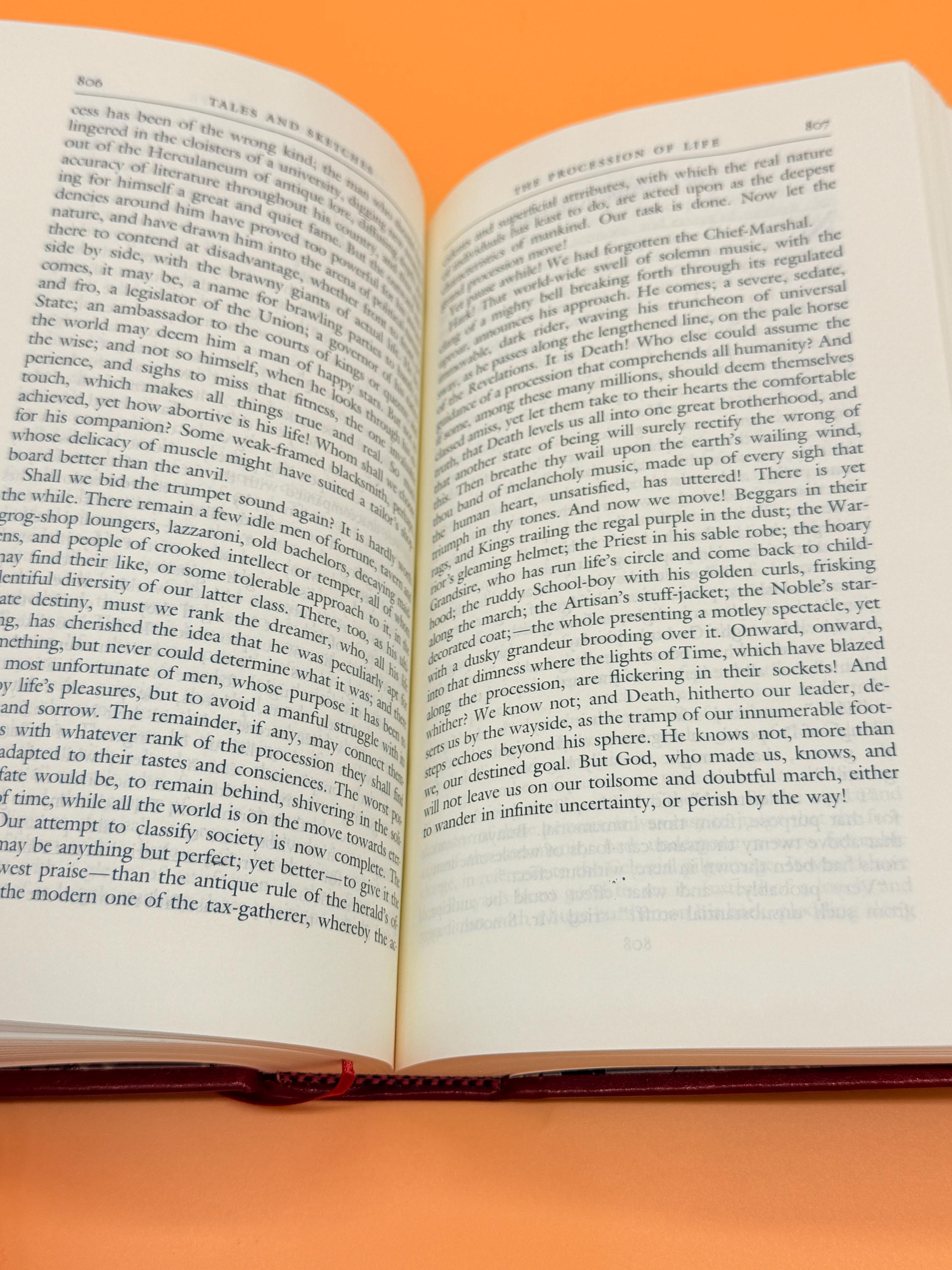 This is a near fine (almost like new) hardcover, NO slipcase as originally published, slipcase missing. Tenth printing 1990 Library of America. This copy is still crisp and clean inside and out. The inside pages are crisp and clean. The binding is tight and straight. Red hardcover boards are also near fine with barely a hint of shelf wear. Attached red satin bookmark. Crown octavo book size or 5" x 8.5" with 1493 pages including chronology and notes. Marbled endpapers front and back.