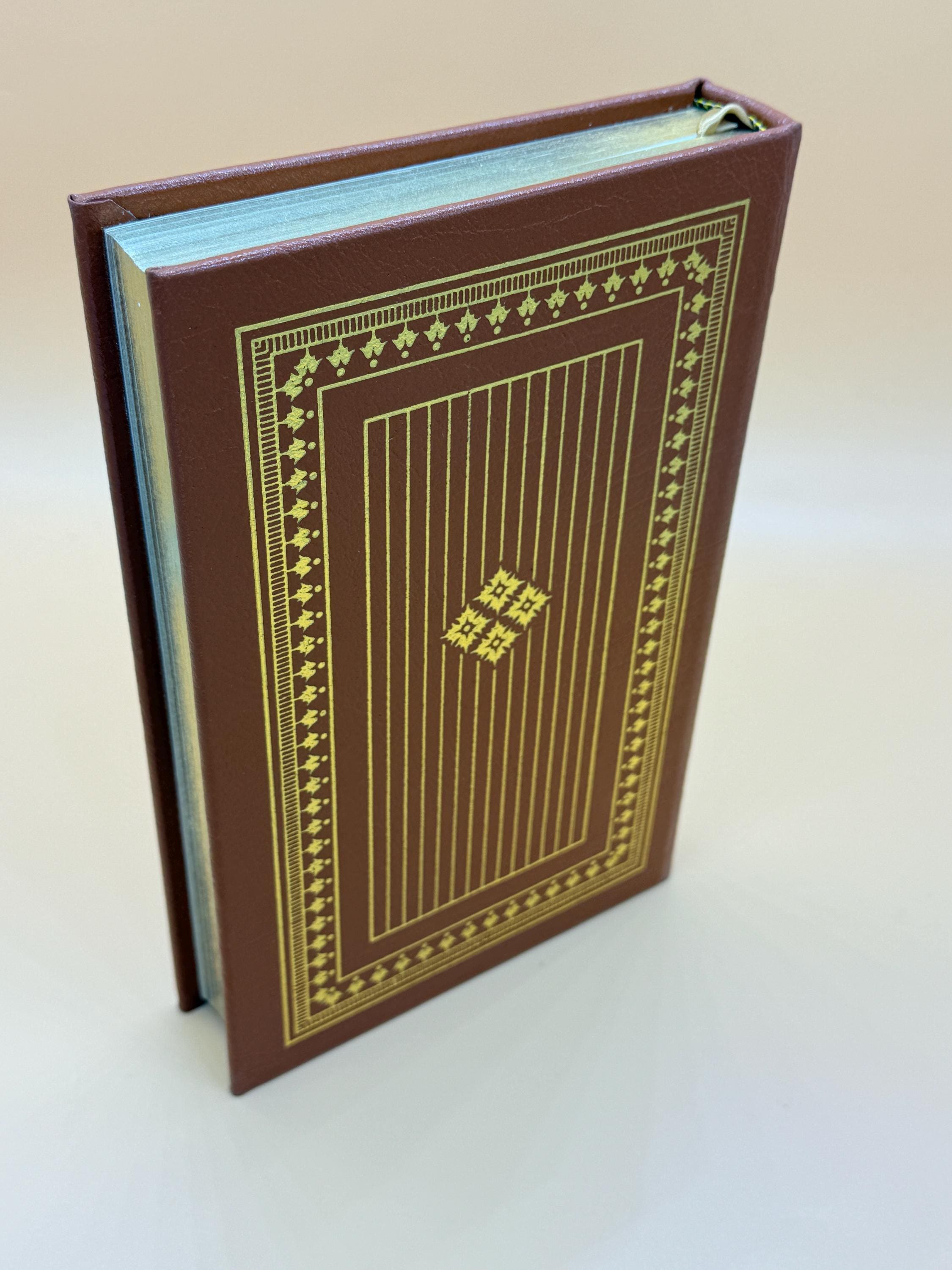 This is a near fine (almost like new) leather-bound hardcover. 2000 Easton Press Collectors Edition. This copy is still crisp and clean inside and out. Bound in burnt orange leather, the cover features gold design front and back. Additional fine binding appointments include Smyth sewn binding, Silk moire fabric endpapers and hubbed spine. Attached gold satin bookmark. Inside pages are crisp and clean and printed on acid-neutral paper. All three outer page edges tipped in gold gilt. Standard octavo book size or 6" x 9" with 343 pages. This copy includes the original accompanying Easton Press Collectors Notes.