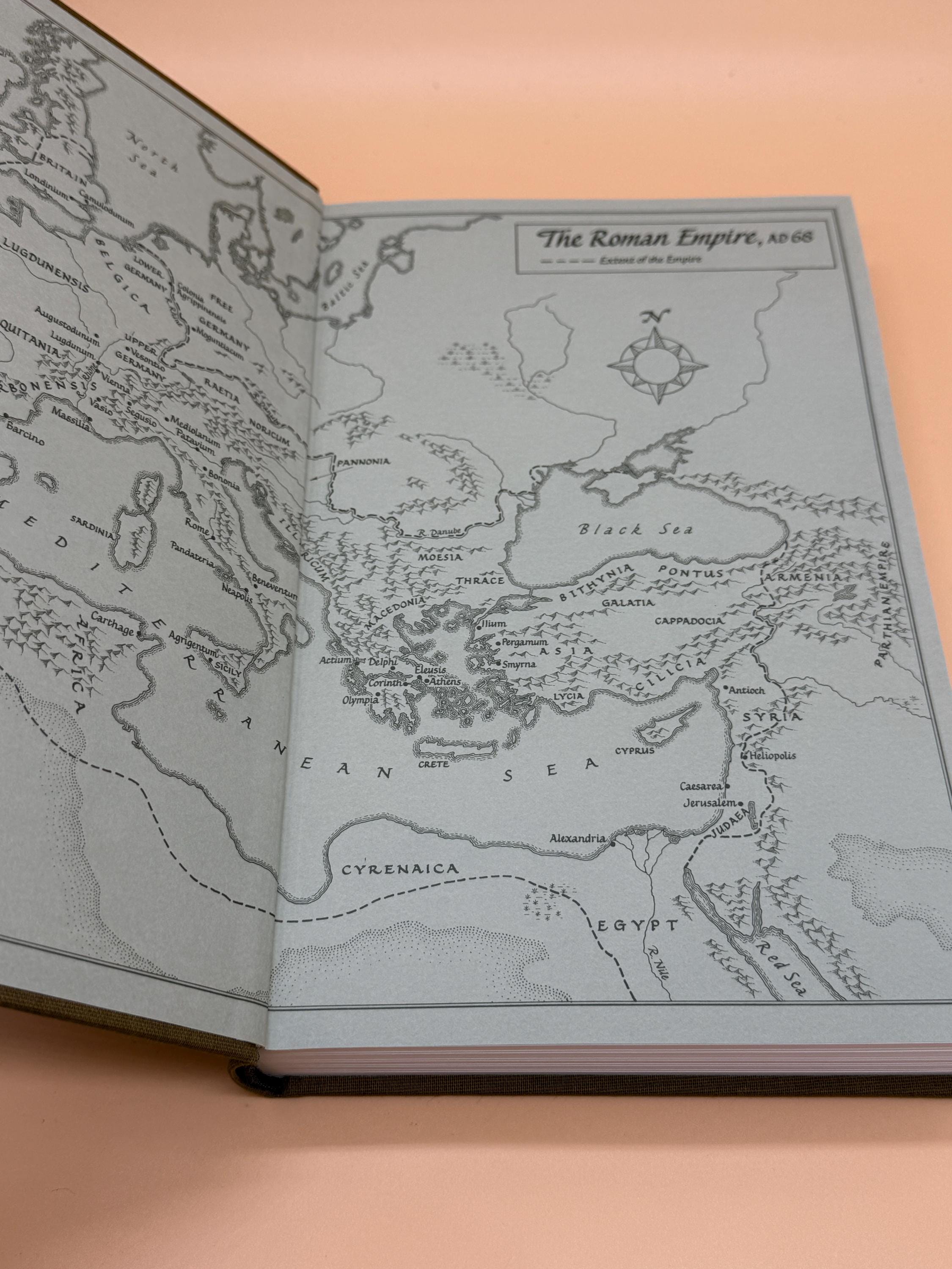This is a near fine (almost like new) hardcover with accompanying slipcase. Fourth Printing 2004 The Folio Society. This copy is still crisp and clean inside and out. The inside pages are crisp and clean. The edition is finely bound in durable sewn binding which is tight and straight. Olive green hardcover boards are also near fine with barely a hint of shelf wear and feature Nero illustration front. The accompanying dark green slipcase is very good and solid with only very light shelf wear. Medium octavo book size or 6.5" x 9.5" with 222 pages including index. Illustrated maps front and back endpapers.