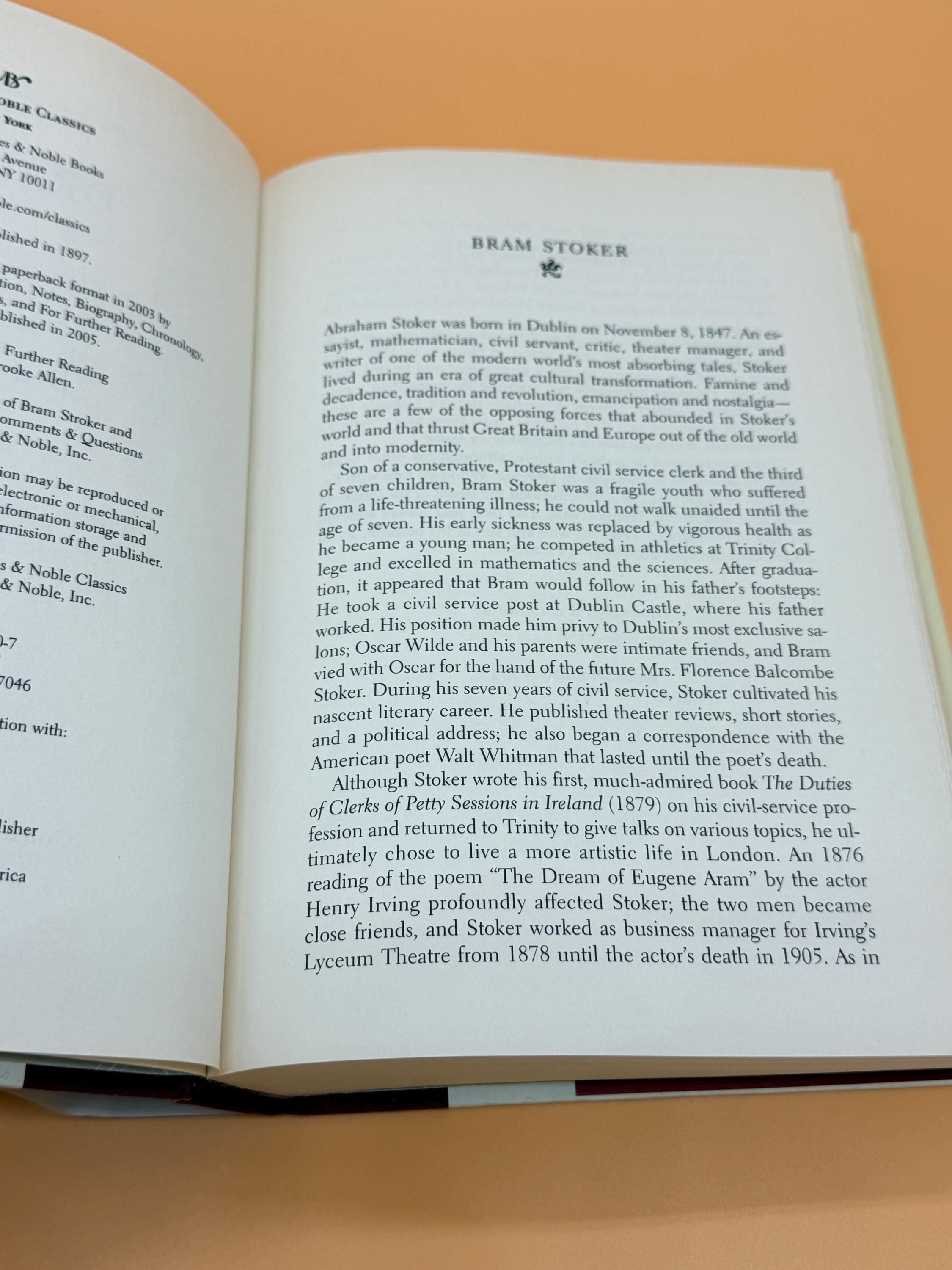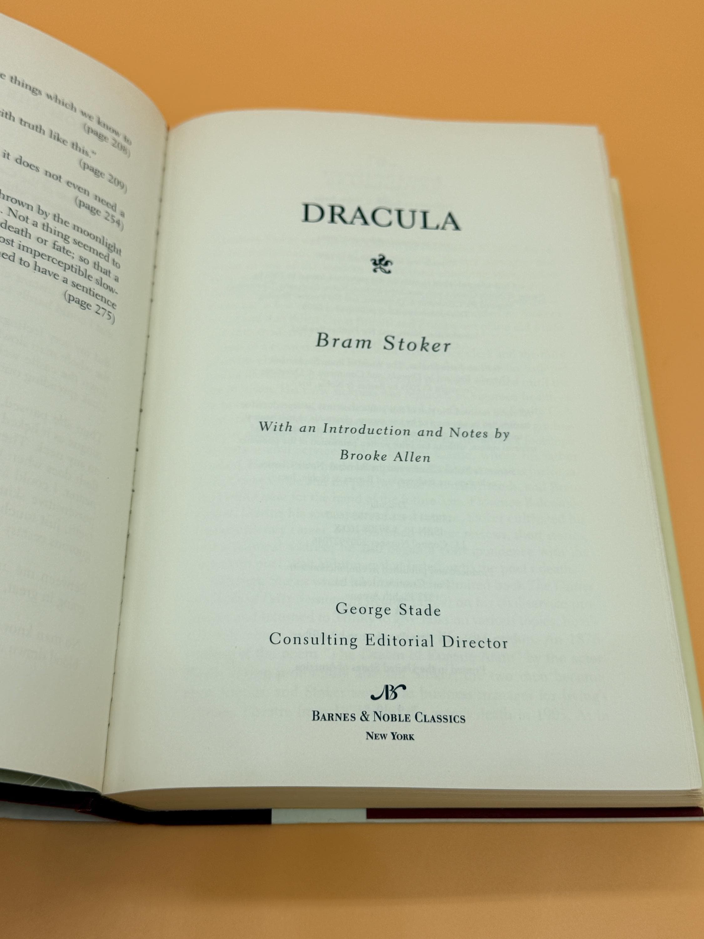 This is the classic vampire horror book, Dracula by Bram Stoker. This edition contains an Intro and Notes by Brooke Allen.