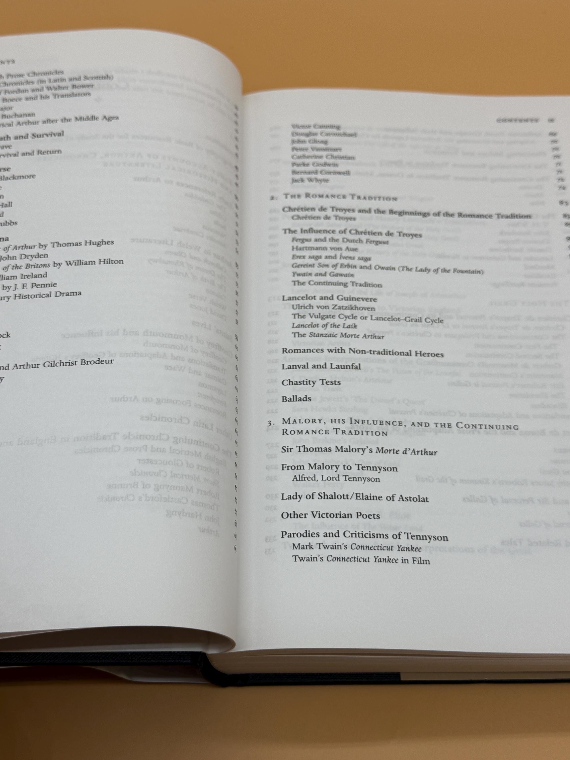 The Oxford Guide to Arthurian Literature and Legend by Alan Lupack covers the following; Early Accounts of Arthur, - Chronicles and Historical Literature, The Romance Tradition, Malory His Influence and the Continuing Romance Tradition, The Holy Grail, Gawain, Merlin, and Tristan & Isolt.