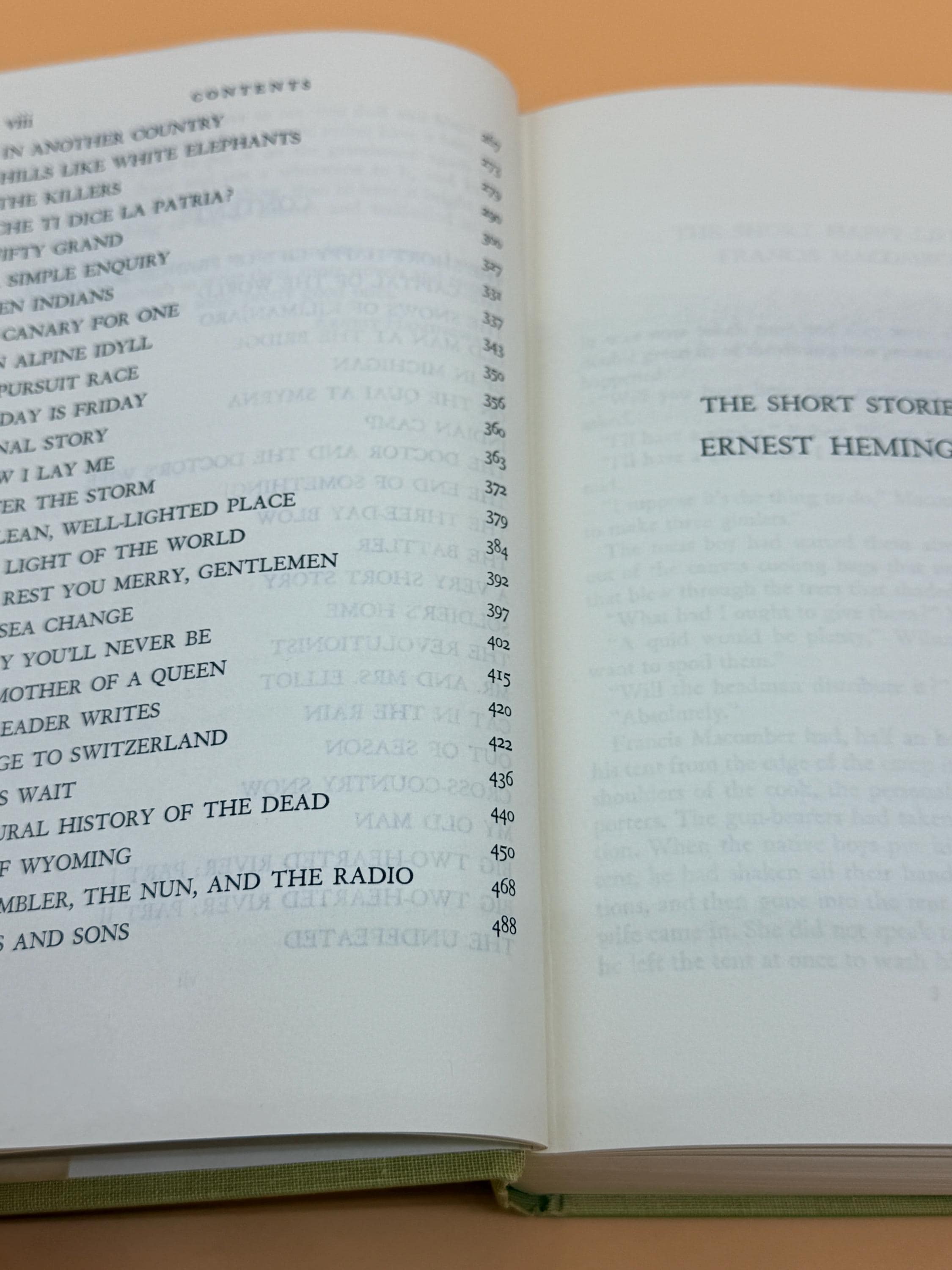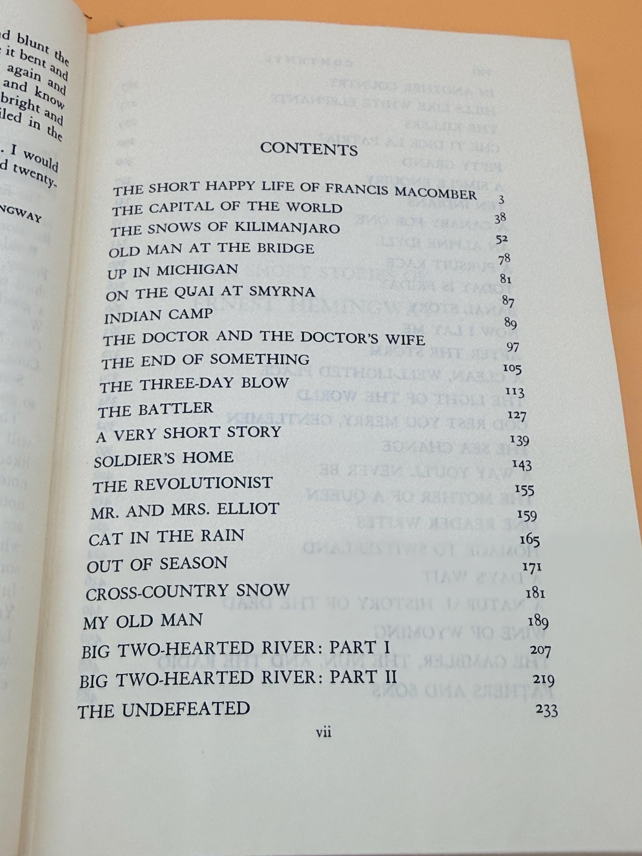 The Short Stories of Ernest Hemingway is a one volume collection that brings together the authors short stories. There are 49 short stories including; The Undefeated, The Snows of Kilimanjaro, Big Two Hearted River, The Killers, The Revolutionist, My Old Man, Ten Indians, After the Storm, Wine of Wyoming and more.