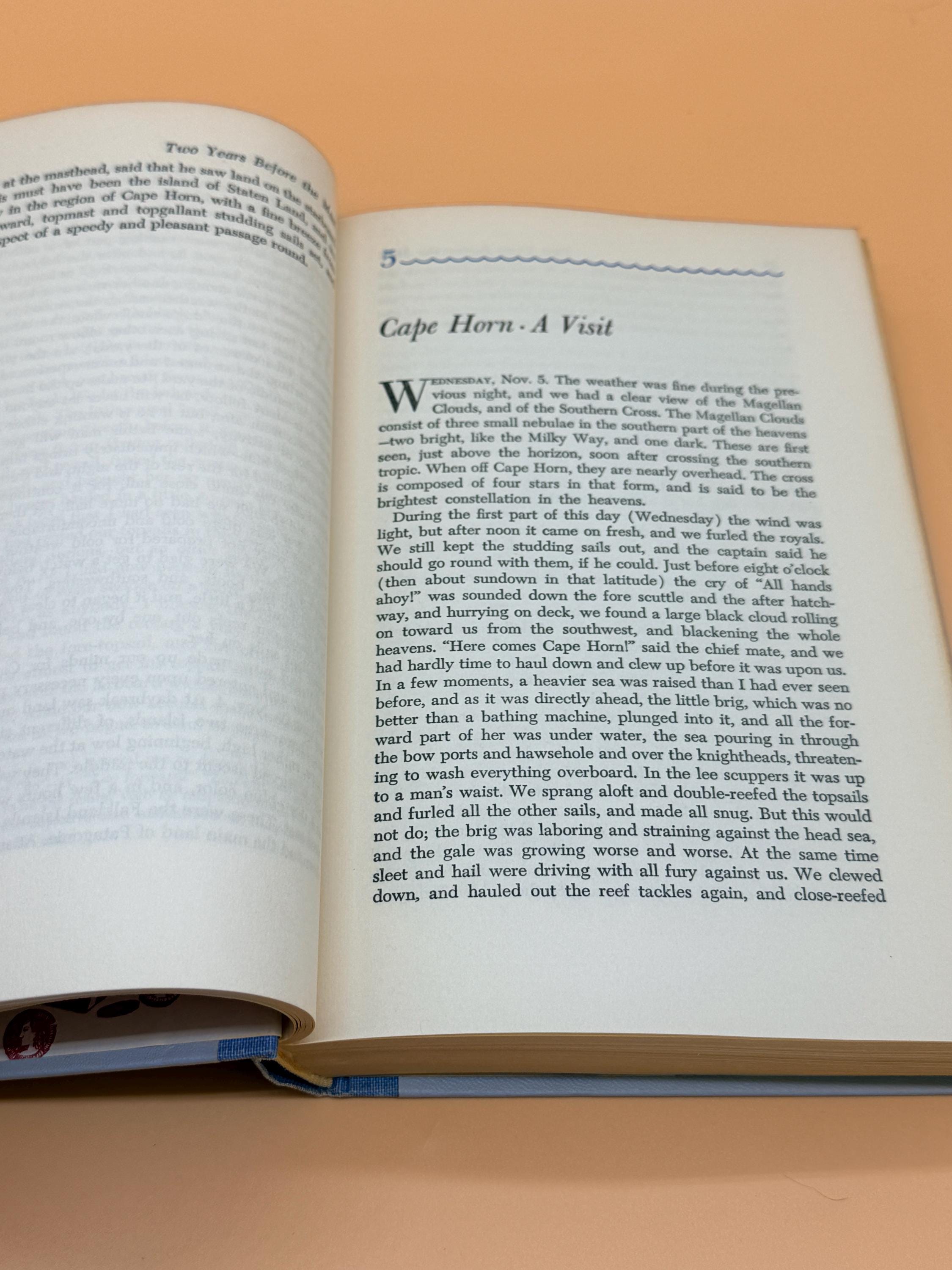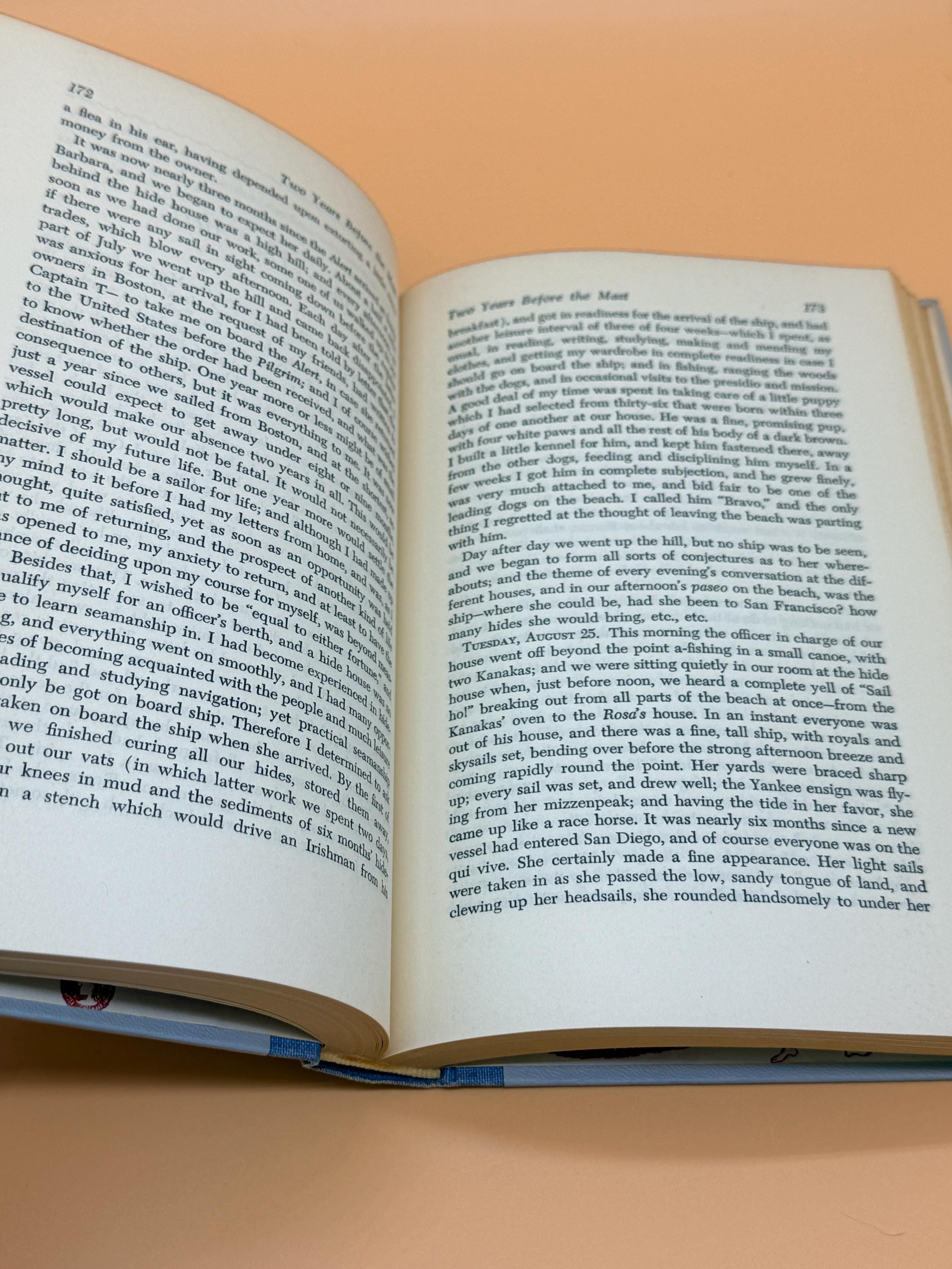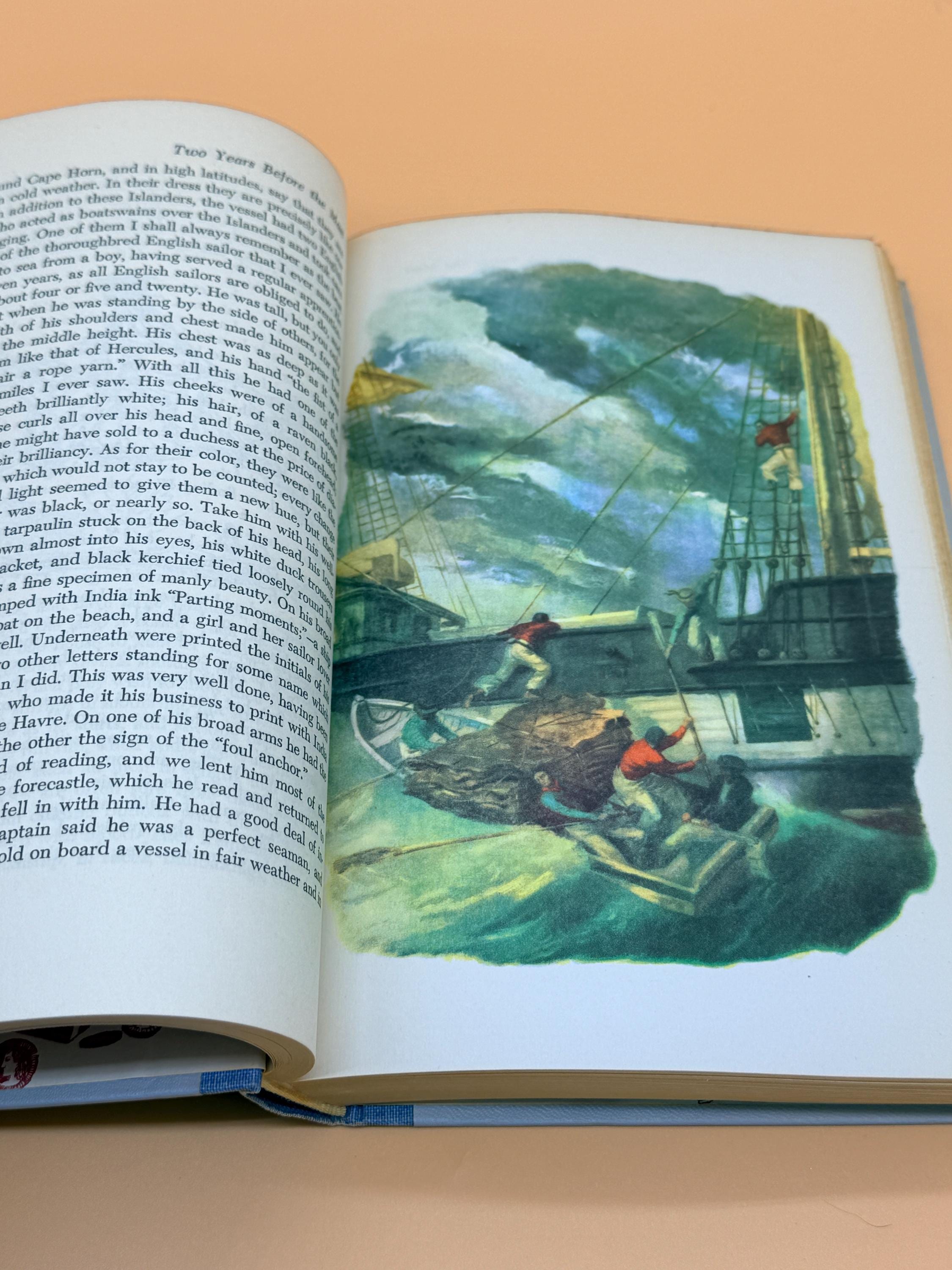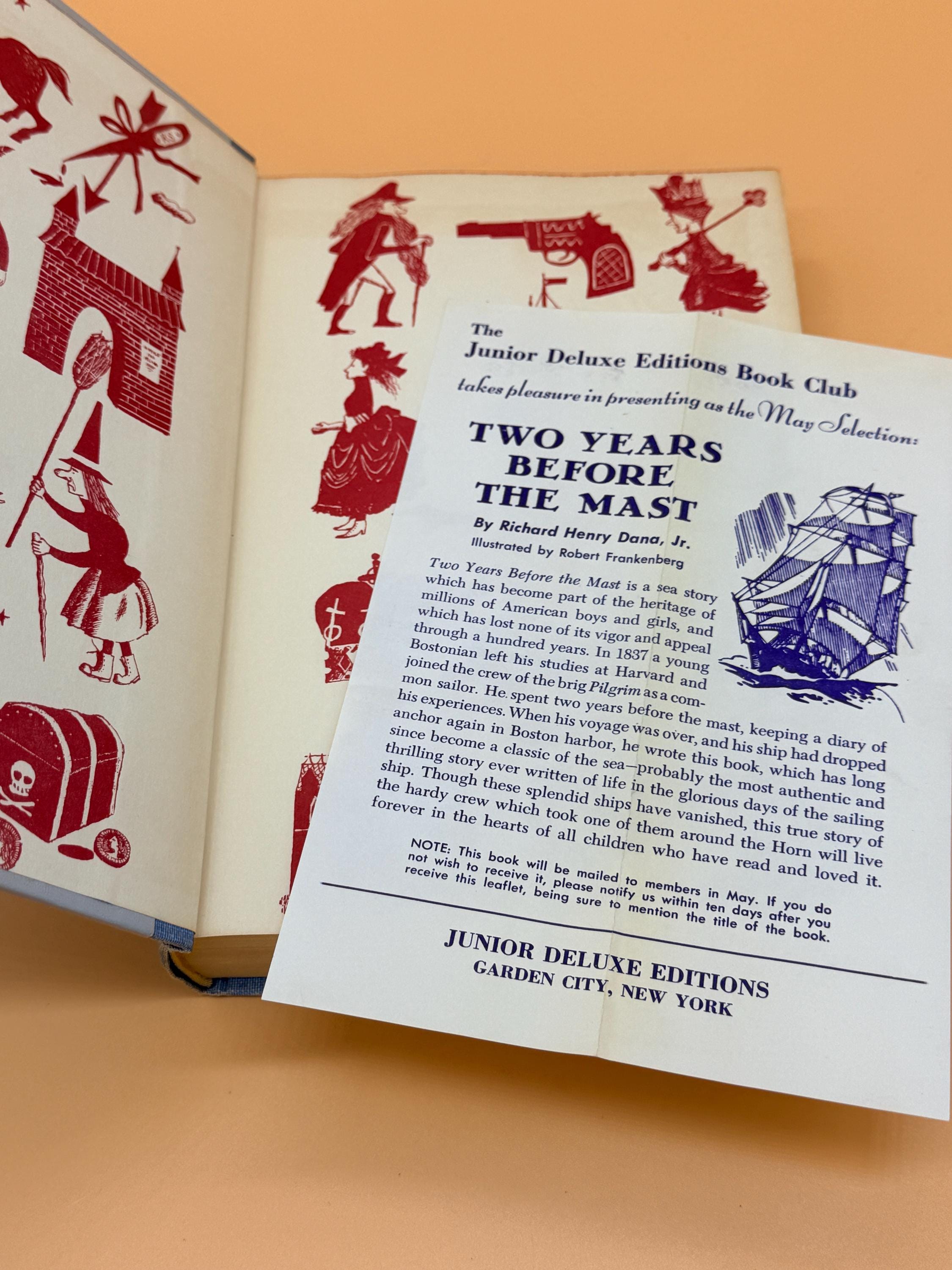 This is Two Years Before the Mast by Richard Henry Dana Jr. To explain the insert that accompanied this volume, the inserts were place in the book and featured the NEXT months volume. So given this insert is actually for this title, Two Years Before the Mast, the previous owner removed the insert from the PREVIOUS book received and placed it in the following months book to match the insert with the titled edition. Inserts were place in the series to let subscribers know what title was coming the following month. It is a nice touch to have the insert matching the book title as it was saved and place in the book when it arrived.