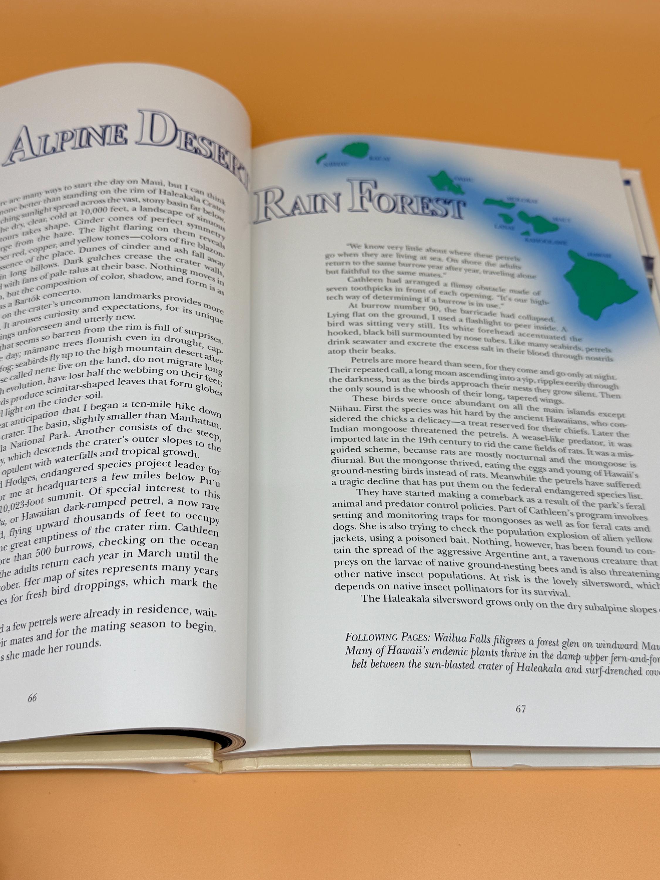Visit Hawaii's Hidden Treasures in this National Geographic natural history book. From the mountains to the sea, the book reveals geological, botanical, zoologic and cultural treasures. Chapters include; Shaping the Island Chain, Islands of Life, Alpine Desert to Rain Forest, Tranquil Shores and Magical Seas, Sea Cliffs and Secluded Valleys, Not Far From the City, and In The Shadow of Mount Waialale.