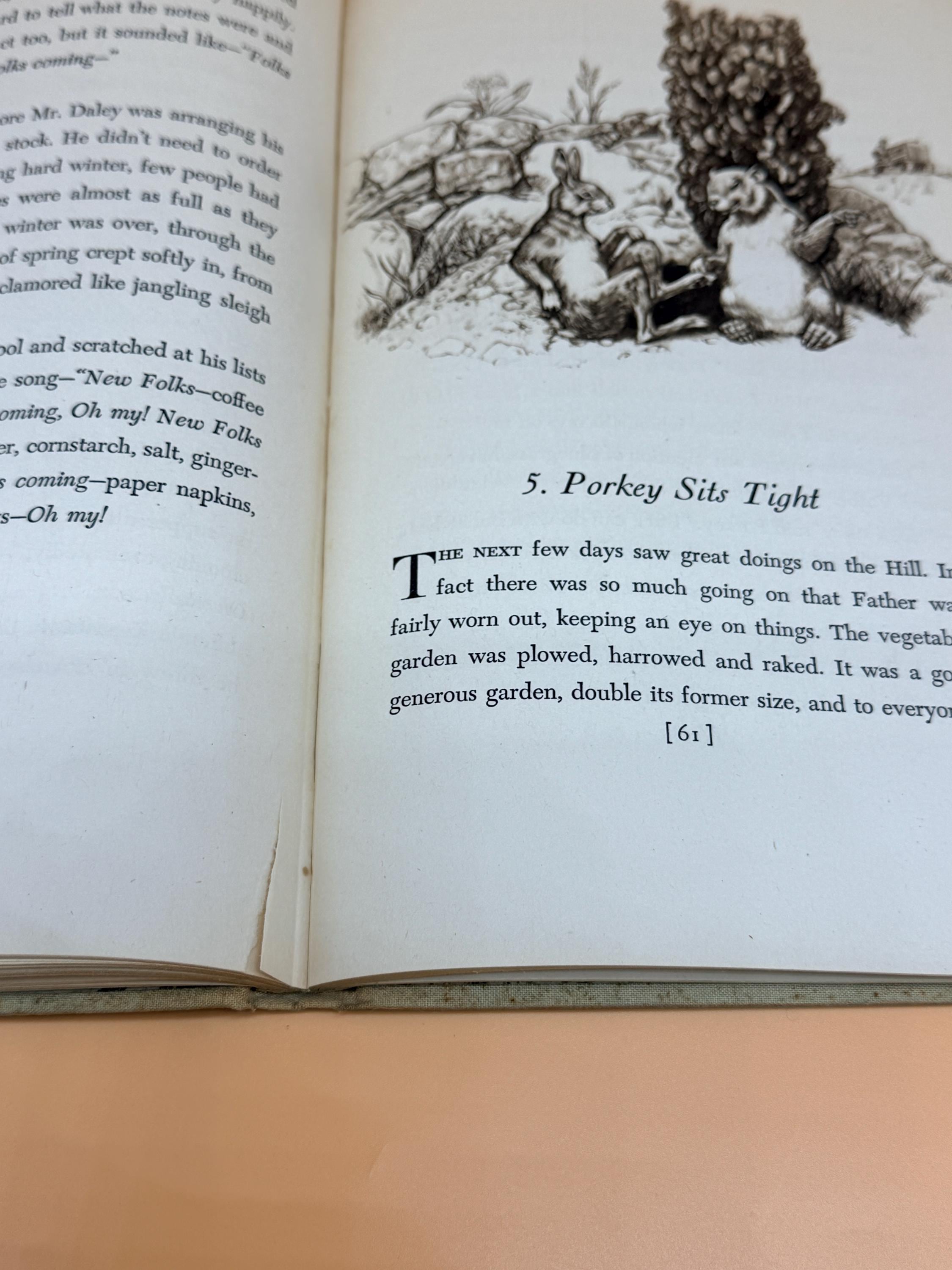 Rabbit Hill by Robert Lawson was the Newbery Award winner in 1947. It is a delightful tale about the animals of Rabbit Hill who watch the new "human" folks move into "the big house". The story teaches has themes of community, acceptance and getting along with new neighbors. The book is charmingly illustrated by the author.