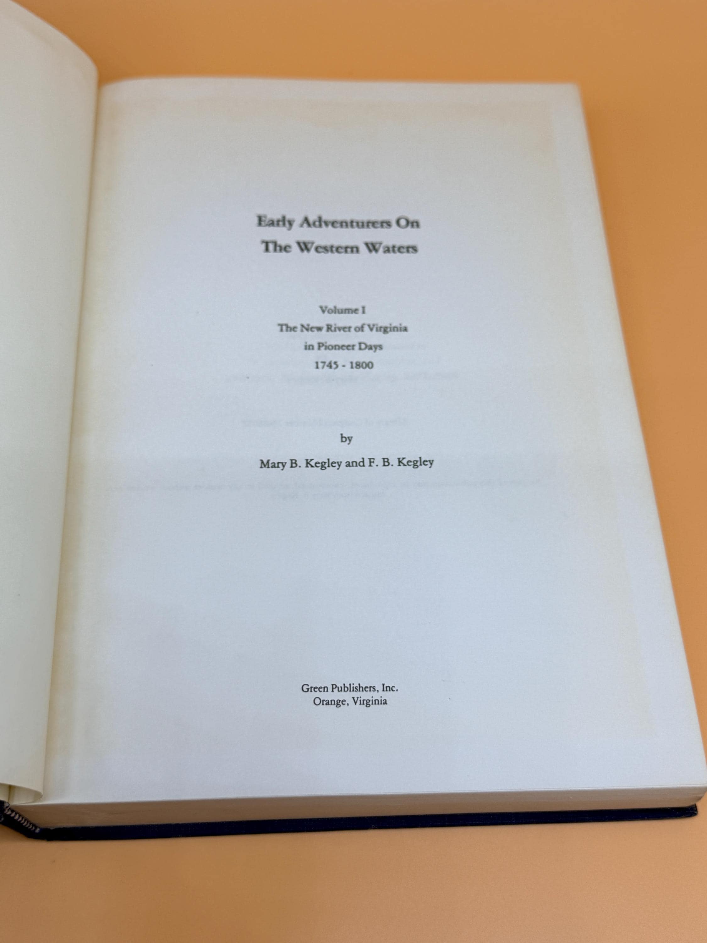 Early Adventures on the Western Waters by Mary B. Kegley and F.B. Kegley is subtitled The New River of Virginia in Pioneer Days 1745-1800. This is Volume One ONLY of the original 5 volume set. The series explored early pioneers and landowners in western Virginia. Sections include; The Beginning In Western Waters Competing Land Companies on the Frontier, French and Indian War in Southwest Virginia, The Hunters, The Church and Death on the Frontier, The New Counties, Beginnings of Montgomery Country, The Revolutionary War, Life on the Frontier, Cabins and Their Contents, and more.