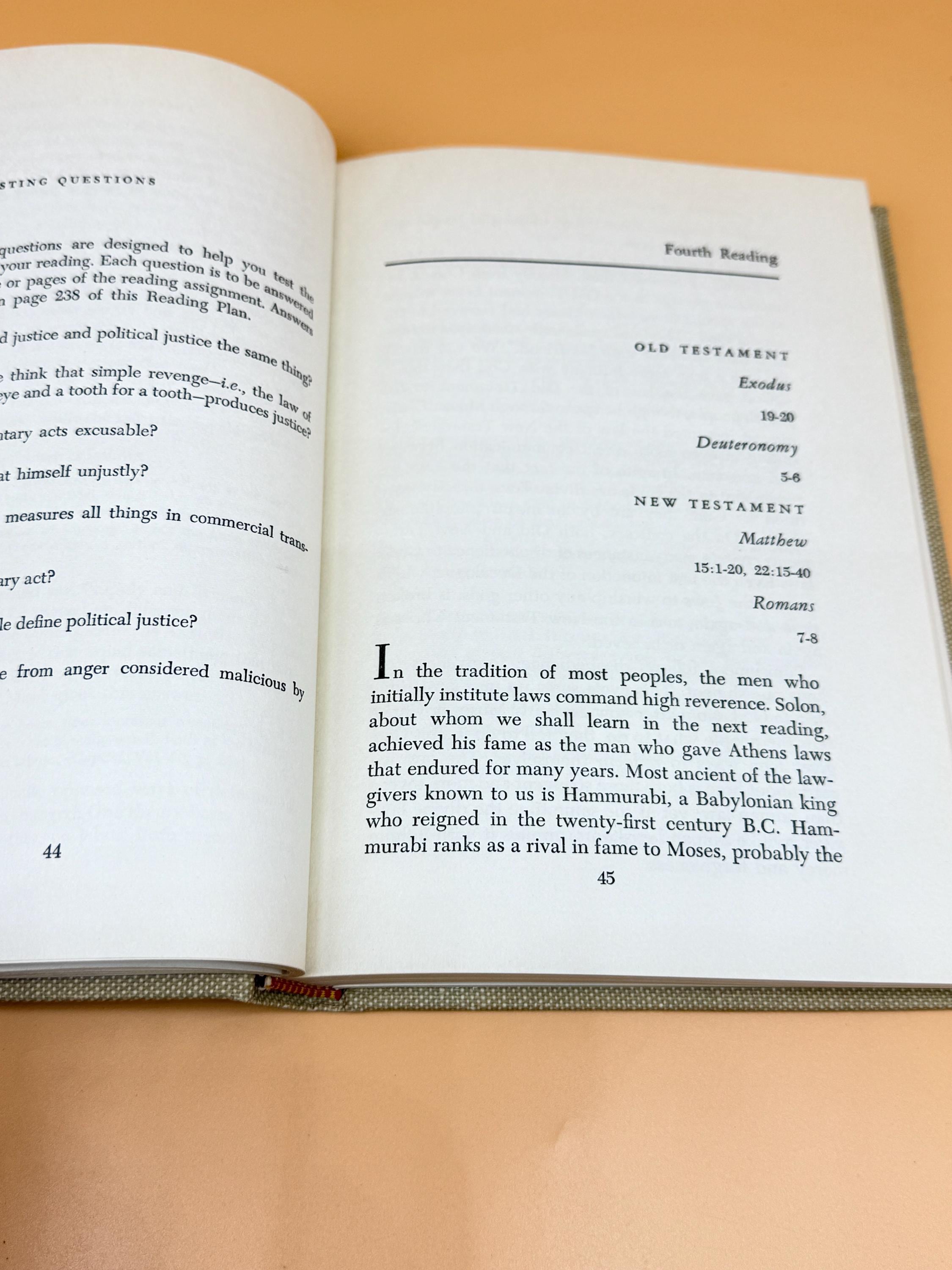 This is a very good hardcover. 1961 Great Ideas Program series from Britannica. This copy is very good inside and out. The inside pages are very good, clean and still crisp. The binding is tight and straight and bound w fine sewn binding, not glued, for durability. Hardcover boards are also very good with only a hint of shelf wear. Crown octavo book size or 5.5" x 8.5" with 250 pages.