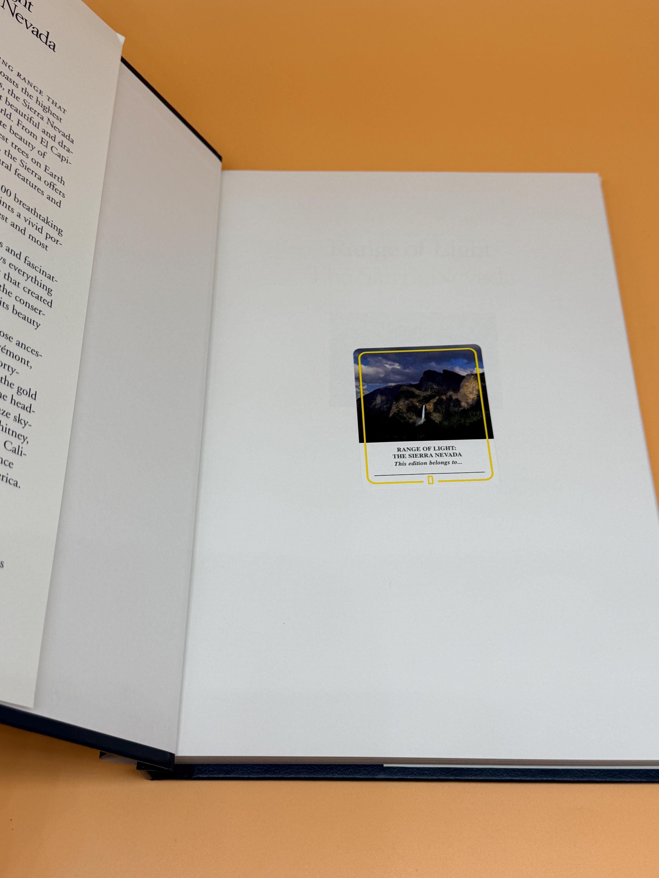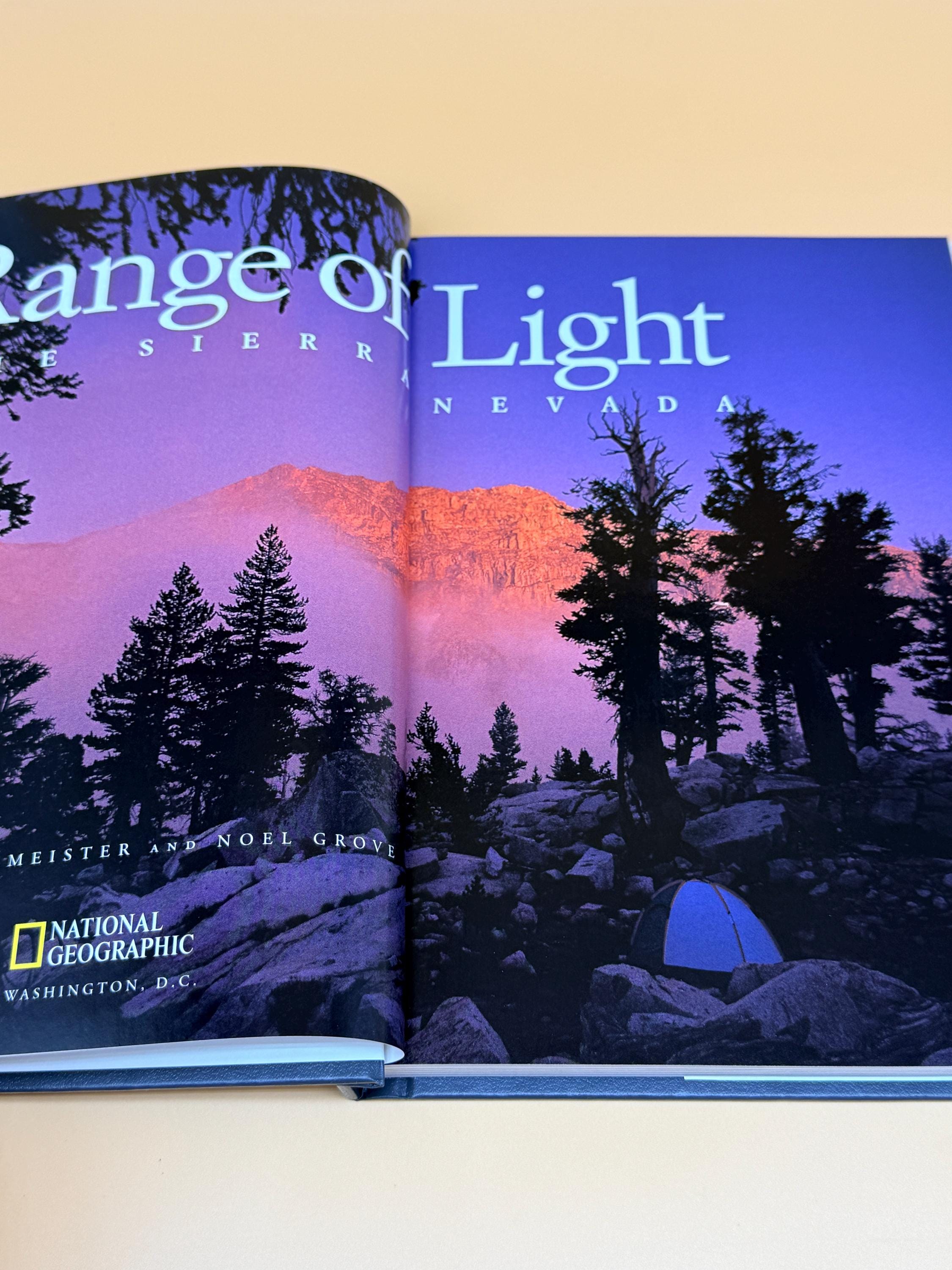 This is Range of Light The Sierra Nevada by National Geographic. The book paints a vivid portrait of on of the nations most remarkable regions. The detailed text is full of historical facts and characters. Native Americans and prospecting forty-niners come to life. Contents include; Most Divinely Beautiful, The Beckoning Foothills, Woods and Water, Jewels of the Sierra, The Eastern Escarpment, and The Future Sierra.