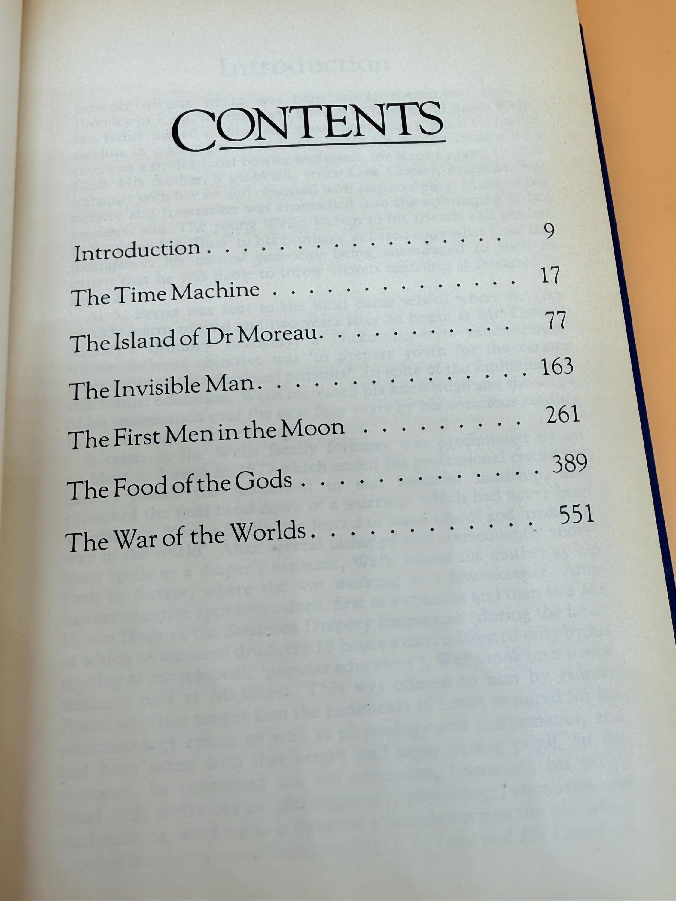H.G. Wells Masters Library from Octopus Books contains six of the authors best novels. This edition contains; The Time Machine, The Island of Dr Moreau, The Invisible Man, The First Men in The Moon, The Food of The Gods, and The War of The Worlds.