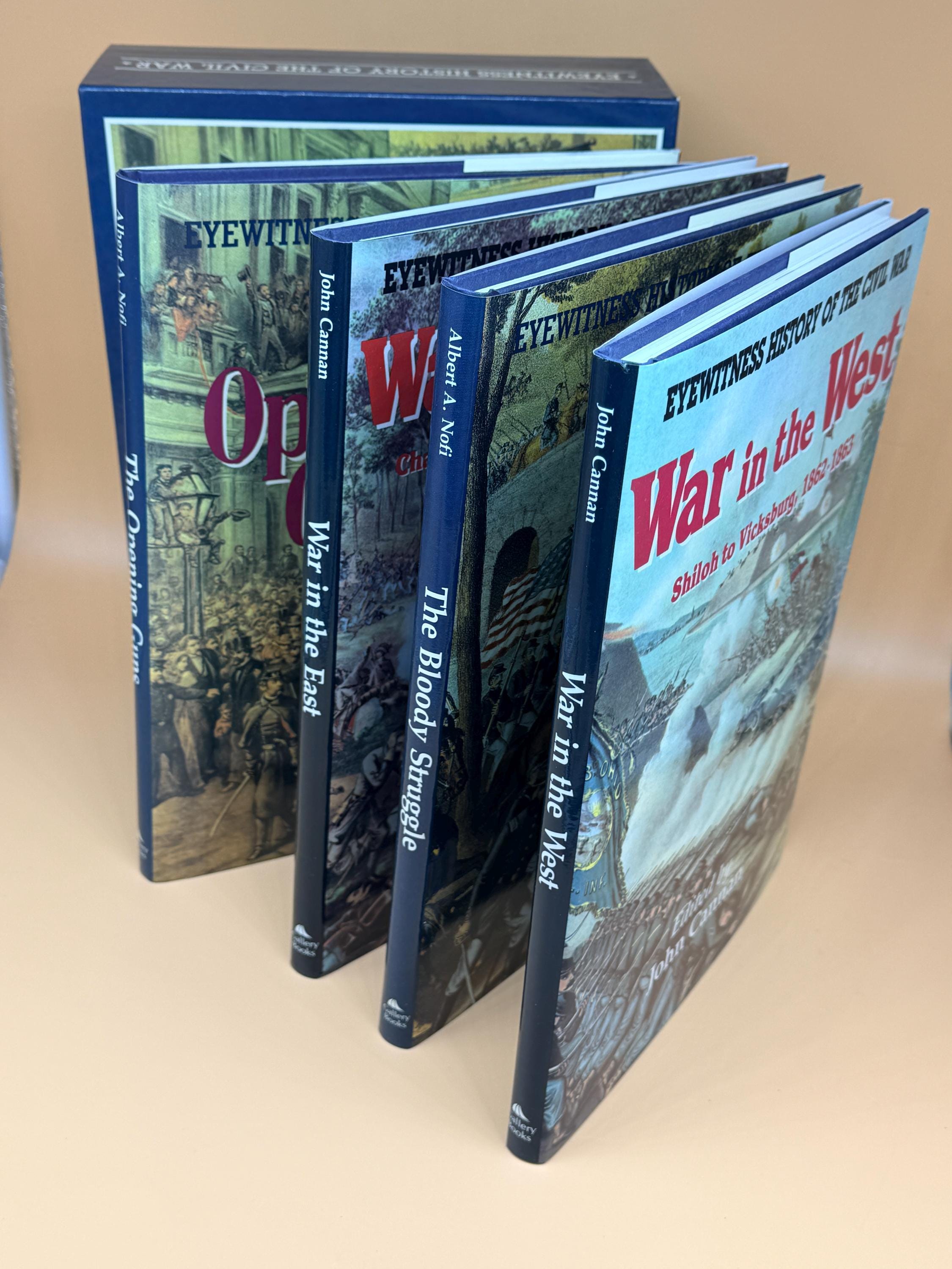Eyewitness History of The Civil War contains four volumes that give a detailed and eyewitness narrative of the Civil War. Each volume is extensively illustrated with black and white sketches and vintage photos. Titles in the set are: Opening Guns Fort Sumter to Bull Run 1861, The Bloody Struggle The Civil War in the East 1862, War in the West Shiloh to Vicksburg 1862-1863, and War in The East Chancellorsville to Gettysburg 1863.