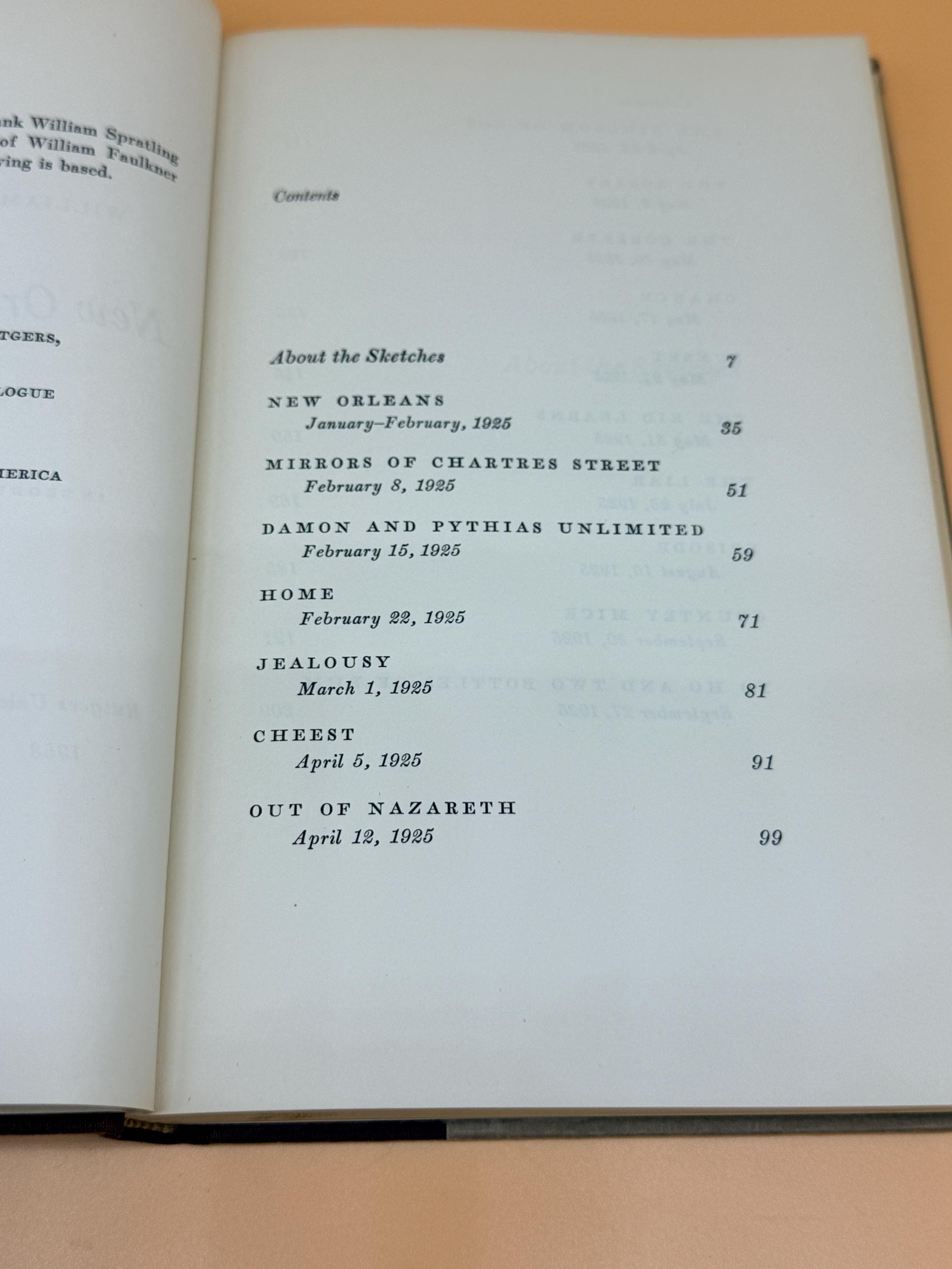 Originally published in New Orleans newspapers in 1925, New Orleans Sketches is a collection of 11 short stories by William Faulkner. The sketches, edited by Carvel Collins, were compiled and published as a book in 1958, offering insight about the developing author during his time in the French Quarter.