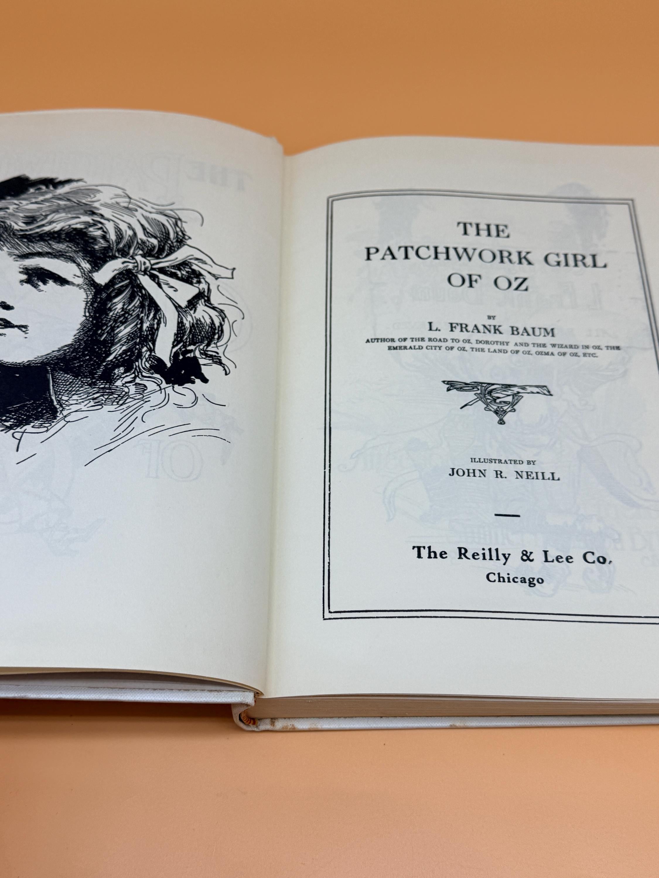 The Wizard of Oz by L. Frank Baum was originally published in 1900. The rest of the Oz tales were written by Baum between 1900 and 1920. Many editions have been published from fine bindings to basic reprints to paperbacks and special editions. This copy is from the White Spine or White Cover series. The White Spine covers were published in the 1960's by Reilly Lee Publishing. They featured 4 color illustrations front and many of the original illustrations
