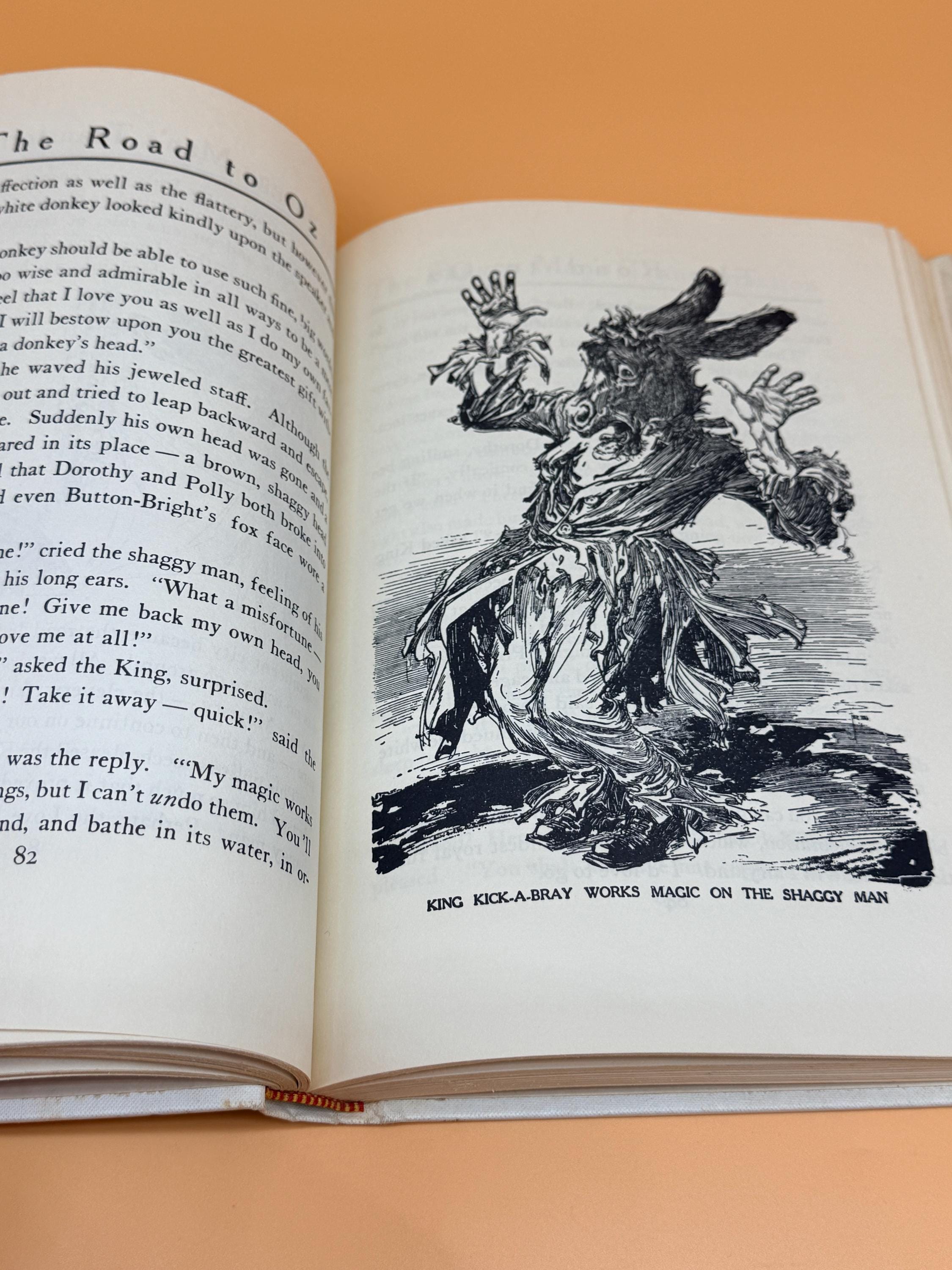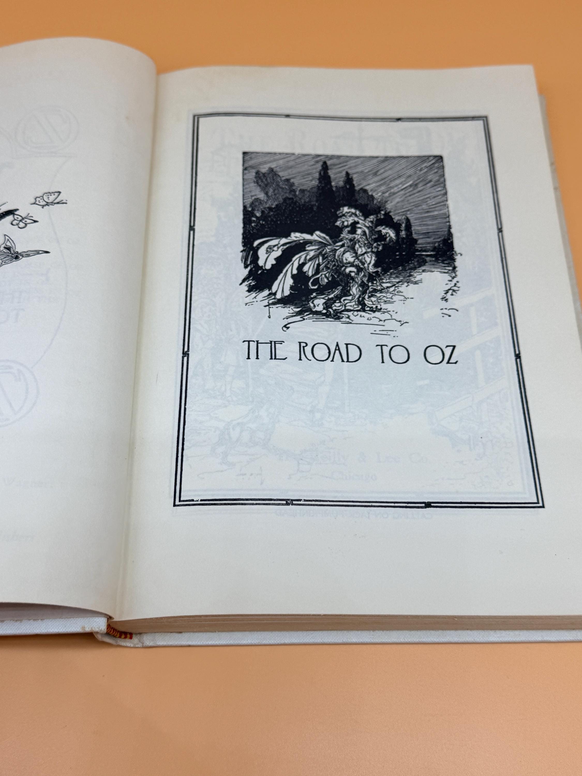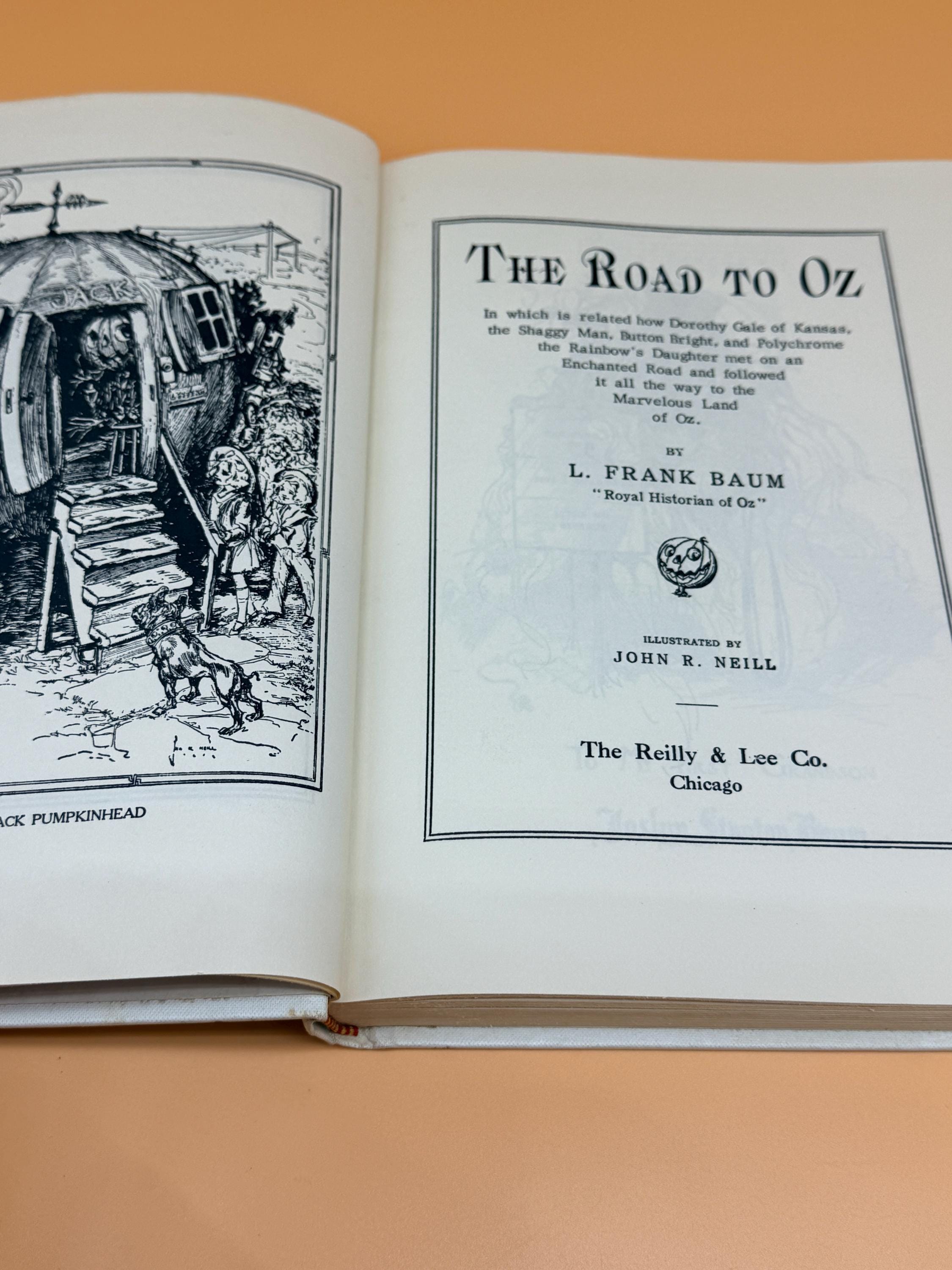 The Wizard of Oz by L. Frank Baum was originally published in 1900. The rest of the Oz tales were written by Baum between 1900 and 1920. Many editions have been published from fine bindings to basic reprints to paperbacks and special editions. This copy is from the White Spine or White Cover series. The White Spine covers were published in the 1960's by Reilly Lee Publishing. They featured 4 color illustrations front and many of the original illustrations