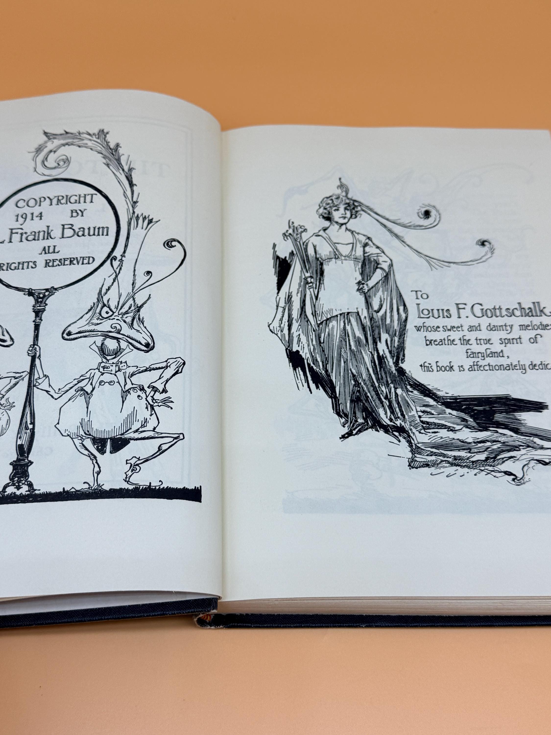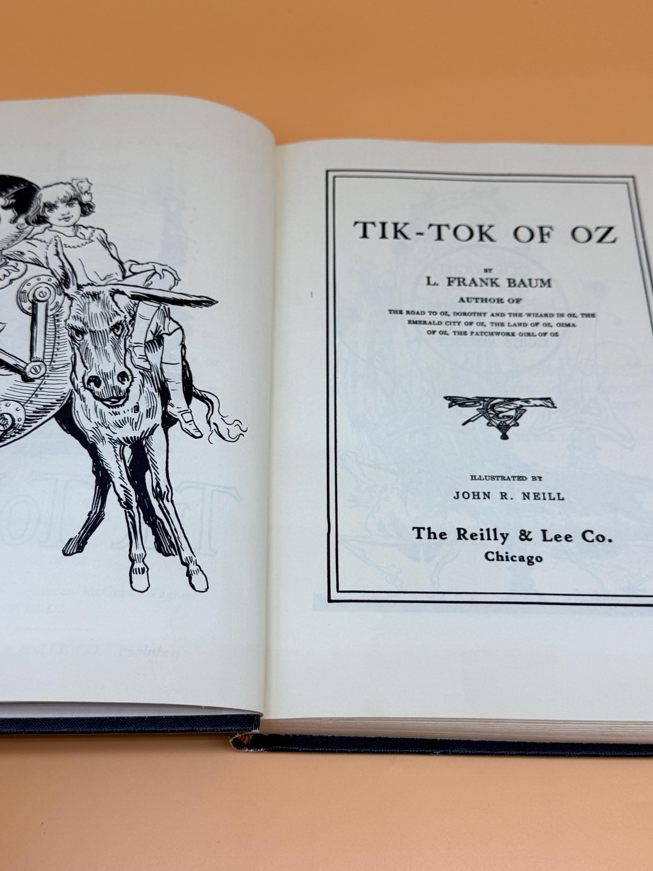 The Wizard of Oz by L. Frank Baum was originally published in 1900. The rest of the Oz tales were written by Baum between 1900 and 1920. Many editions have been published from fine bindings to basic reprints to paperbacks and special editions. This copy is from the White Spine or White Cover series. The White Spine covers were published in the 1960's by Reilly Lee Publishing. They featured 4 color illustrations front and many of the original illustrations