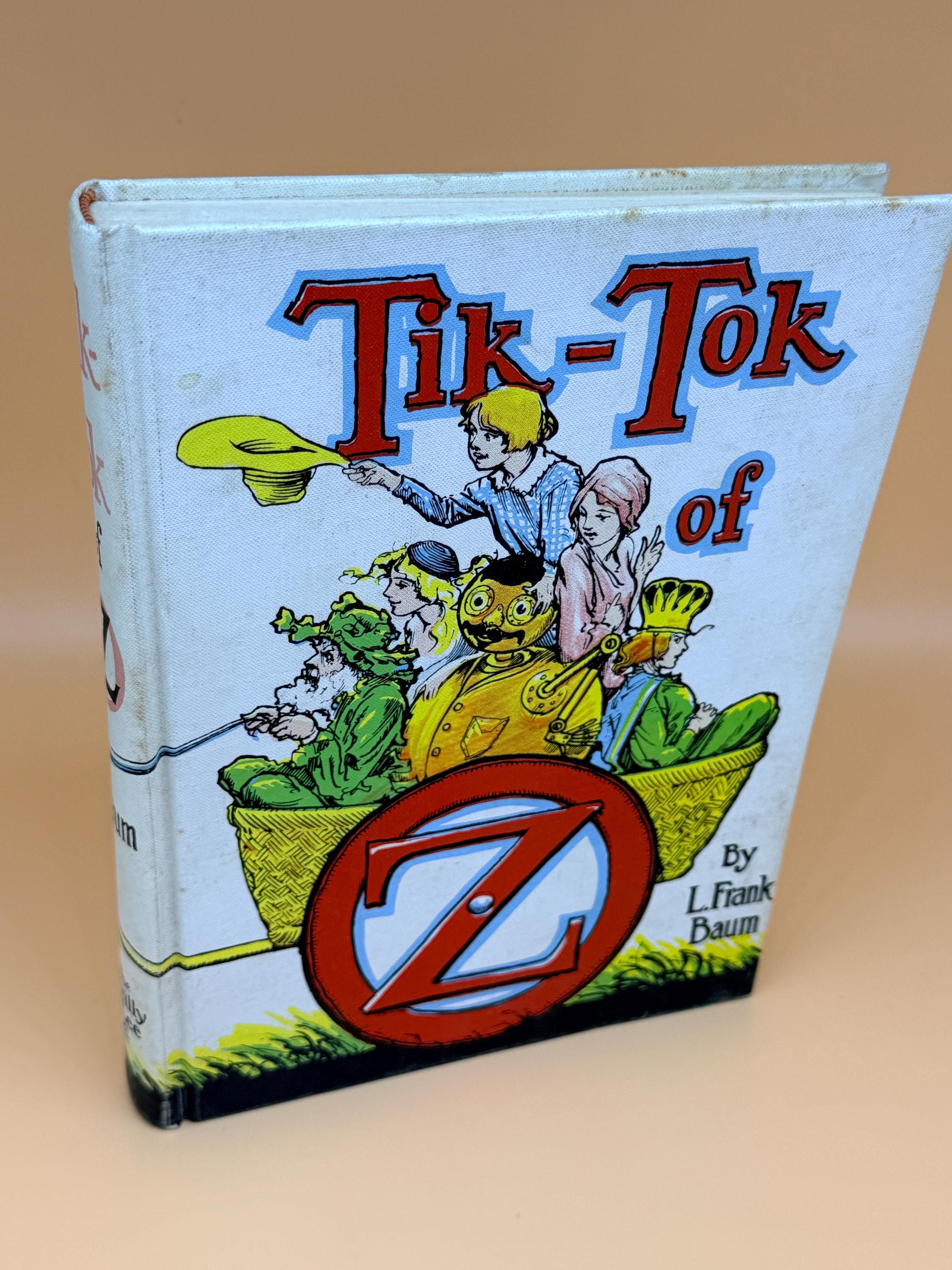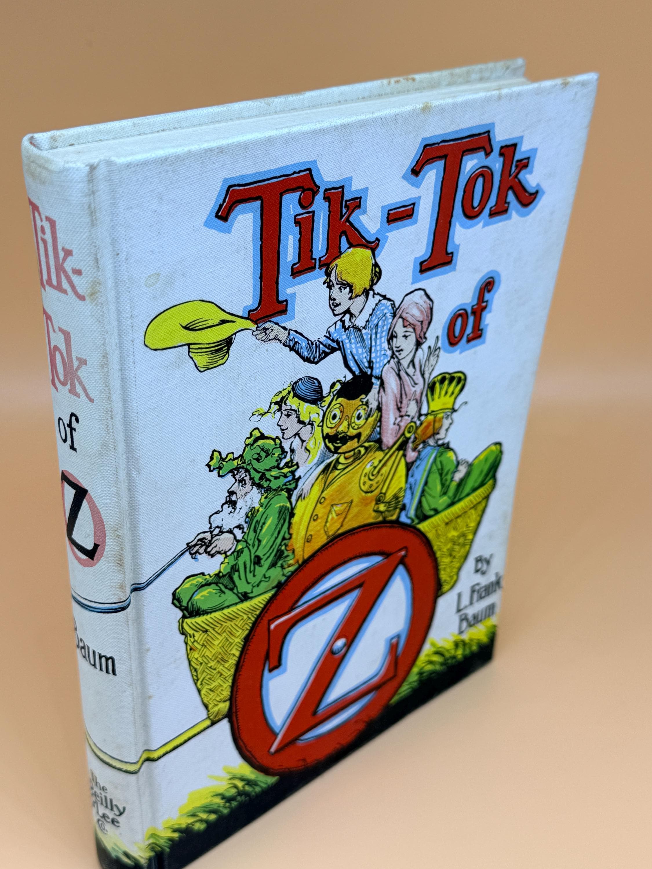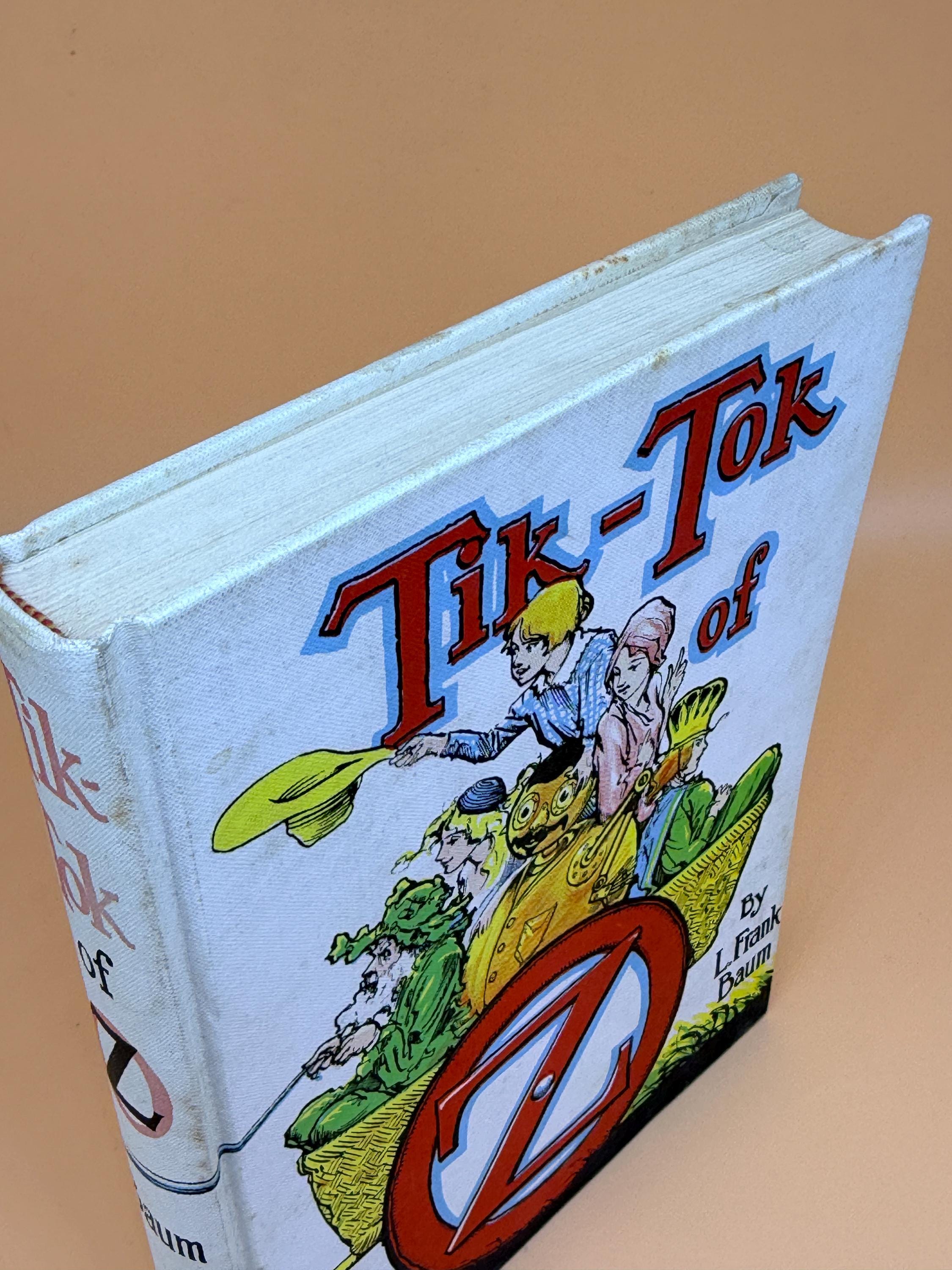 This is a very good hardcover, one of the White Spine editions, with minor caveats. See continued description for White Spine Oz books history. This copy is very good inside and out BUT there is foxing to hardcover boards as shown in photos. The inside pages are very good with the foxing being localized to outside boards. This can occur as the boards are exposed to variations in humidity and general exposure to environment. Usually because of poorer quality white paper with no acid neutral qualities. The inside pages of this copy are actually very good and clean. The binding is tight and straight. Medium octavo book size or 7" x 9".