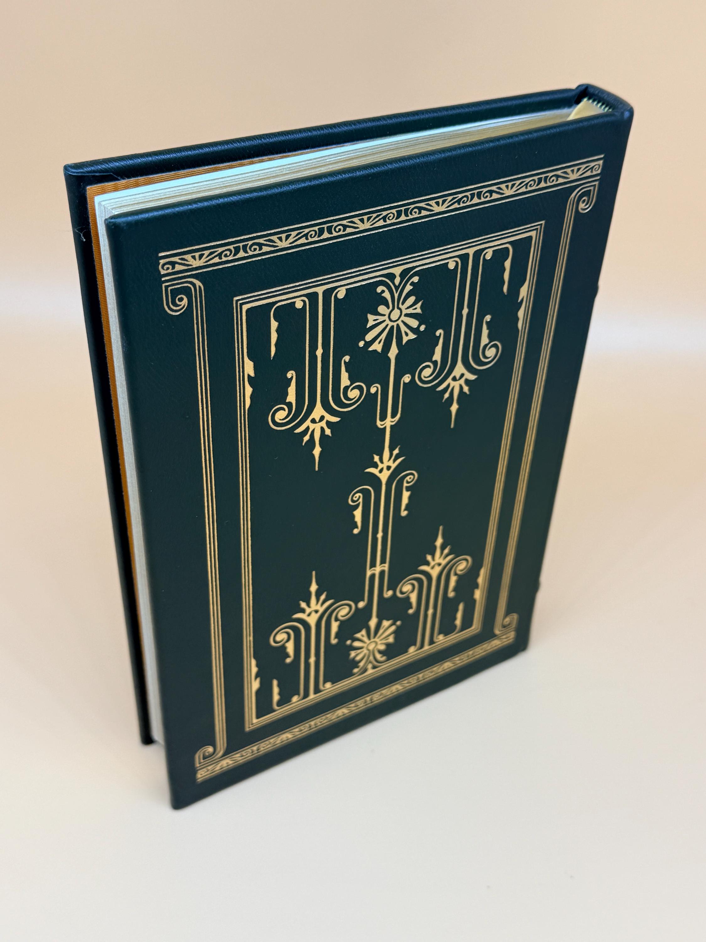This is a near fine (almost like new) leather-bound hardcover. 1977 Franklin Library First Edition, First Edition Society Limited Edition. This copy is still crisp and clean inside and out. The inside pages are crisp and clean. Bound in green leather, the hardcover boards are also near fine with barely a hint of shelf wear. Binding tight and straight. Fine binding appointments as expected from Franklin Library include; Smyth sewn fine binding, hubbed spine, silk moire fabric endpapers, outer page edges tipped in gold, and attached satin bookmark. Medium octavo book size or 6.5" x 9.5" with 170 pages.