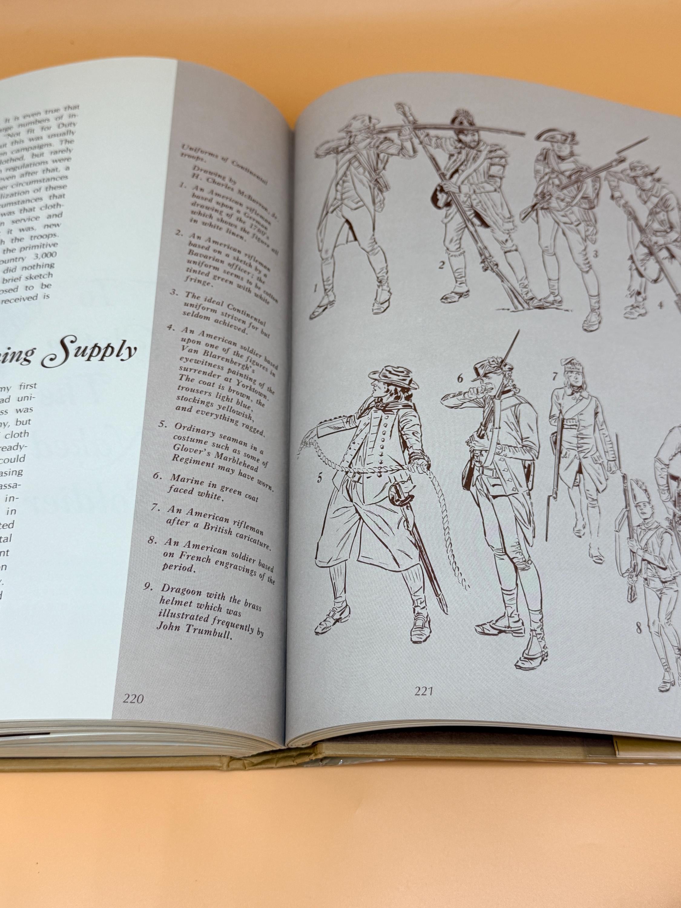 The Book of the Continental Soldier by Harold L. Peterson is subtitled Being a Complete Account of the Uniforms, Weapons, ad Equipment With Which He Lived and Fought. This is a side of the American Revolution not always seen. It details the equipment, weapons, accessories and more needed by Continental Soldiers. From cooking and eating utensils, to tents and musical instruments, to the weapons-guns-bullets, everything is detailed in text and drawings. Medical surgical supplies along with intimate physical things is also detailed. At the time, the book was recommended as a standard work in the field of military history by the Company of Military Historians.