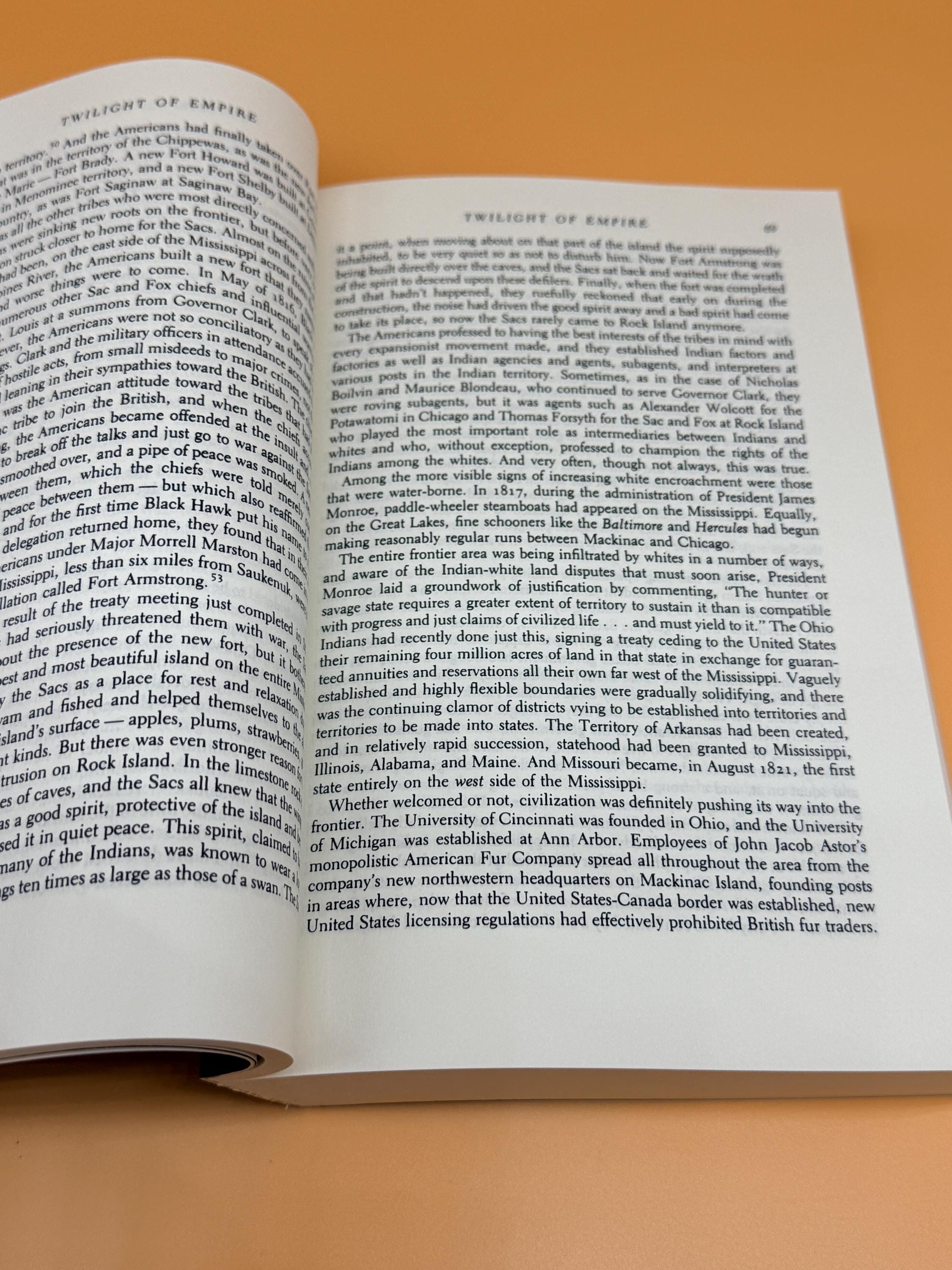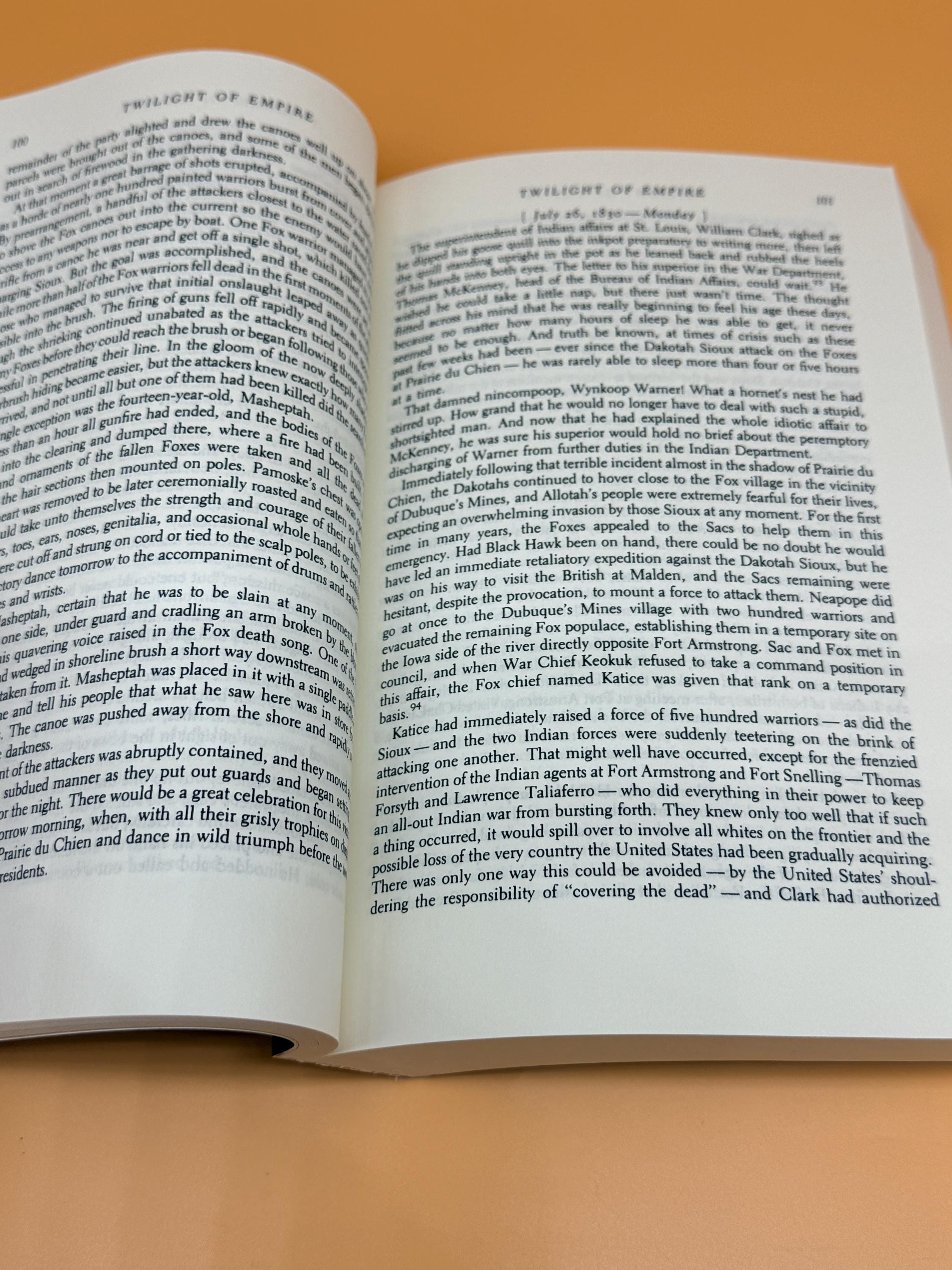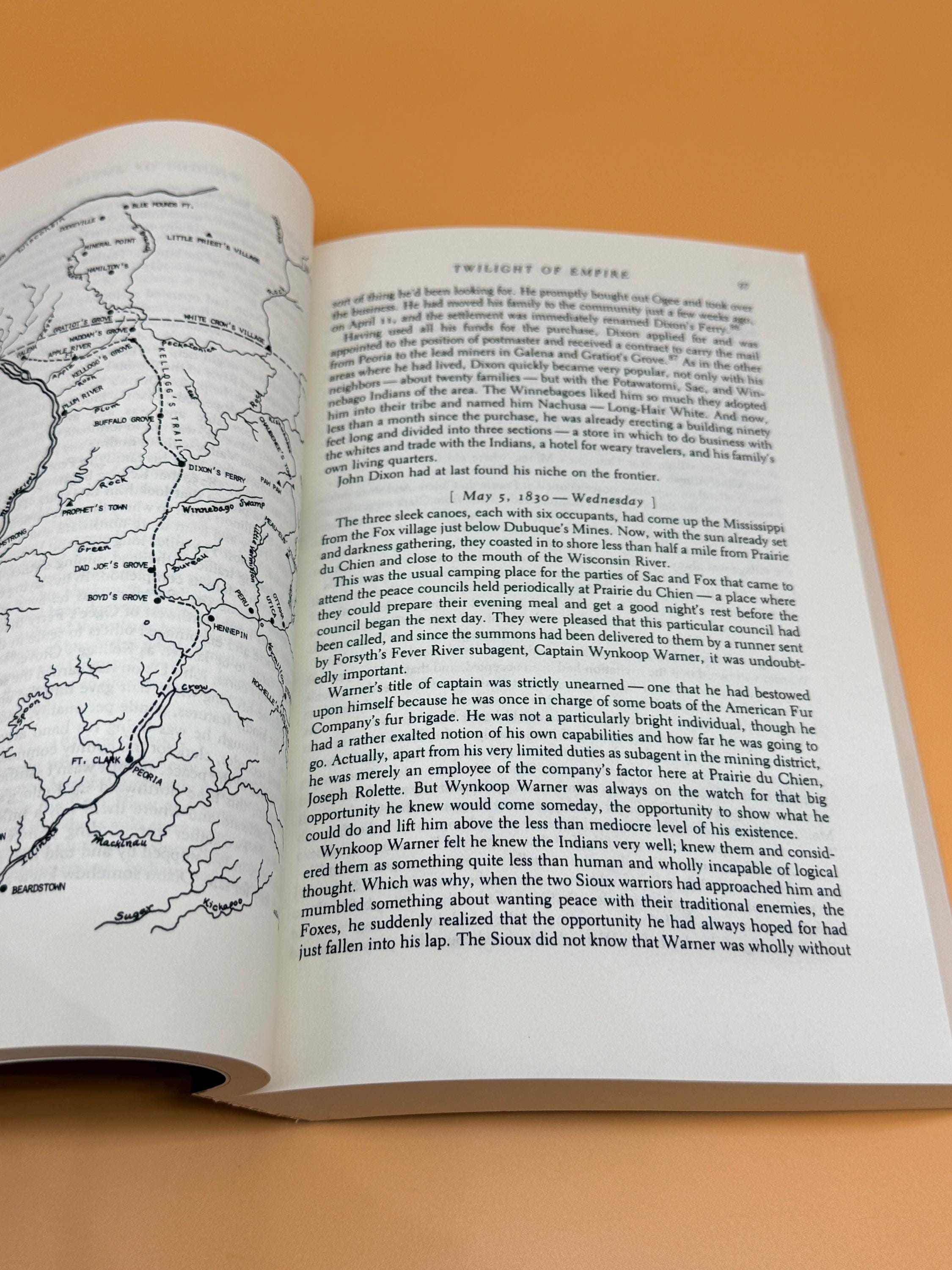 Twilight of Empire a Narrative by Allan Eckert is considered narrative historical fiction or a non-fiction novels. It was meticulously researched and based on real people and events during the Black Hawk War. The book creates dialogue and scenes that create a continuous narrative rather than a strict academic history. It is the sixth book in his acclaimed "The Winning of America" series. It continues the tale of American westward expansion and the warfare, purchases and treaties through which is was achieved. The book picks up where Gateway to Empire left off and takes the readers to the history of the Northwest Territories and The Louisiana Purchase while relating the dramatic events composing the Black Hawk War of 1832.
