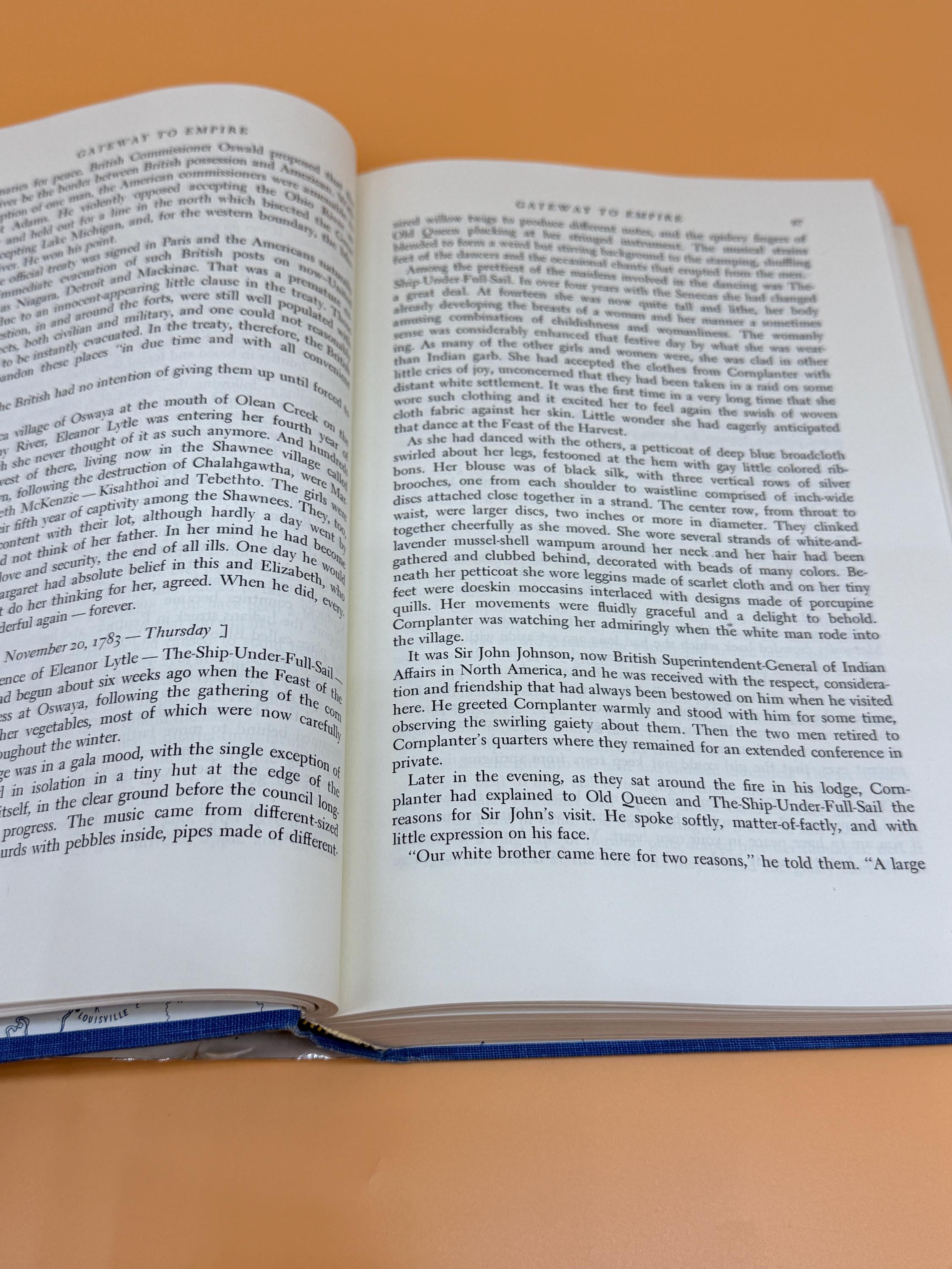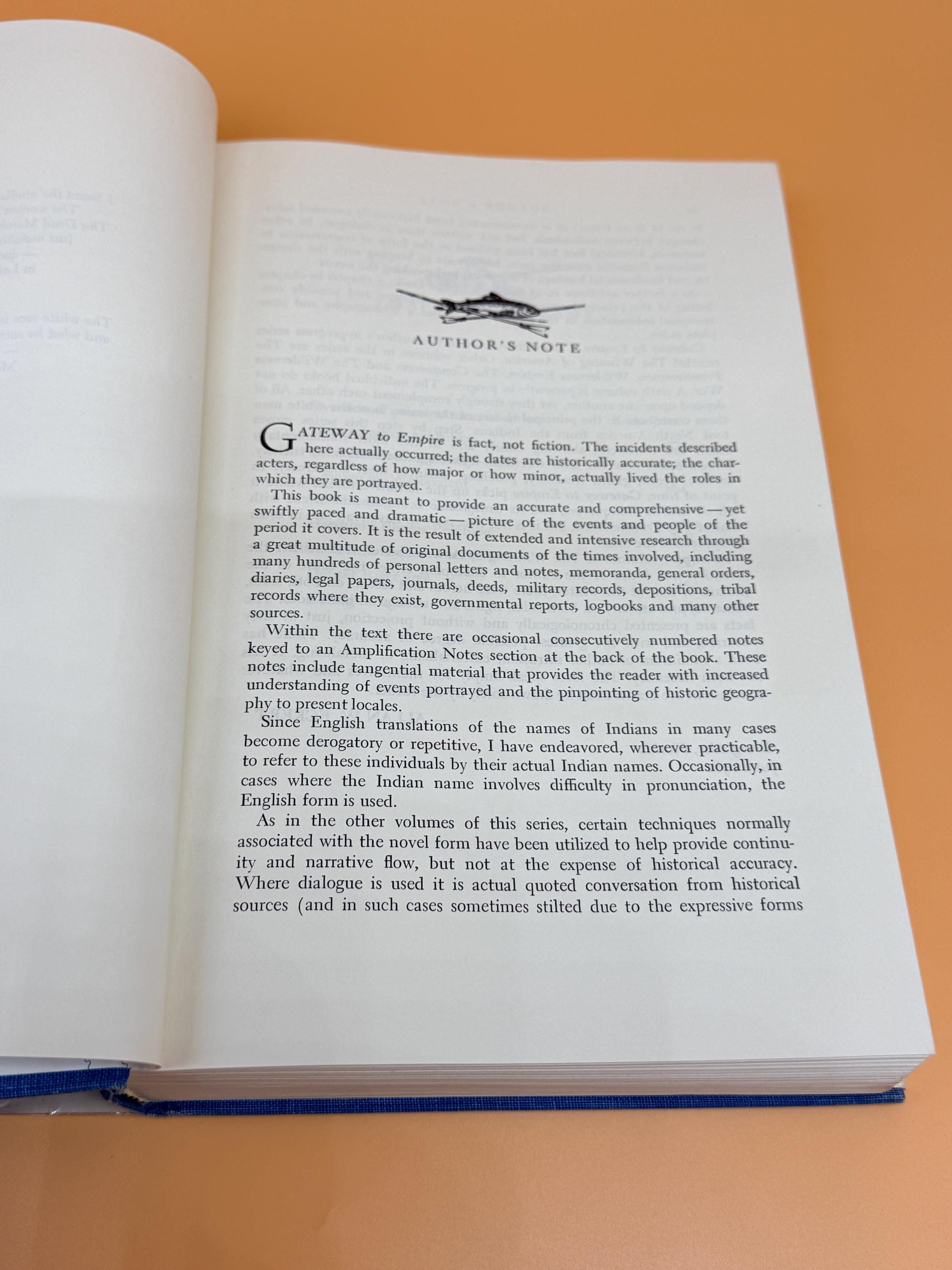 Gateway to Empire a Narrative by Allan Eckert is considered narrative historical fiction or a non-fiction novels. It was meticulously researched and based on real people and events during the time of relentless and tragic wresting of the North American continent from the Indians. The book creates dialogue and scenes that create a continuous narrative rather than a strict academic history. It is the fifth volume in the author's The Winning of America series.
