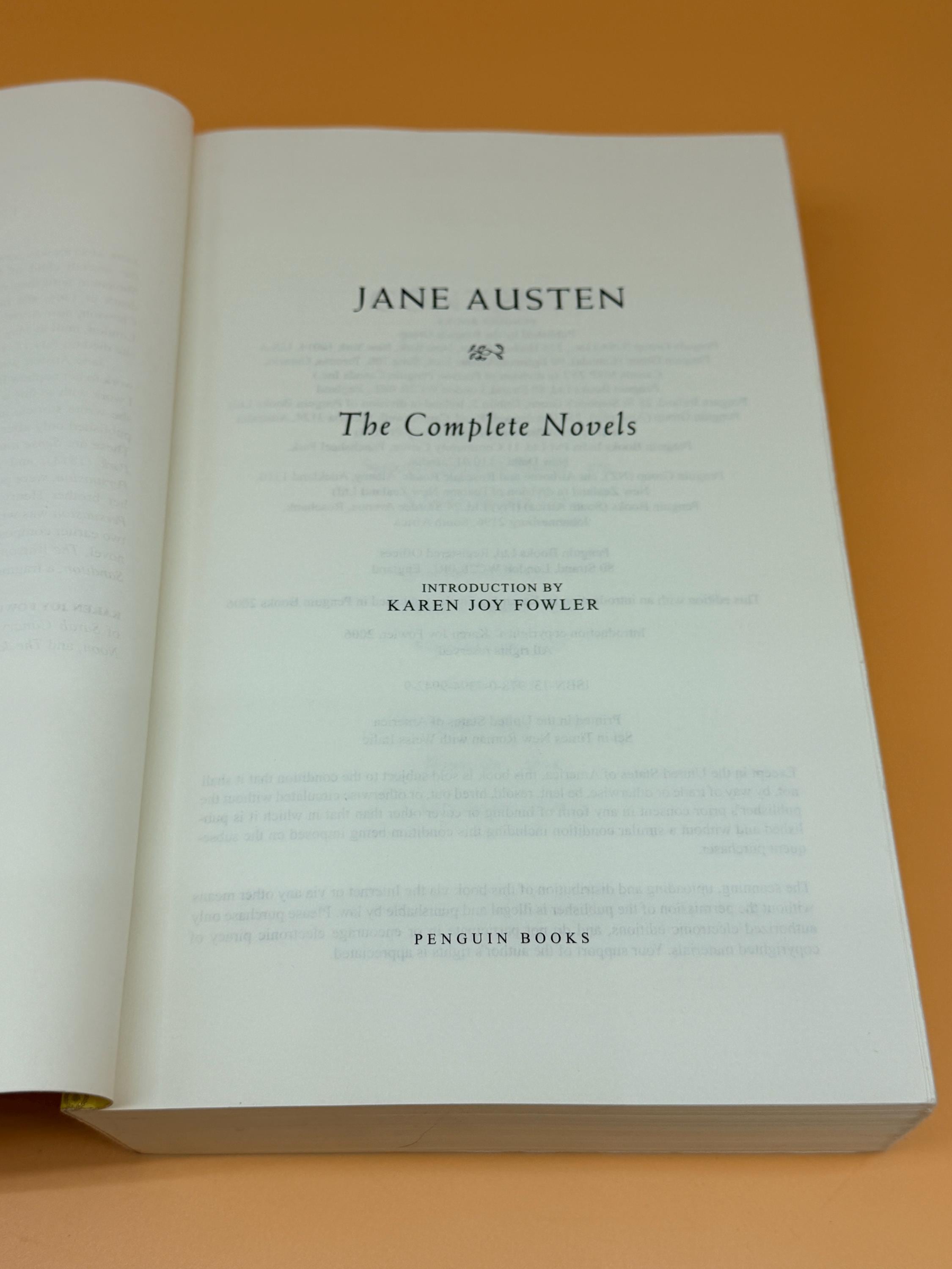 This edition of Jane Austen The Complete Novels features and Intro by Karen Joy Fowler. This is the seven novels, complete and unabridged. There is suggestions for further reading and notes on the texts along with the Intro. Novels include; Sense and Sensibility, Pride and Prejudice, Mansfield Park, Emma, Northanger Abbey, Persuasion and Lady Susan.