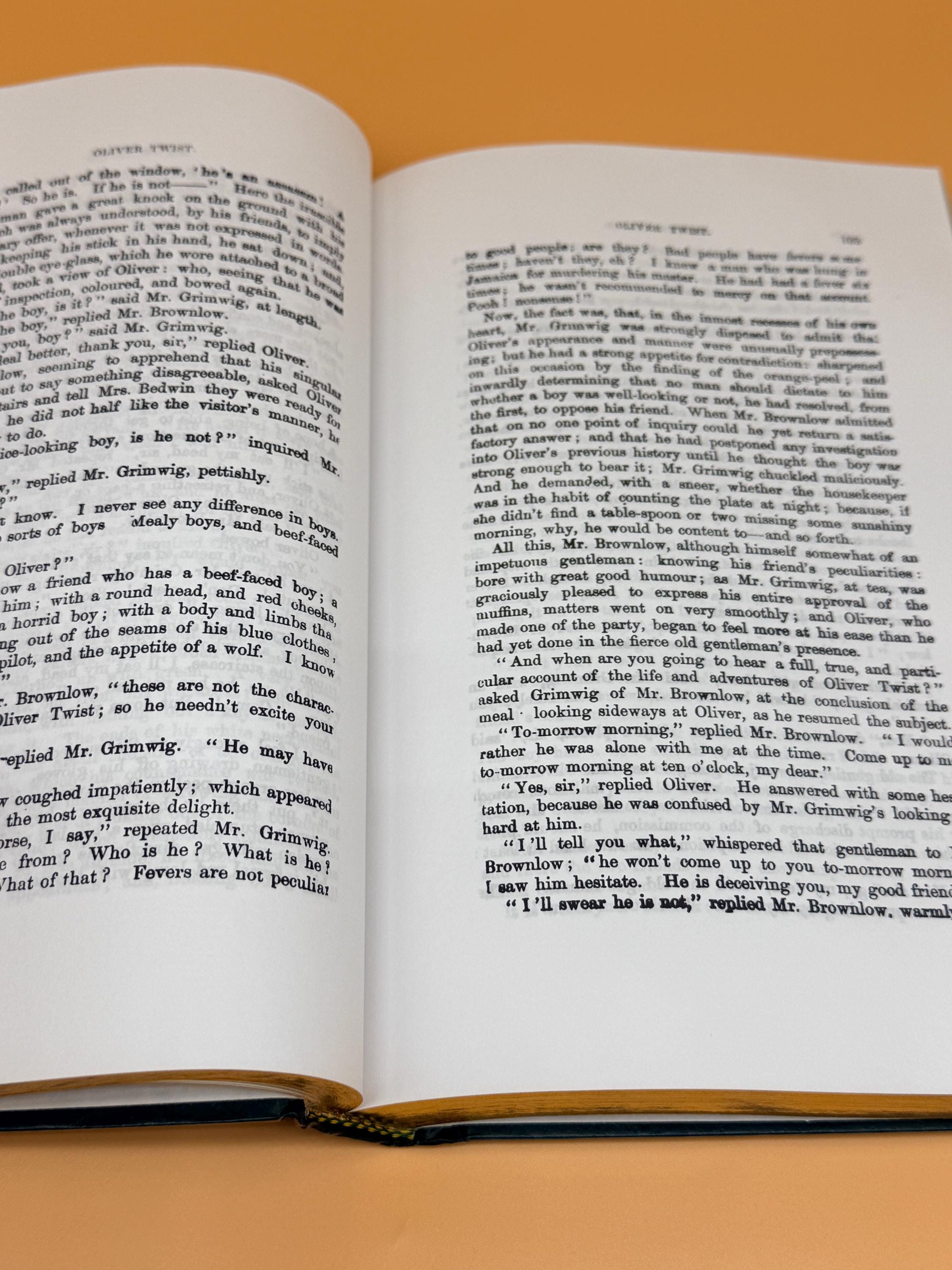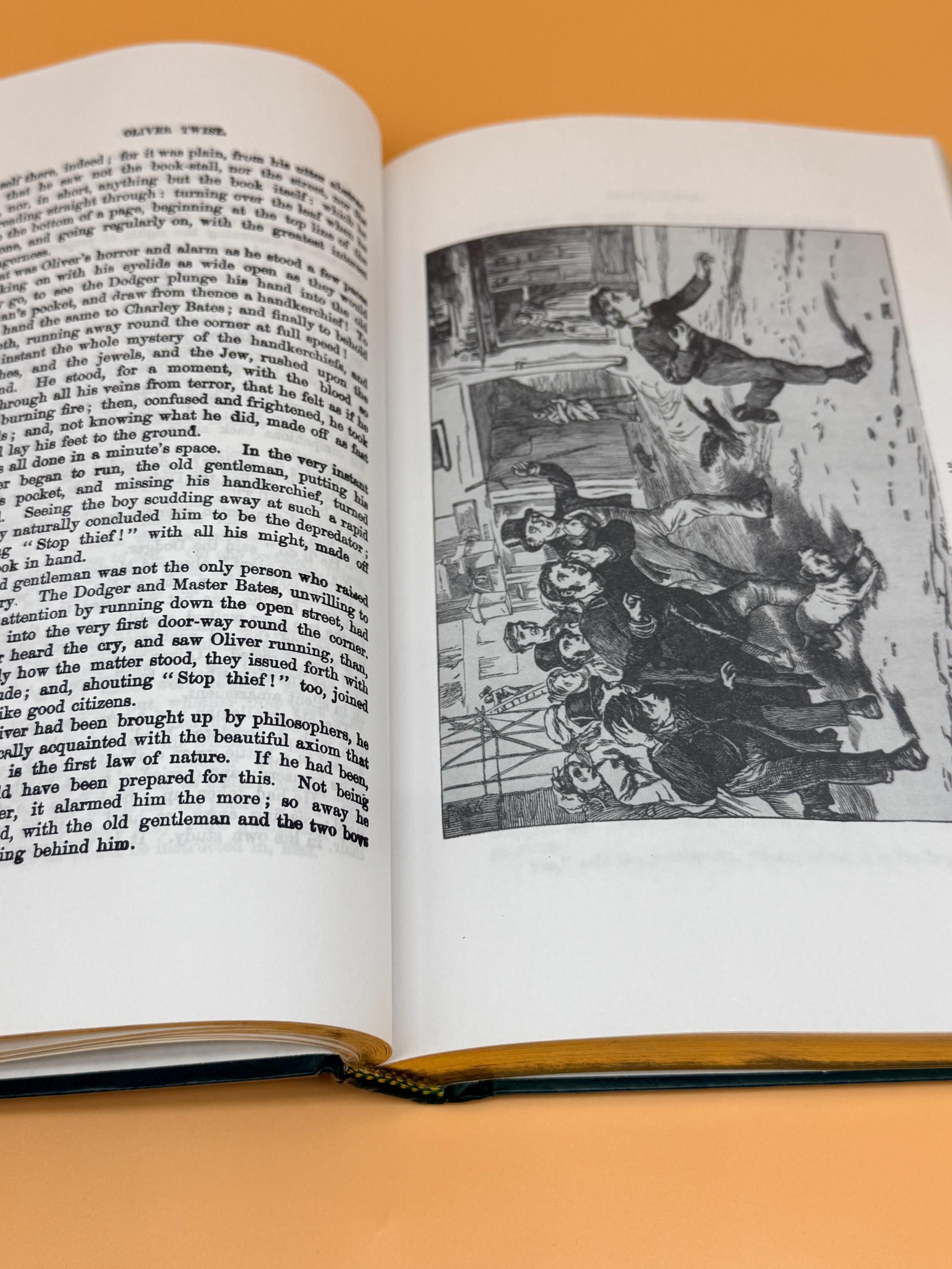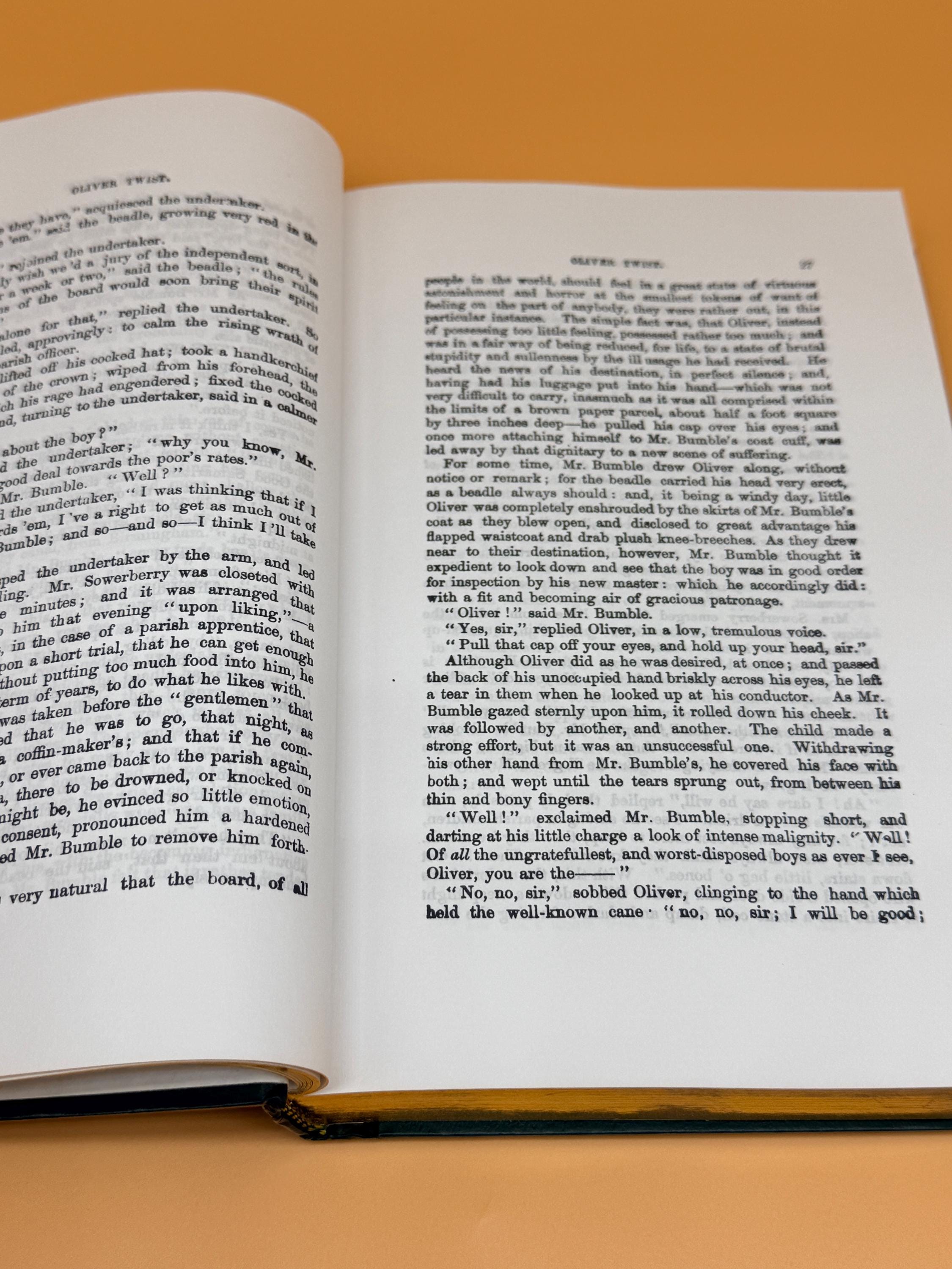 This is Charles Dickens classic story, Oliver Twist. The novel follows Oliver, an orphan, and his journey from a harsh workhouse to the criminal underworld of London. The book contains themes of social culture and social status, exposing the cruelty of poverty and social injustice in 19th-century England