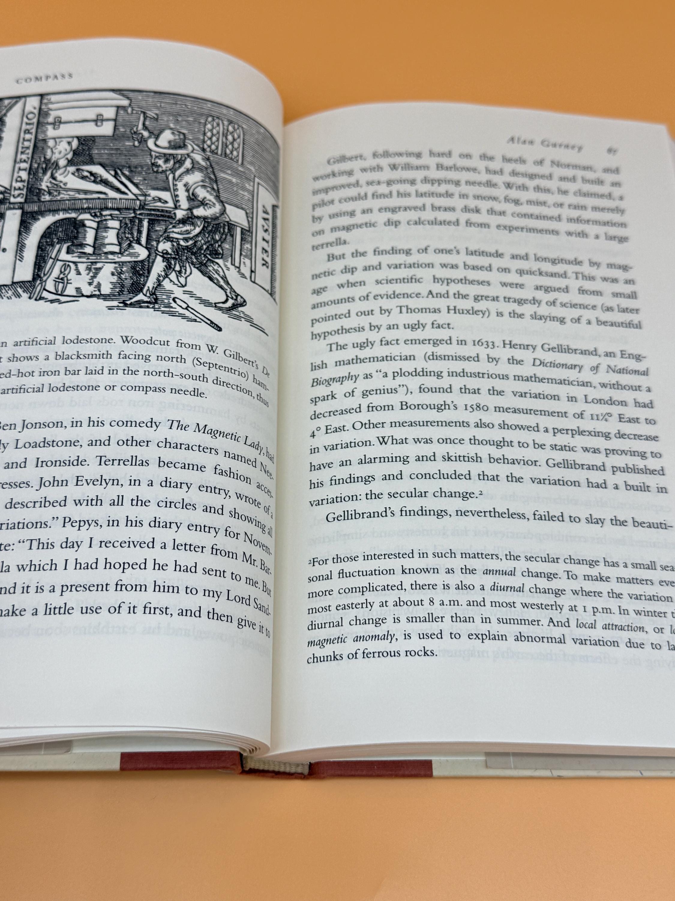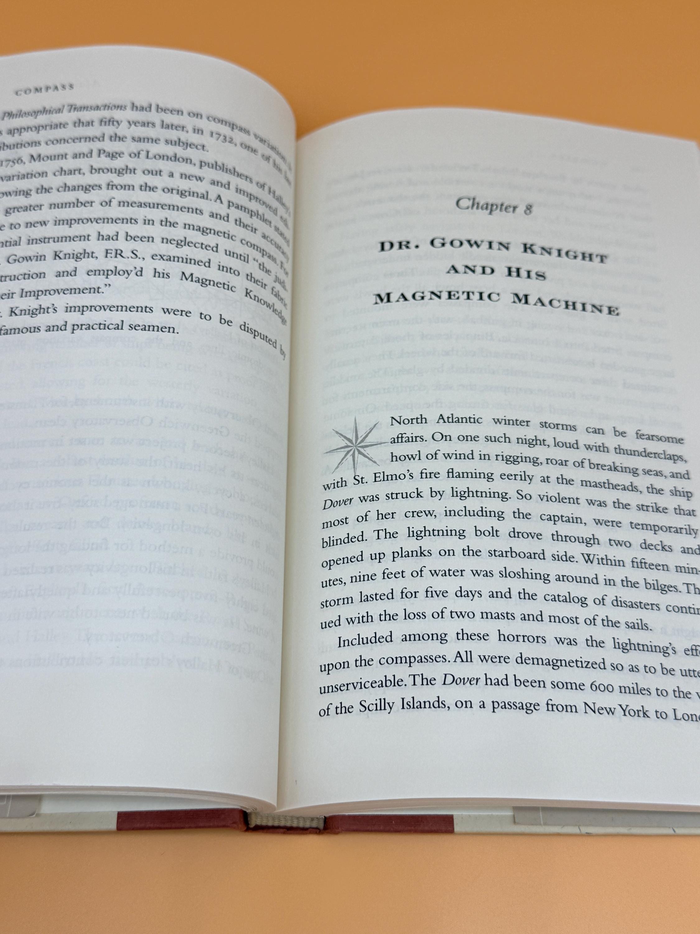 Compass A Story of Exploration and Innovation by Alan Gurney is organized in a loose chronological order with detours for particularly significant people and topics. The authors begins with a hair-raising maritime tale in which the yachts high tech navigation equipment failed and left the crew to rely on the stars. Next, he steps back several centuries to explain how seafaring exploration got to that point. Overall the book is a rich history of the most important navigational device of all time - the magnetic compass.