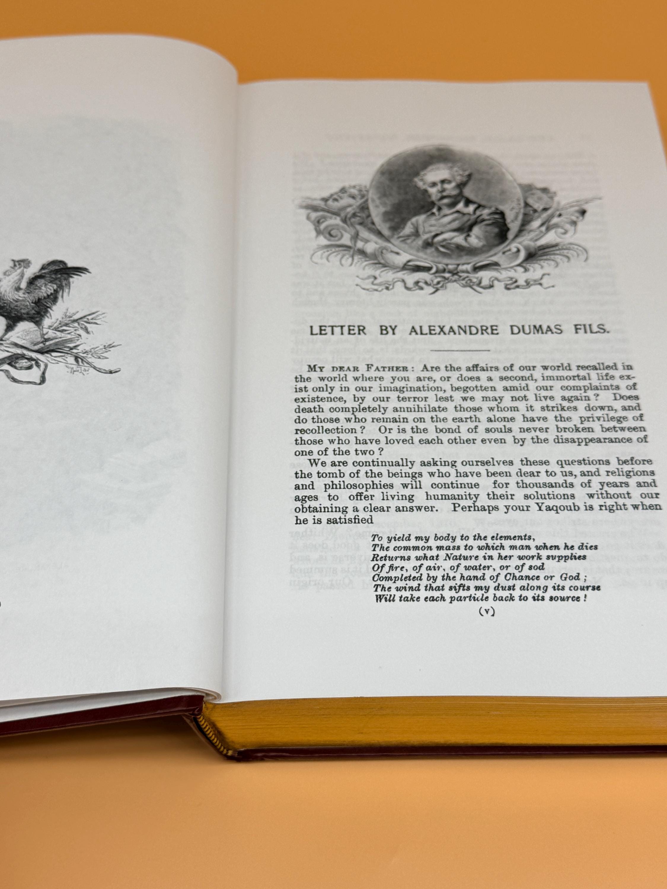 This is a near fine (almost like new) hardcover bound in bonded leather with additional fine binding appointments. 1999 Trident Press reprinted from the 1879 edition. This copy is still crisp and clean inside and out. The inside pages are crisp and clean. The binding is tight and straight and features fine sewn (not glued) binding for durability and aesthetics. The hardcover boards feature illustrations and gold design front and are bound in maroon bonded leather with padded cover. All three outer page edges tipped in gold. Medium octavo books size or 6.5" x 9.5" with 355 pages.