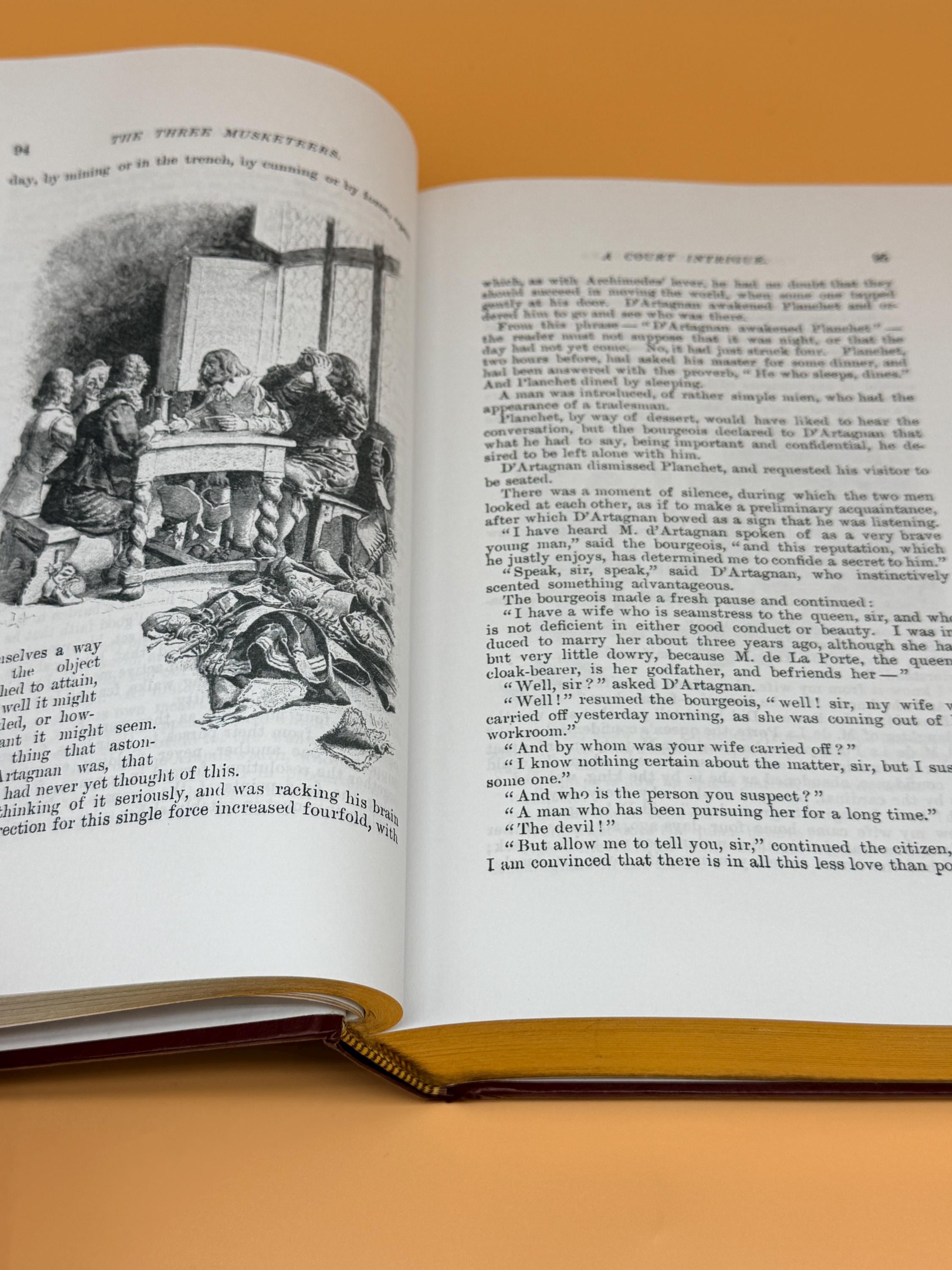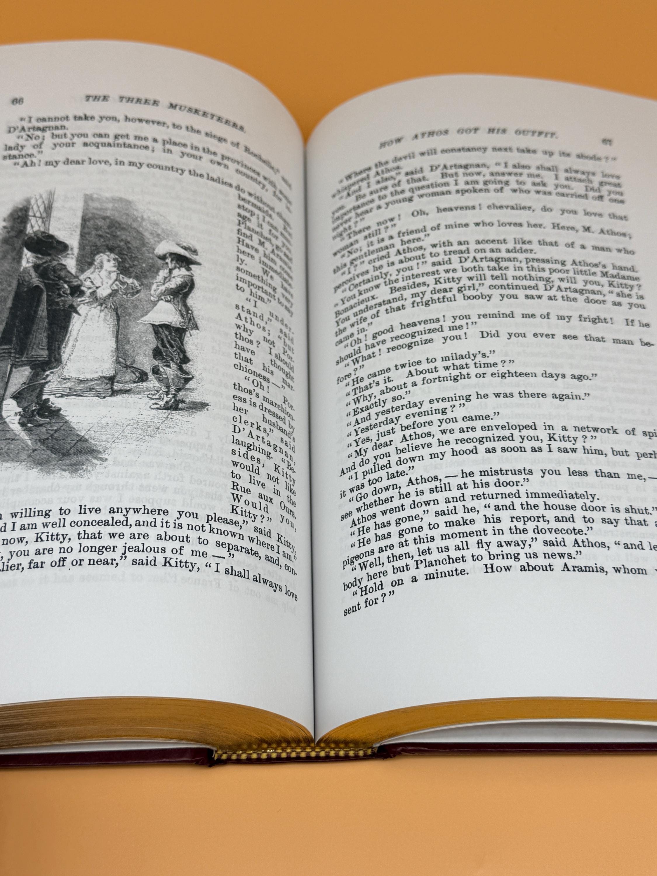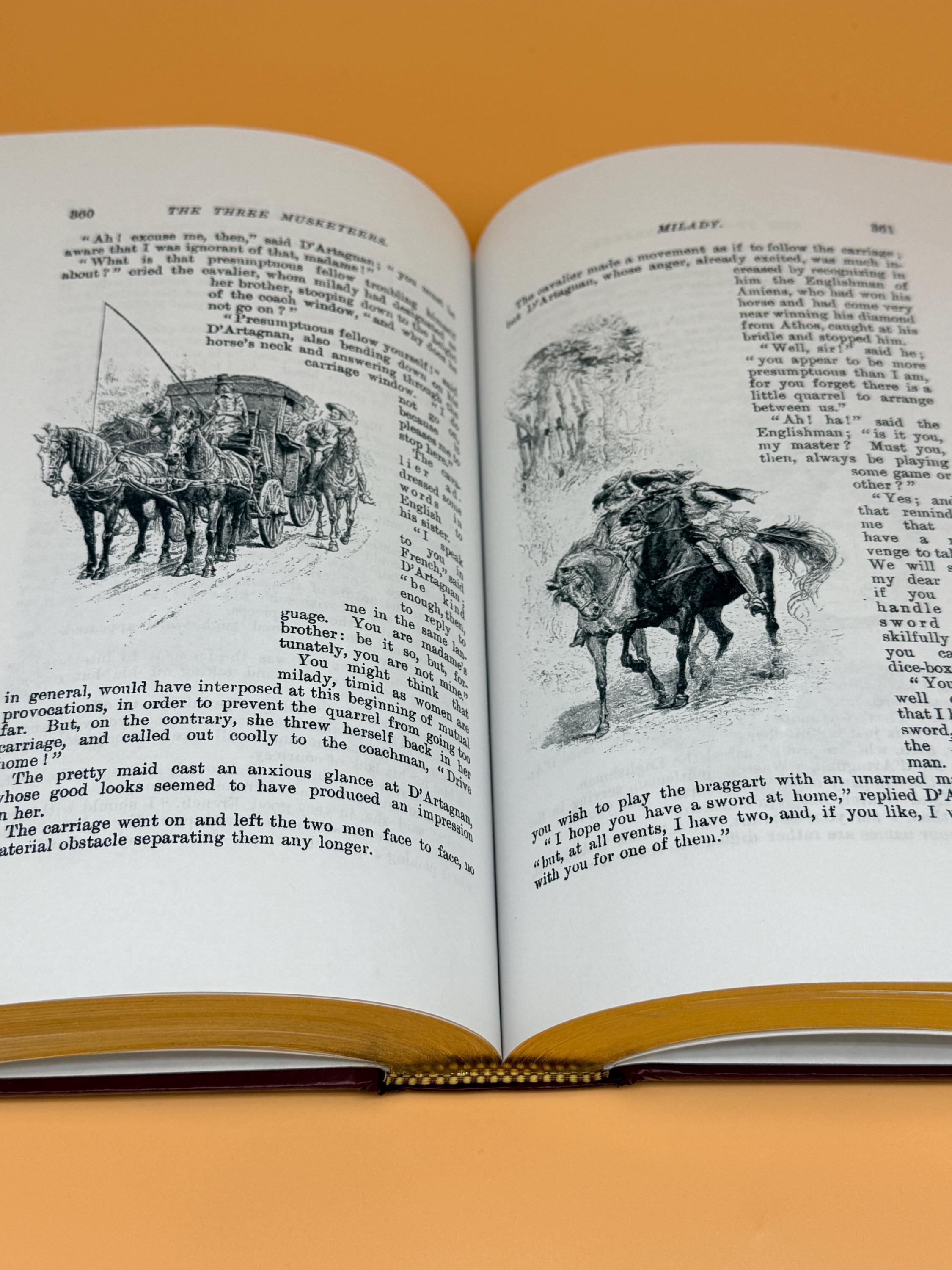 This is the classic tale of the Three Musketeers by Alexander Dumas. This edition has been reprinted from the original 1879 text. It is finely illustrated throughout with black and white sketches by Maurice Leloir including Dumas illustration frontispiece.
