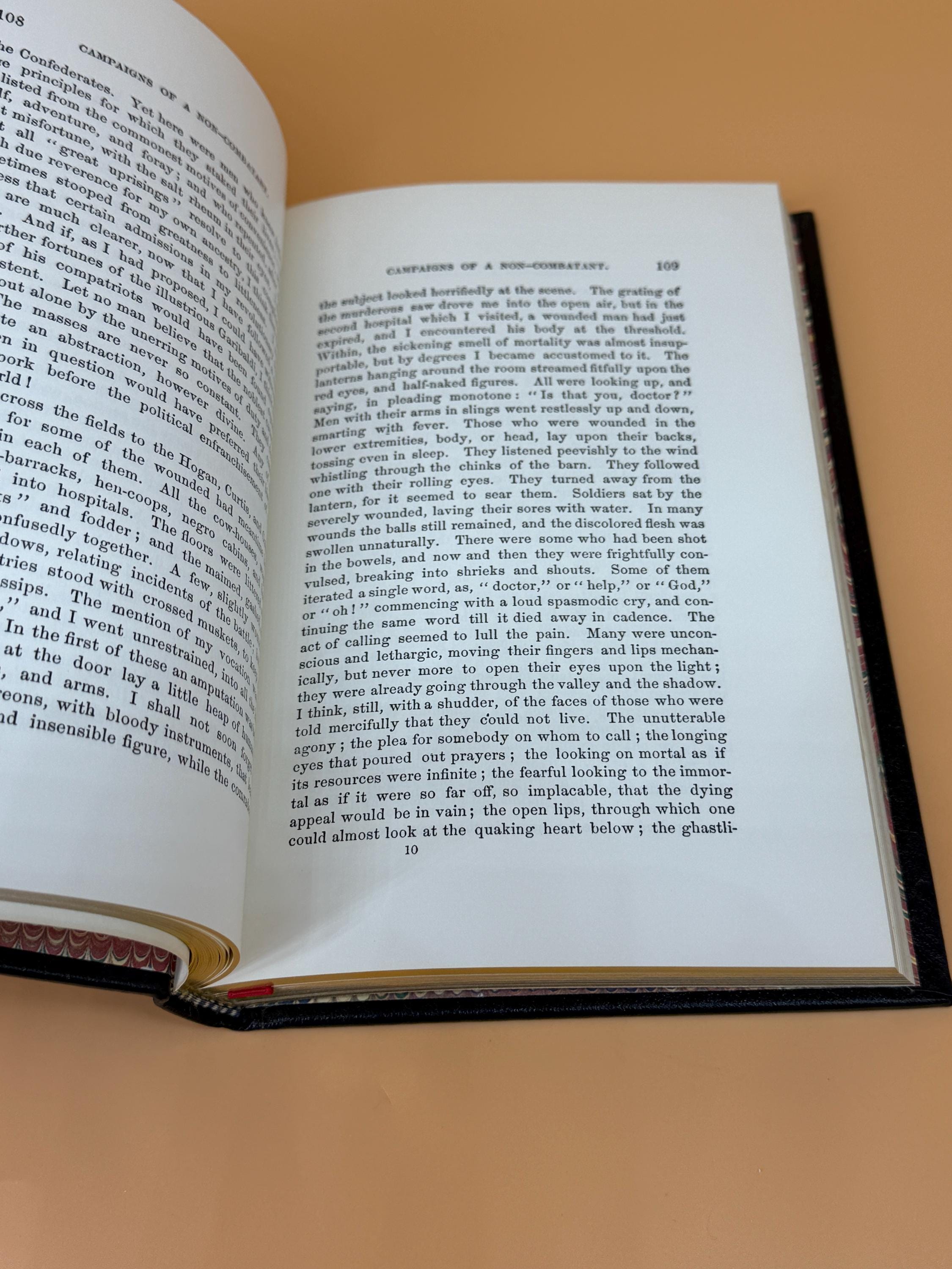 This is a near fine (almost like new) collectible leather bound hardcover. 1982 Time Life Books photographically reproduced from the 1866 First Edition. This copy includes the original Collectors Notes. Bound in black leather, this edition features find binding appointments such as sewn binding for durability and aesthetics. This copy is still crisp and clean inside and out. NOTE: there is mild flaking off of the gold gilt page edging top edge, see photo. Gold lettering on black leather hardcover. All three outer page edges tipped in gold gilt with the top edge being the one showing visible wear. Attached red ribbon attached bookmark. Binding tight and straight as new. Crown octavo boo size or 5" x 8" with 368 pages.