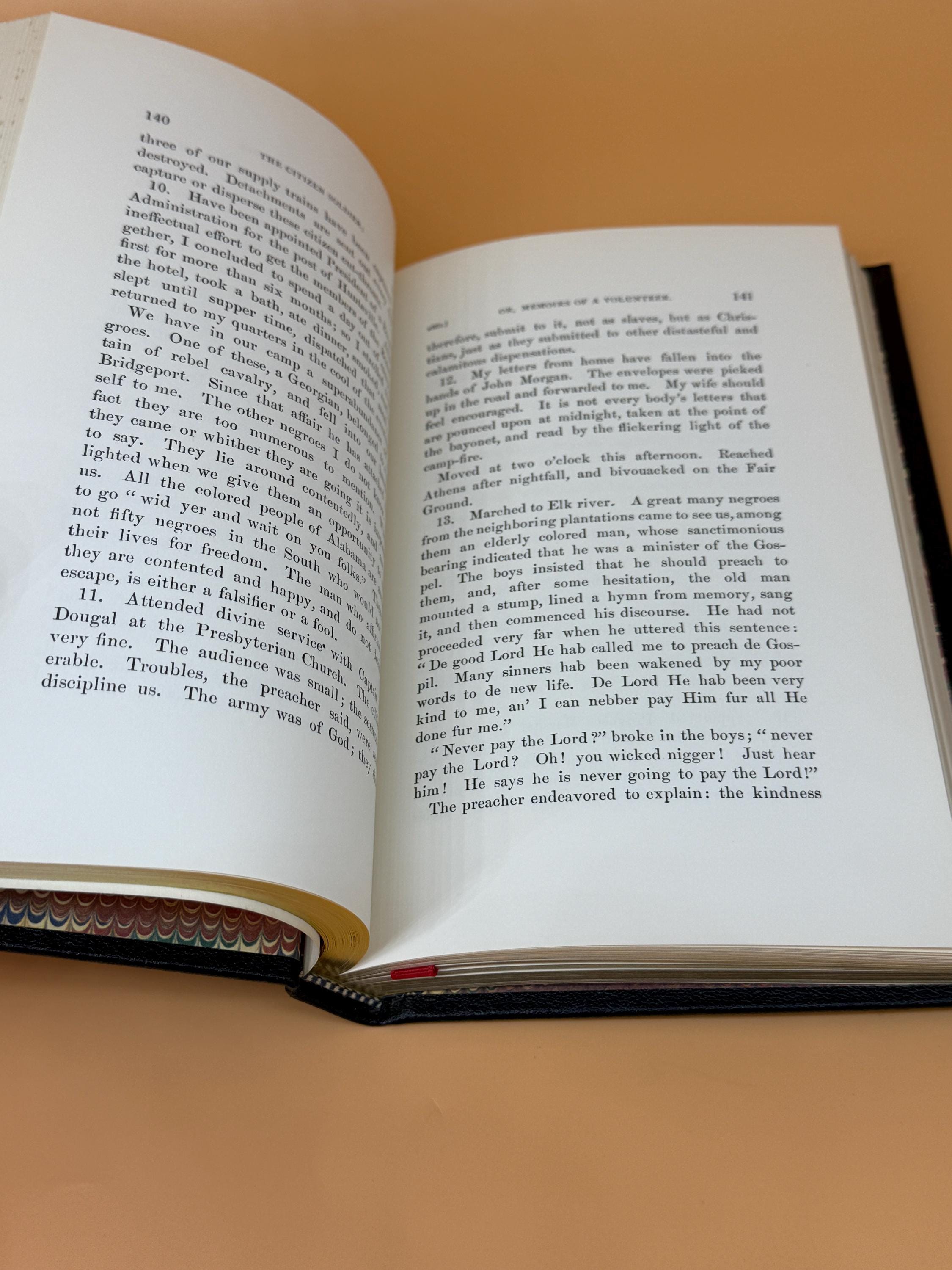 This is a handsome and like new leather bound hardcover. 1983 Time Life photographically reproduced from the 1879 First Edition, thus preserving the authenticity of the original, including typographical errors. Crisp and clean as new inside and out. Black leather bound hardcover with gold lettering and embossed frontispiece. Gold tipped page edges with red ribbon attached bookmark. NOTE: there is mild flaking of the gold gilt to top outer page edges but minor. Includes Original pamphlet. Binding tight and straight as new.